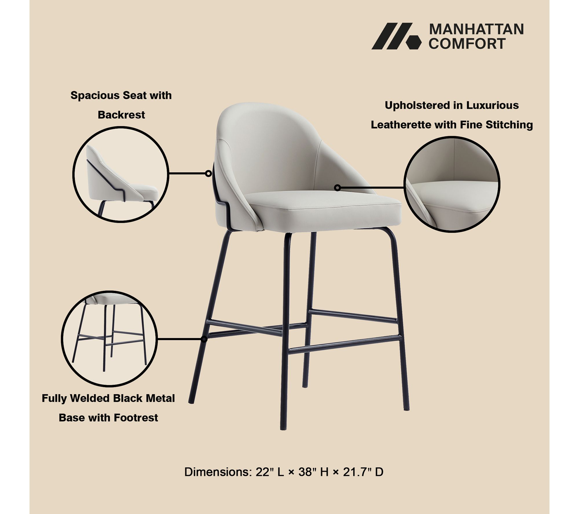 • Measures approximately 22"L x 38"H x 21.7"D; seat height 26"
