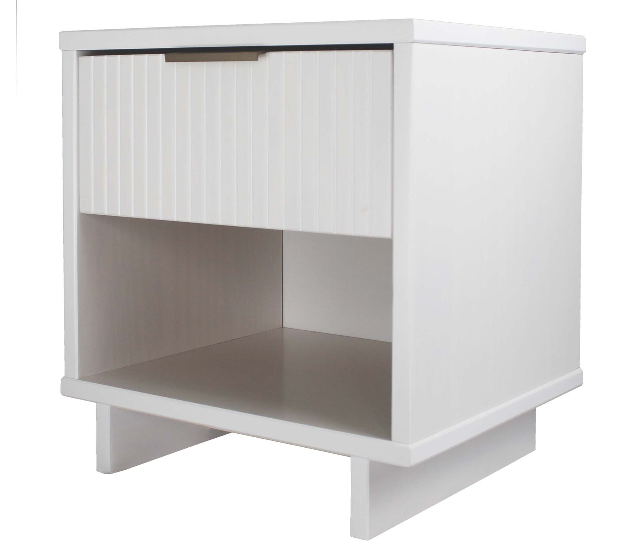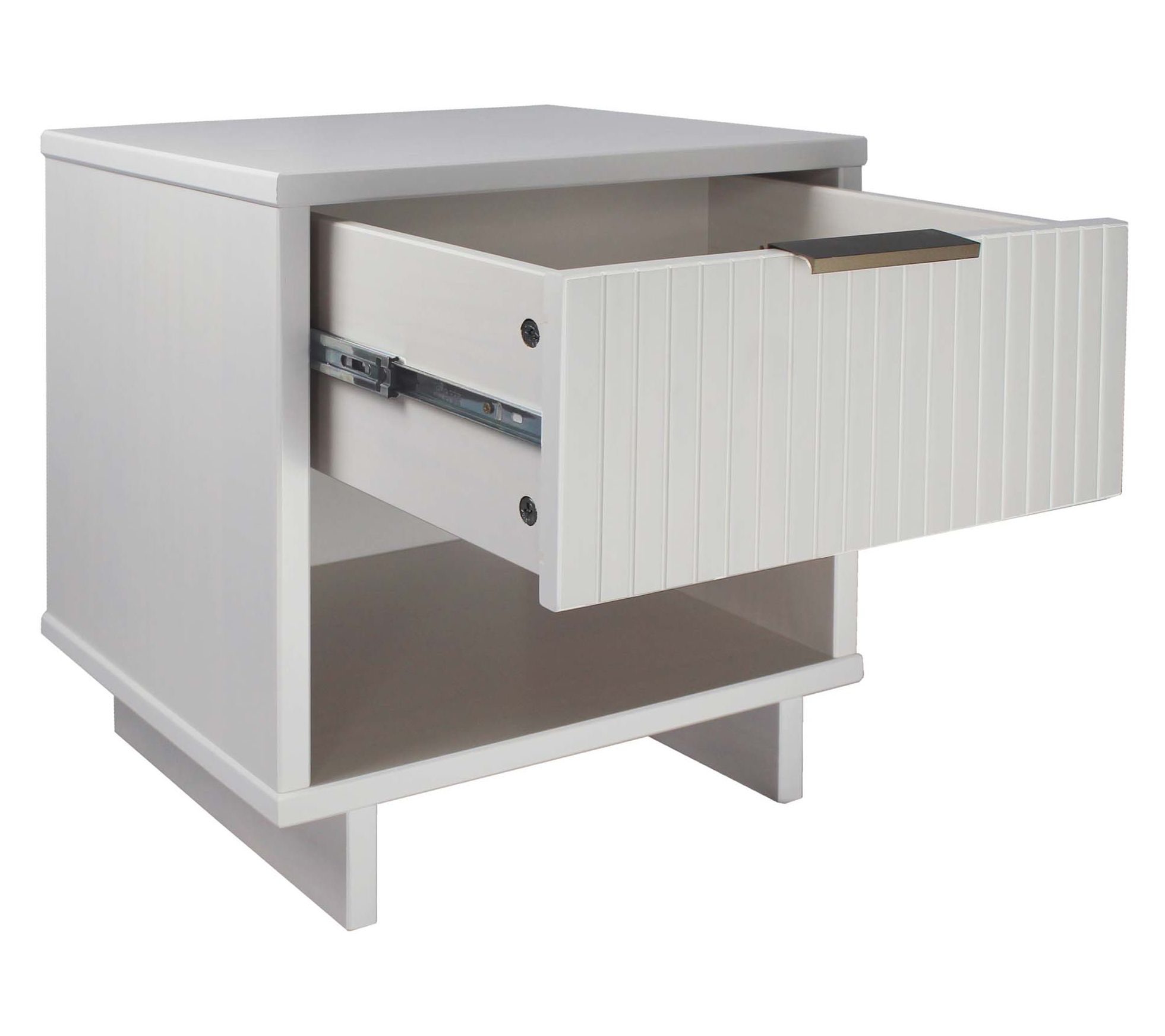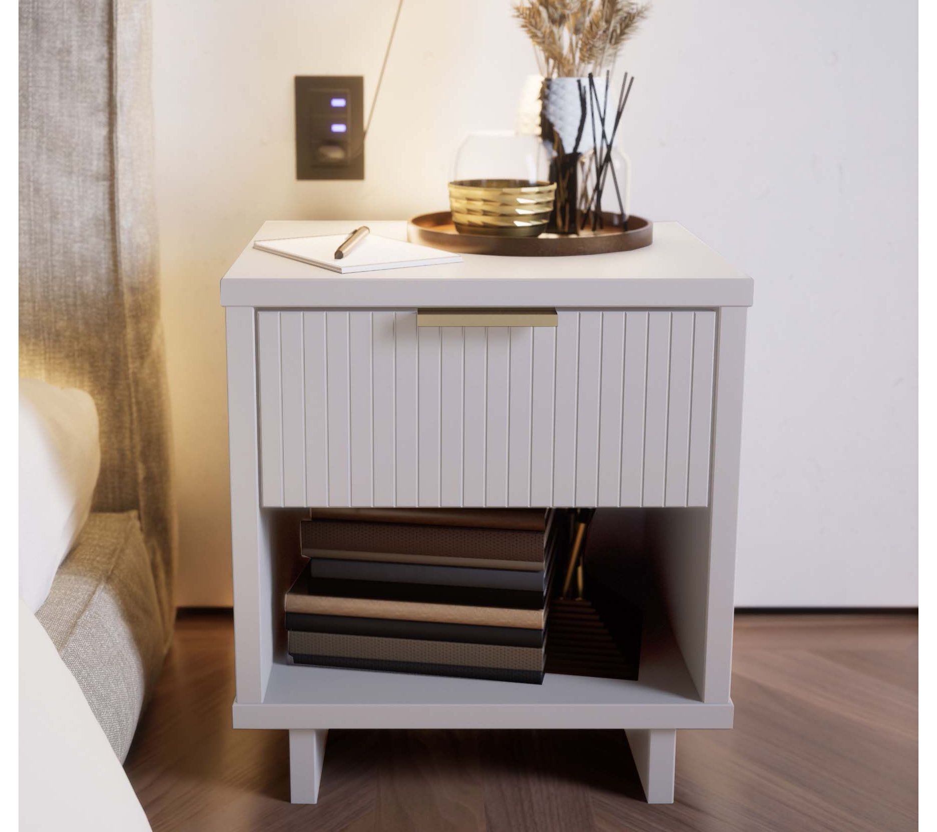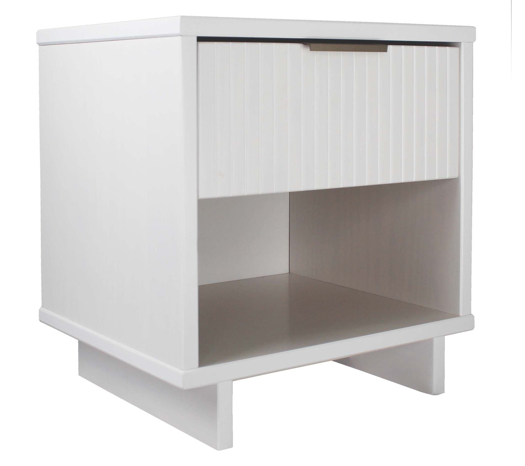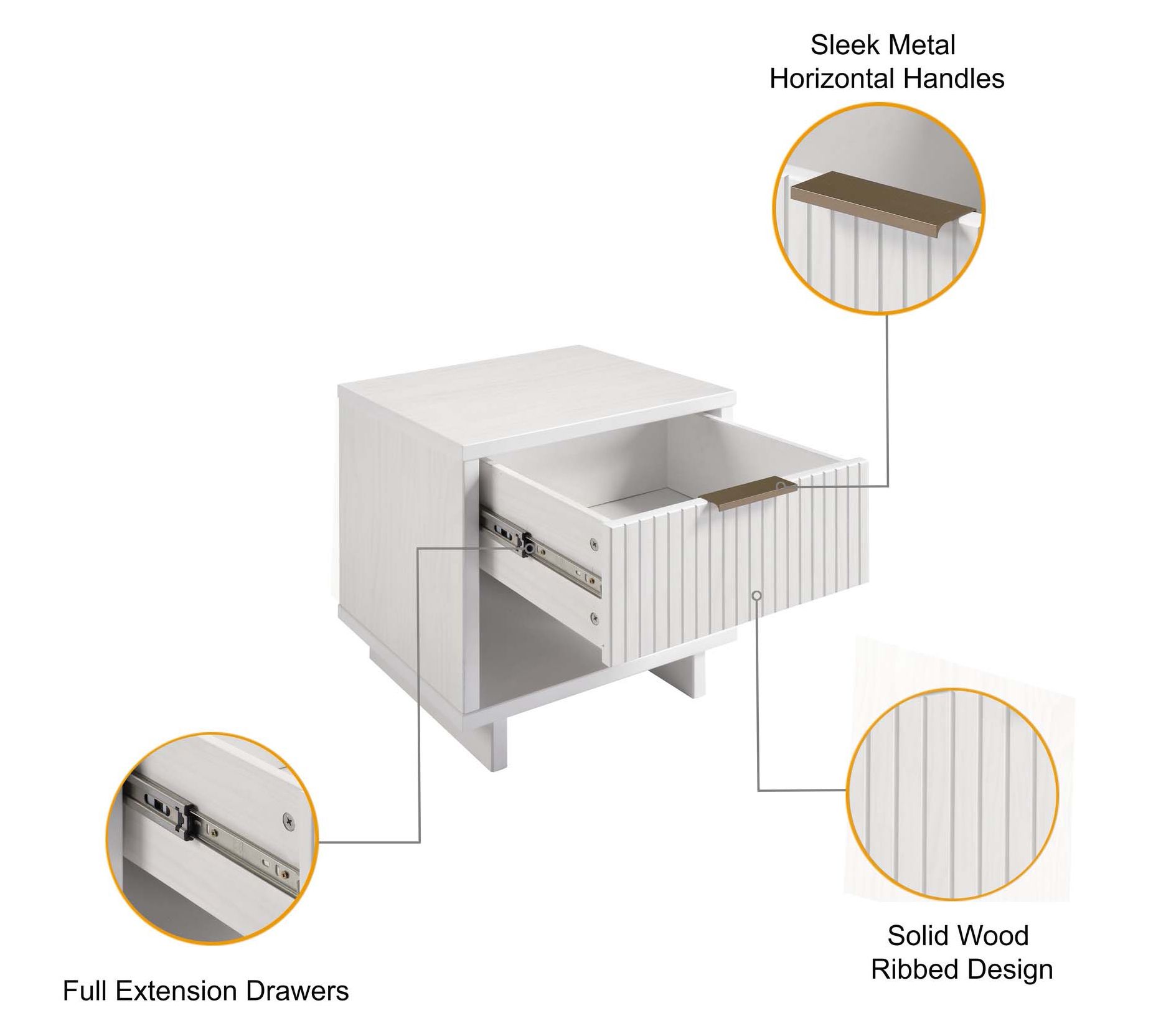Evenings feel more refined when there''s a favorite novel and lamp within reach, thanks to this modern nightstand. Its ribbed drawer front adds an artful touch, while the full-extension soft-close drawer keeps bedside essentials tucked away. Sleek goldtone hardware and a UV-painted finish tie together a look that suits both restful retreats and vibrant living spaces. From Manhattan Comfort.