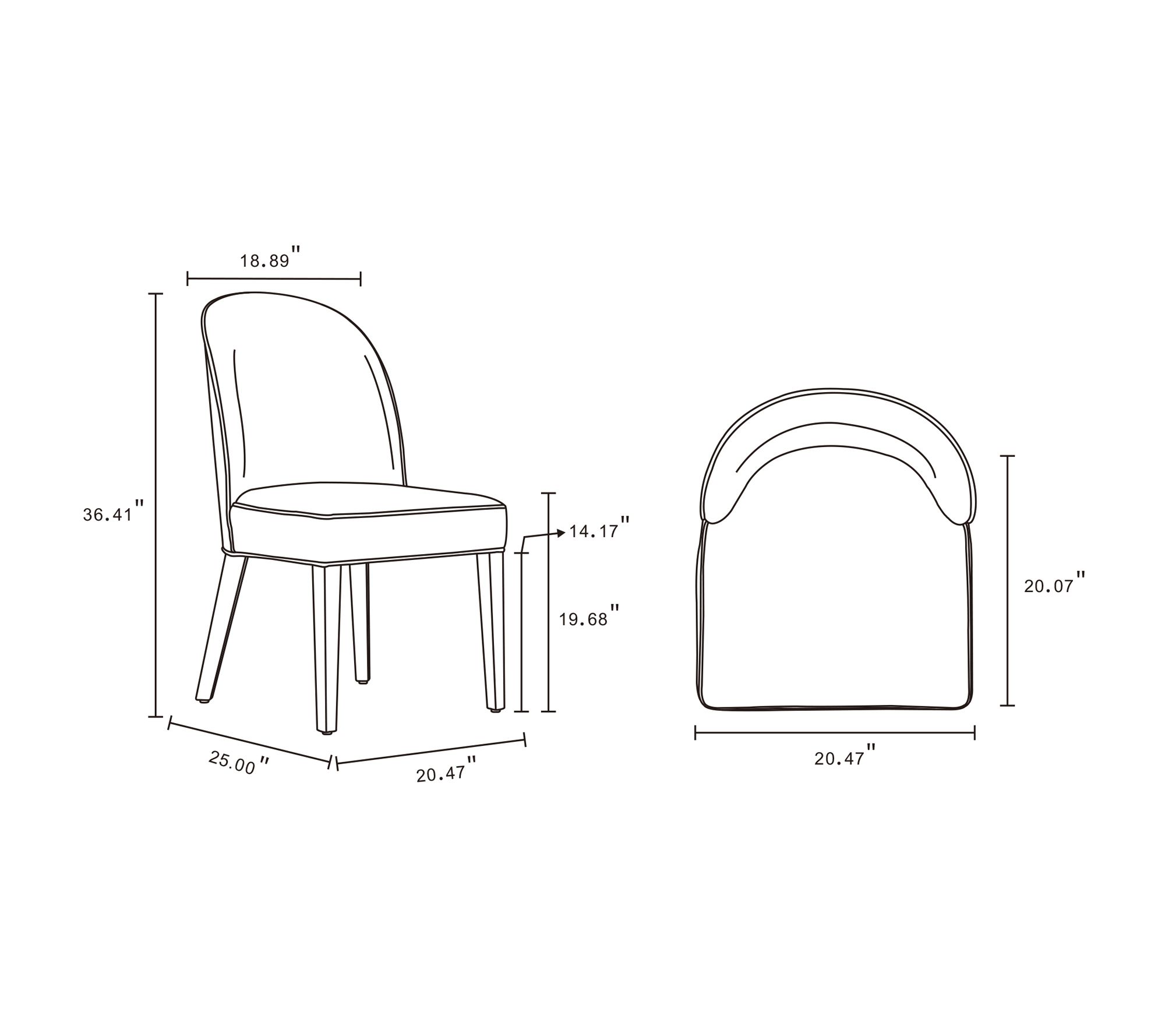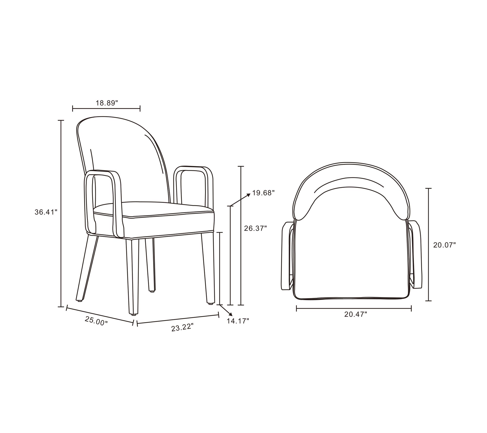 • Measurements: Arm chairs 23.22"L x 36.41"H x 25"D; Dining chairs 20.47"L x 36.41"H x 25"D; Seat height 19.68"H