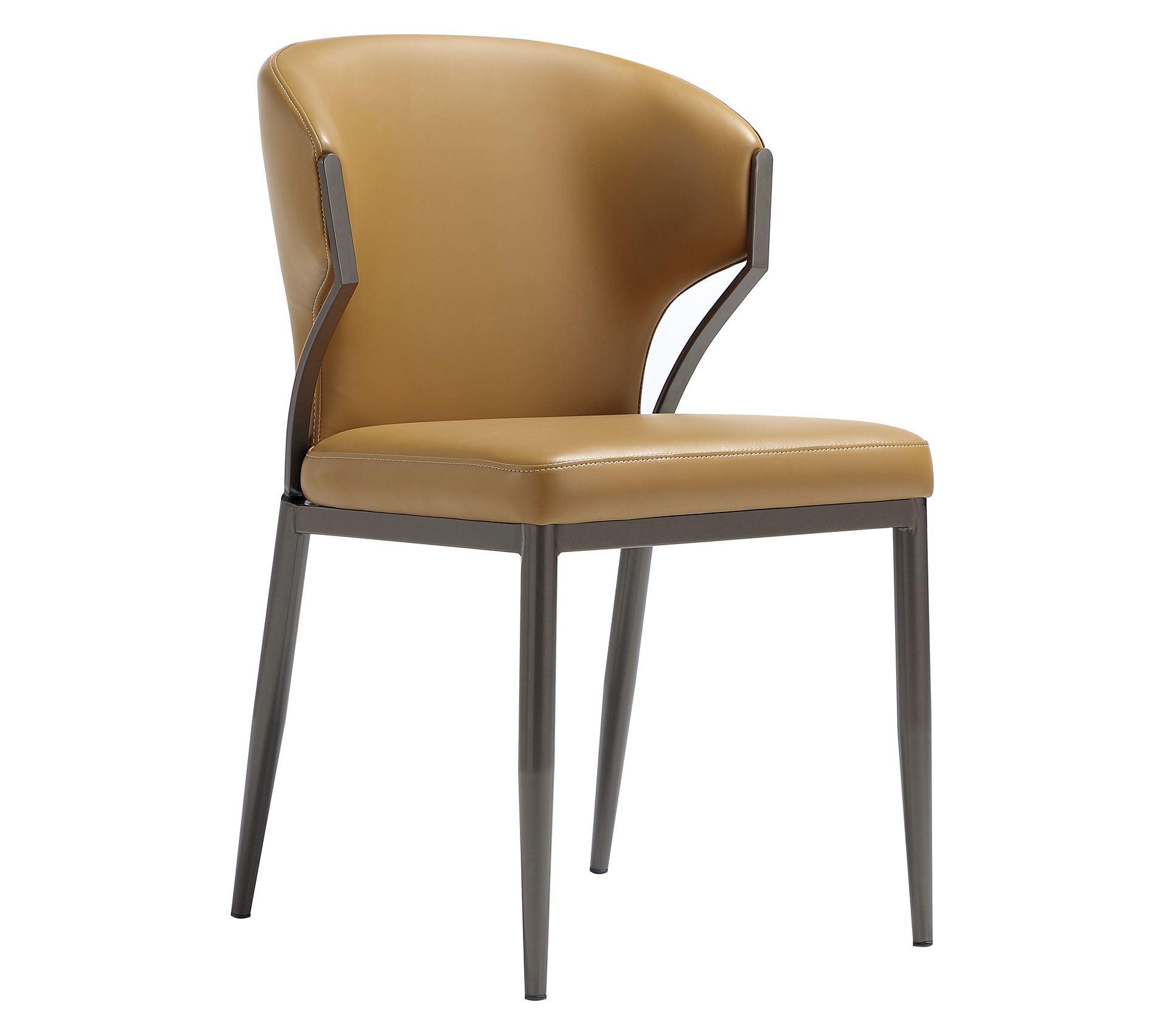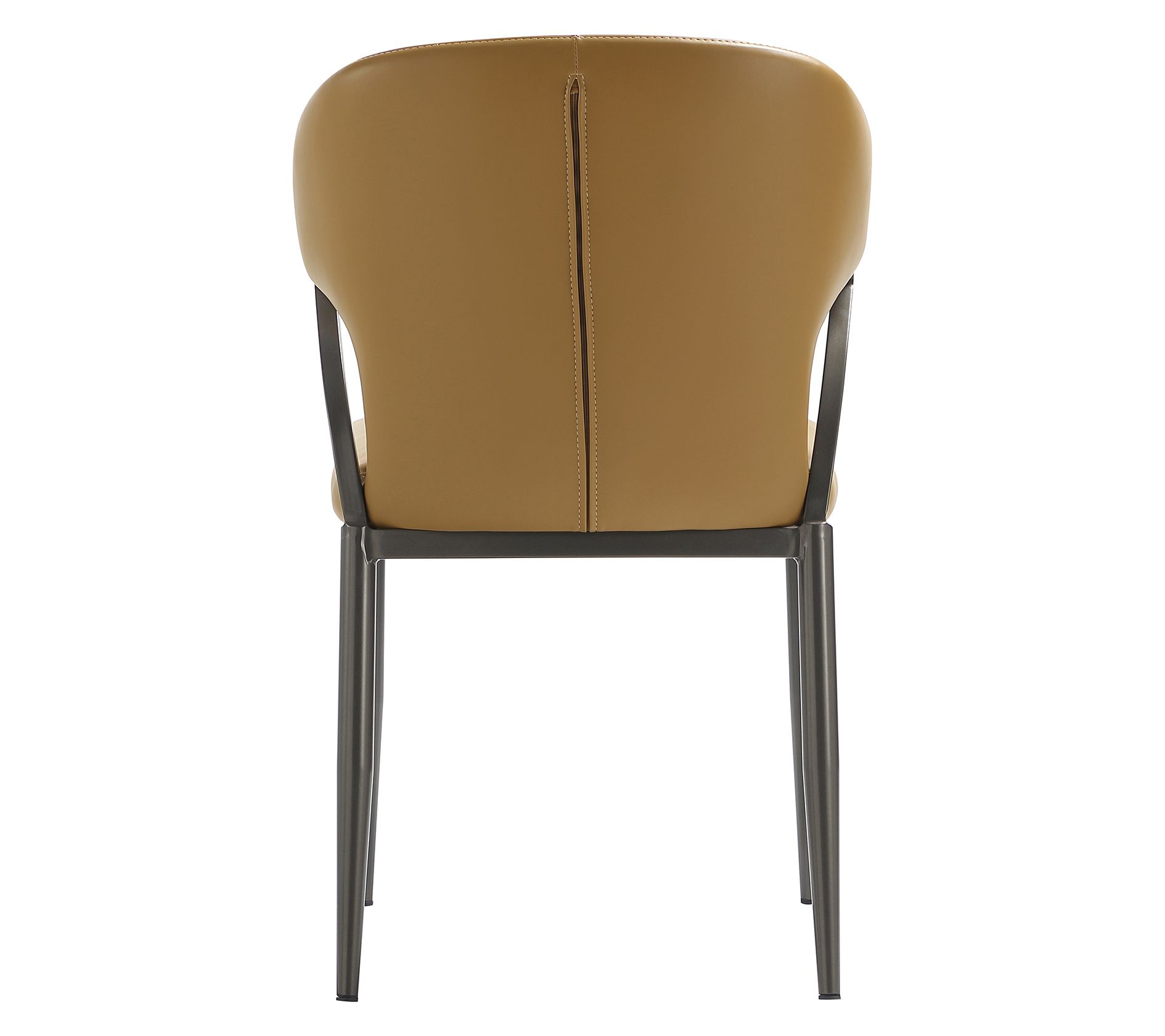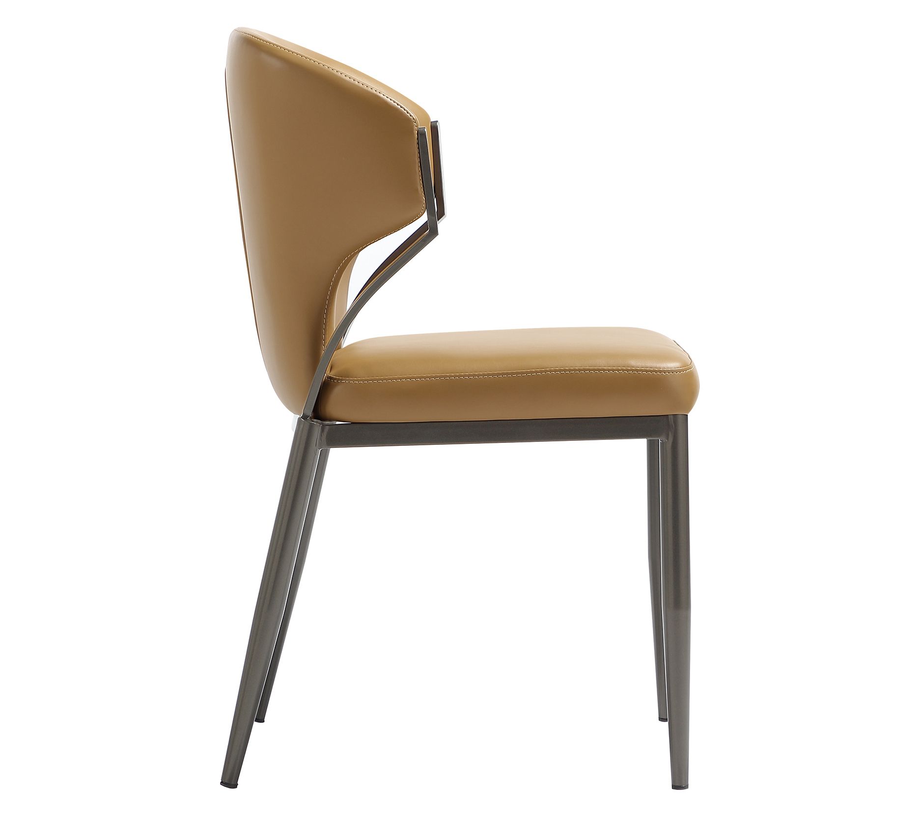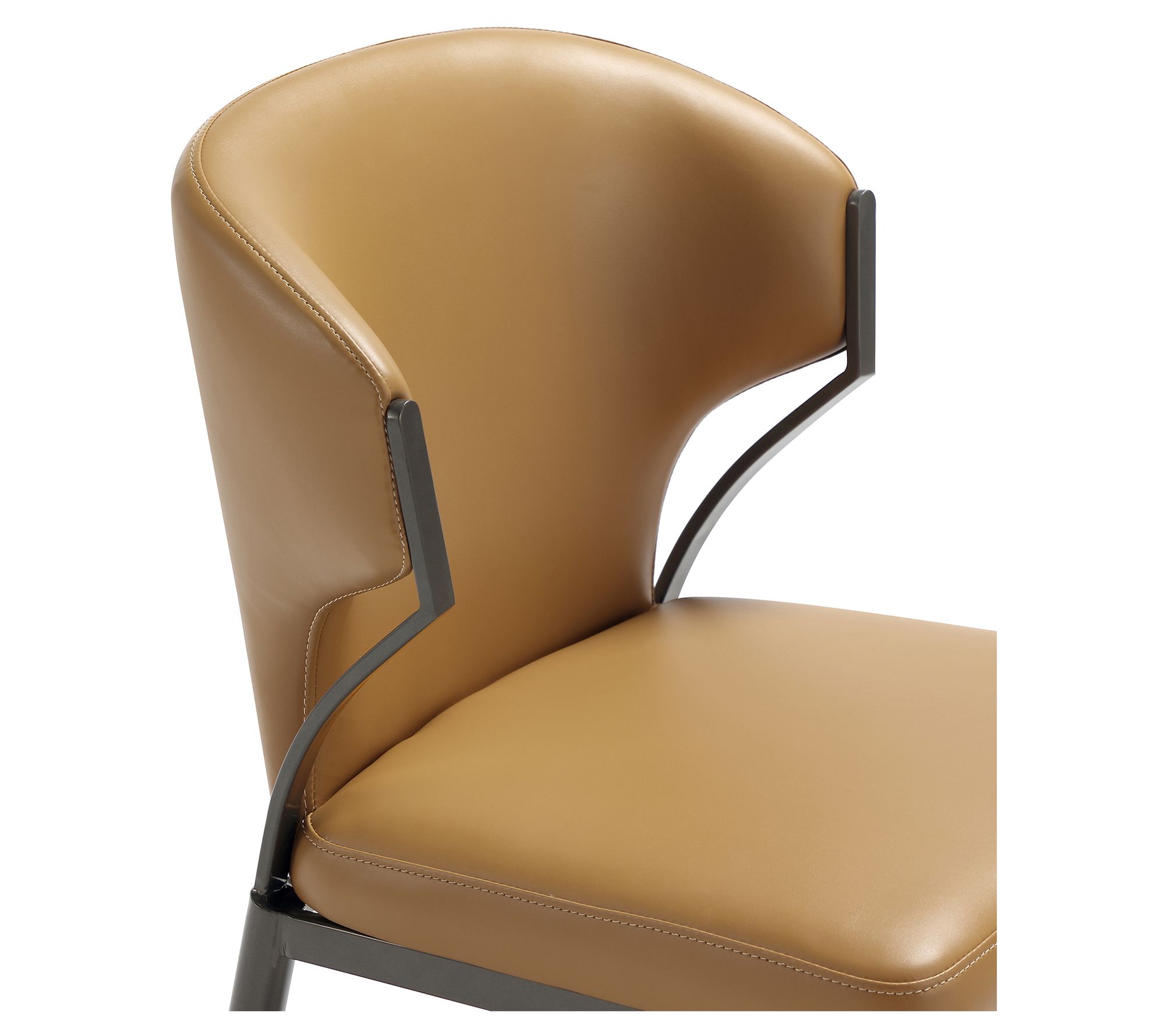 • Curved backrest with open metal accents; upholstered in leatherette with fine stitching; plush, foam-filled seat; metal frame