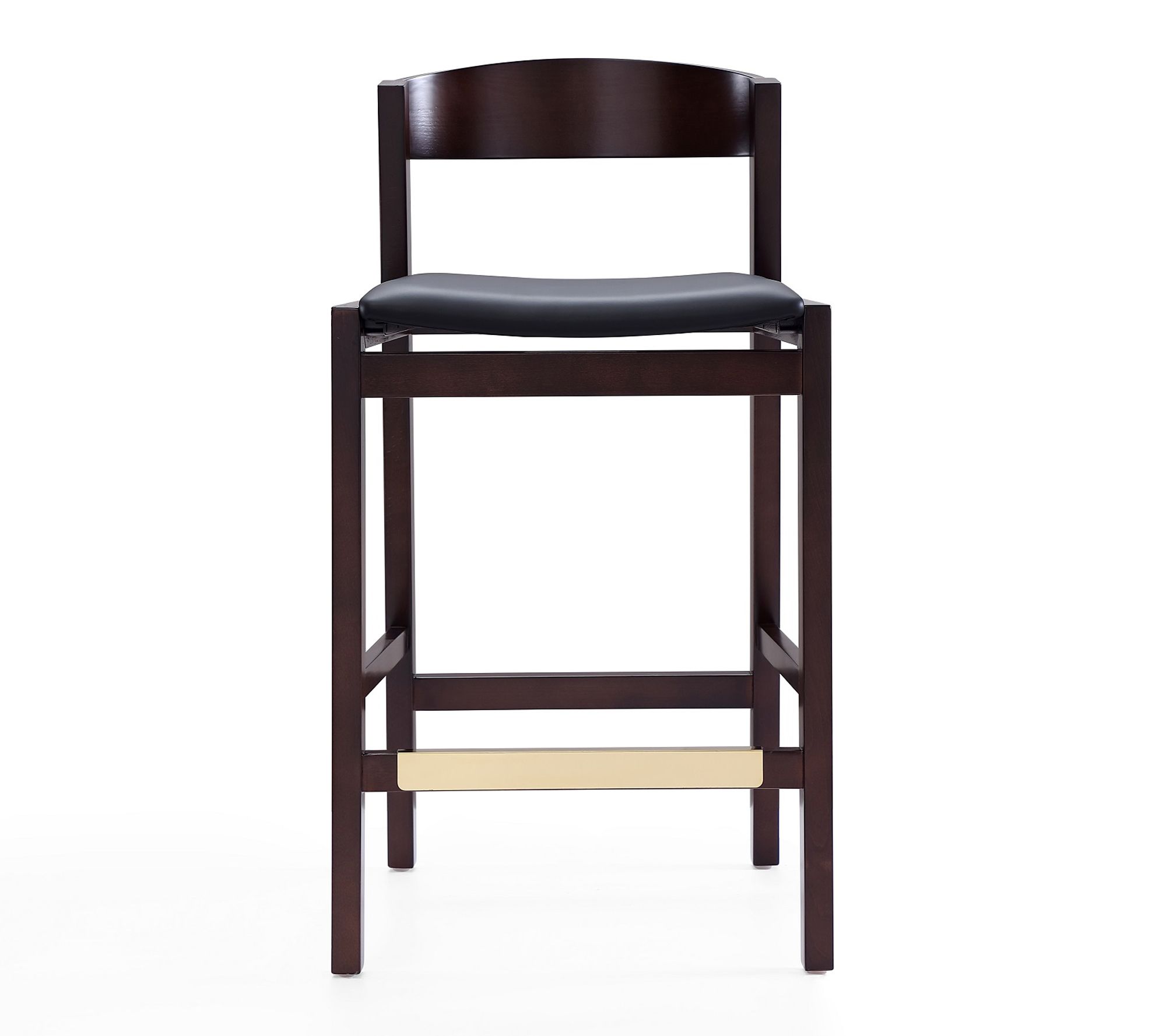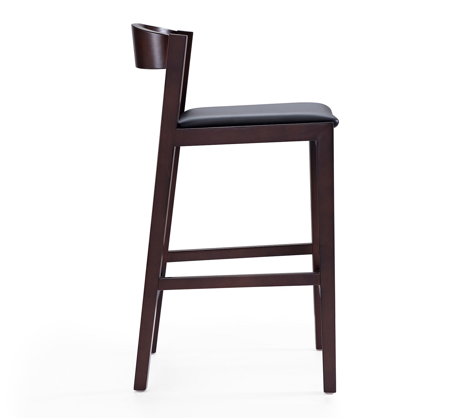 Bring sleek style and inviting comfort to your kitchen island or home bar with this set of two Klismos upholstered counter stools. Whether you're sharing breakfast with family or enjoying a cozy evening with friends, the curved backrests and padded seats offer support and relaxation. From Manhattan Comfort.