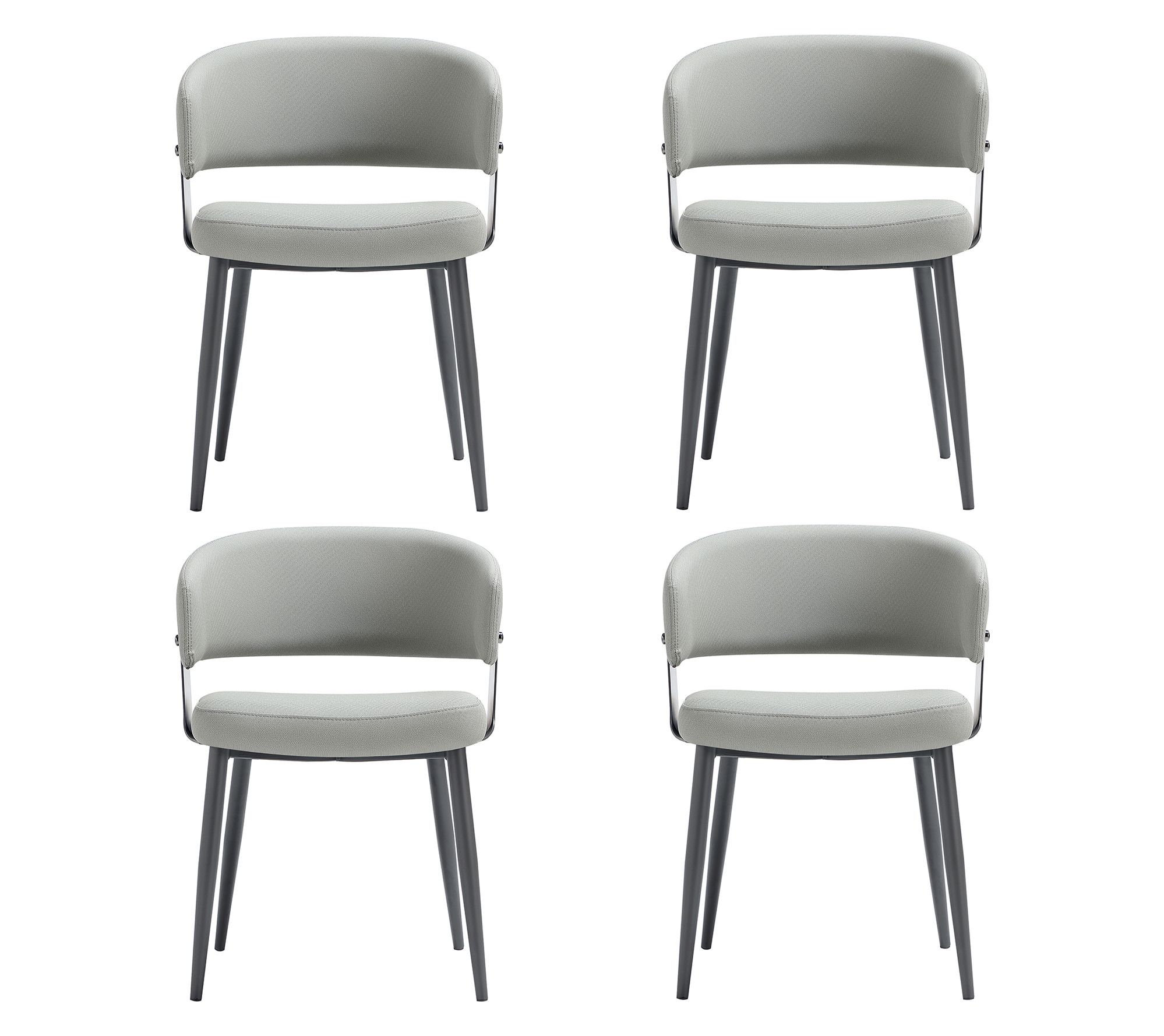 Dining becomes an inviting experience with this set of four Luce dining chairs, blending a plush, foam-filled seat and wraparound backrest for longer lingering meals and lively gatherings. Their sculptural, bold silhouette in textured leatherette pairs easily with modern decor, while the sturdy metal frame offers dependable support for everything from game nights to holiday feasts. From Manhattan Comfort.