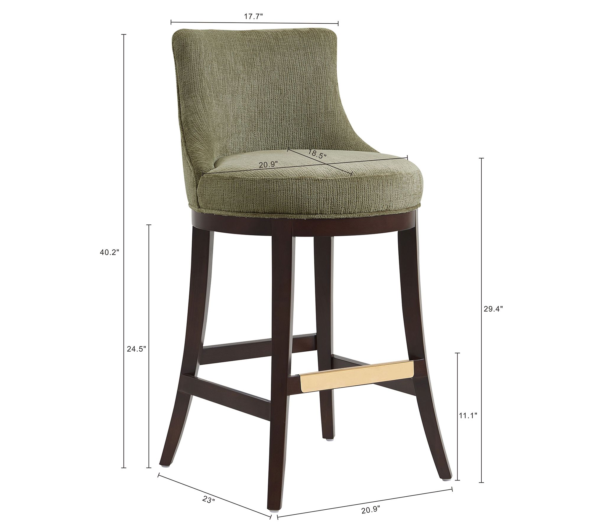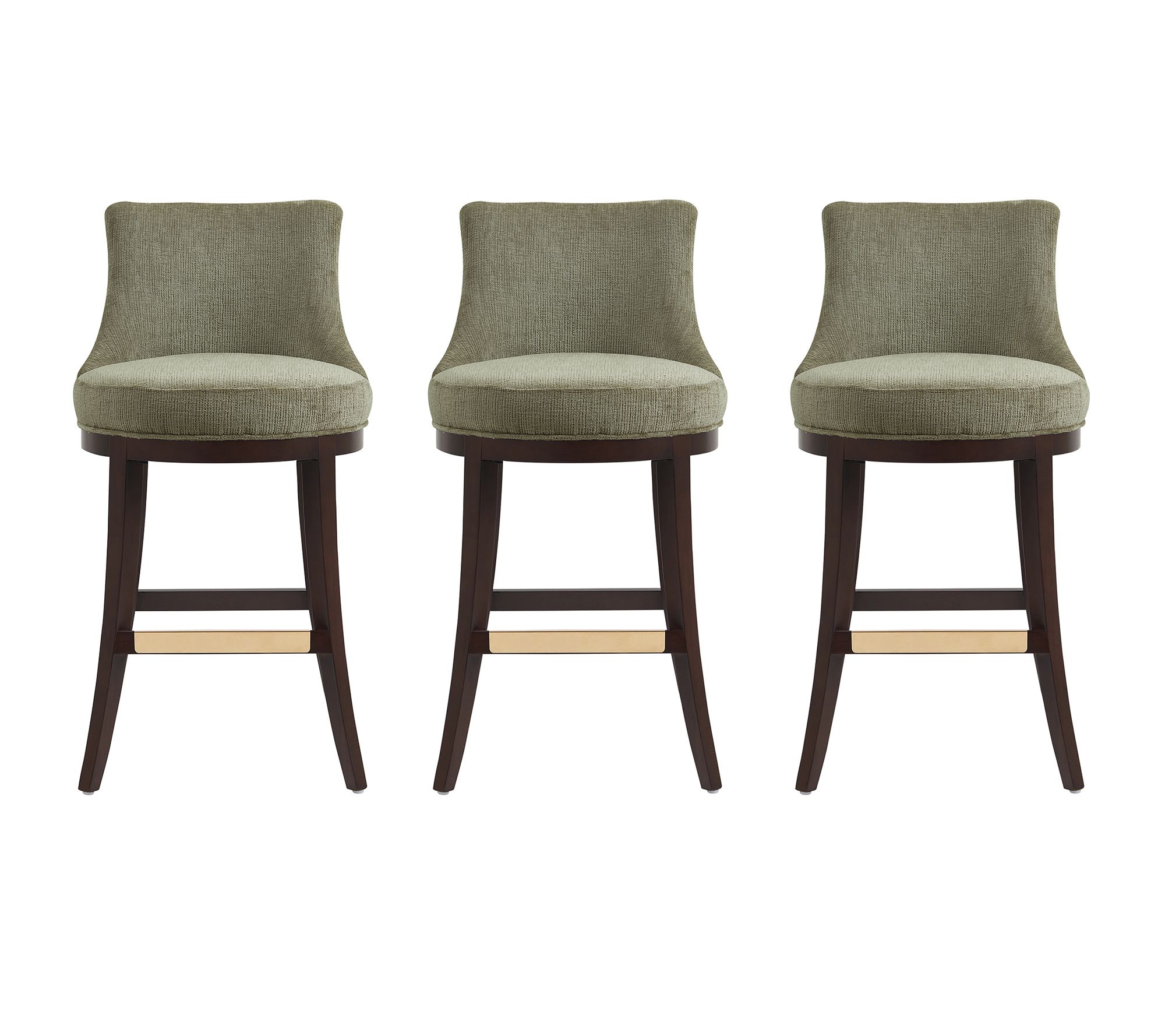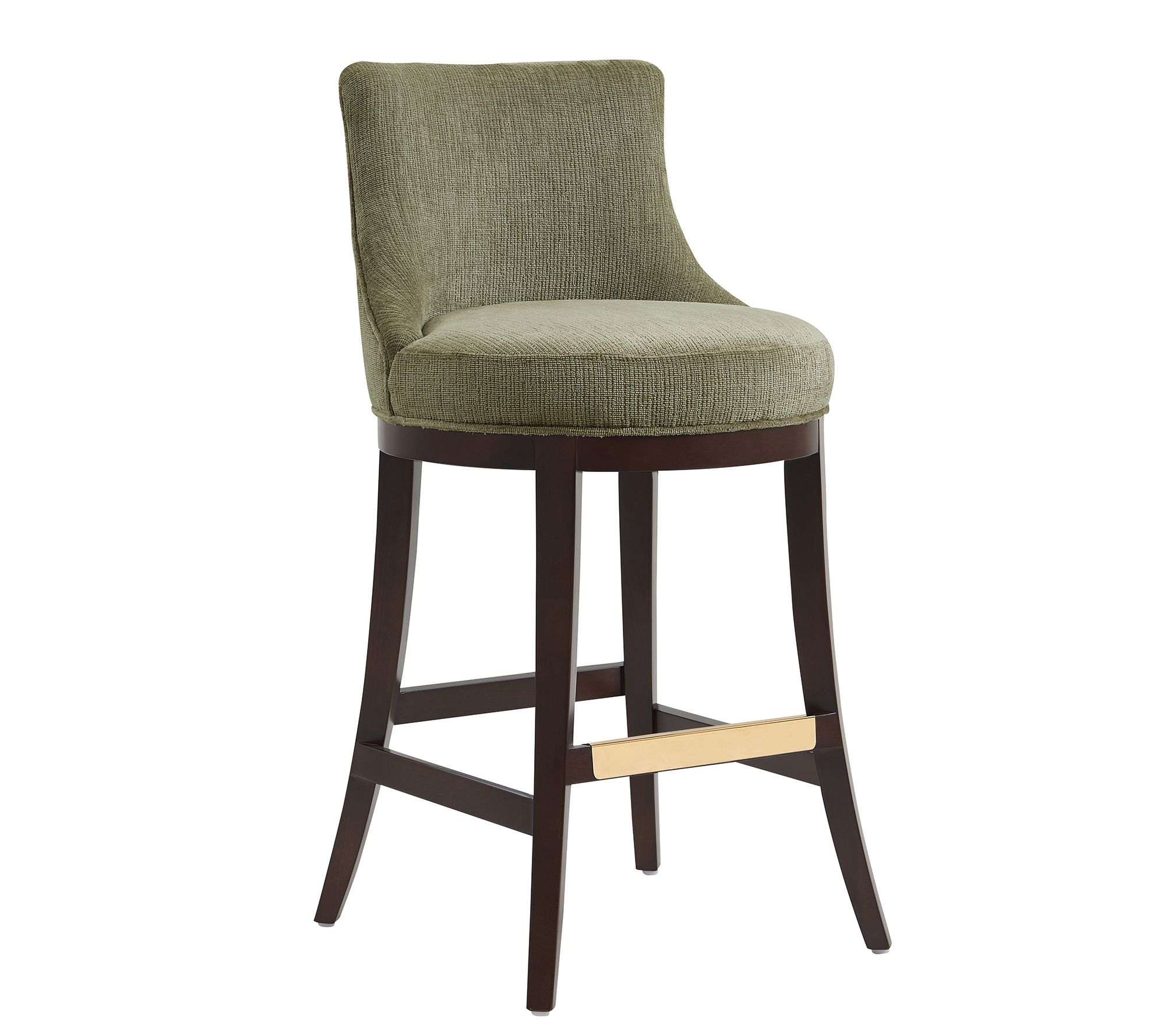 • Sculpted backrest; upholstered in textured chenille; goldtone footrest; commercial grade