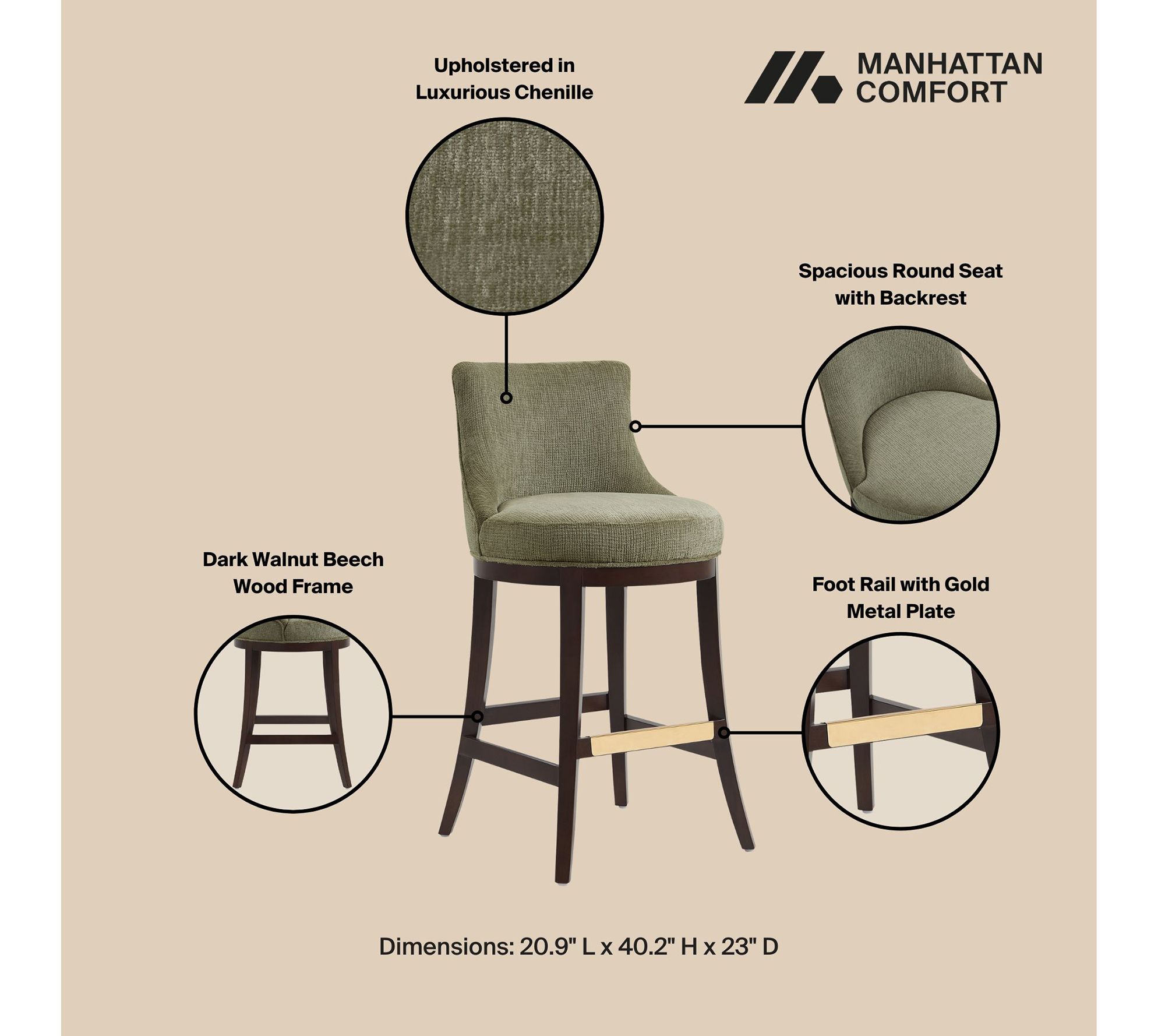 Bring sleek sophistication to your kitchen or bar area with the Lucia barstool set, blending modern design and supportive comfort for gatherings or daily dining. Whether sharing laughs with friends or sipping morning coffee, these seats offer style that fits right in. From Manhattan Comfort.