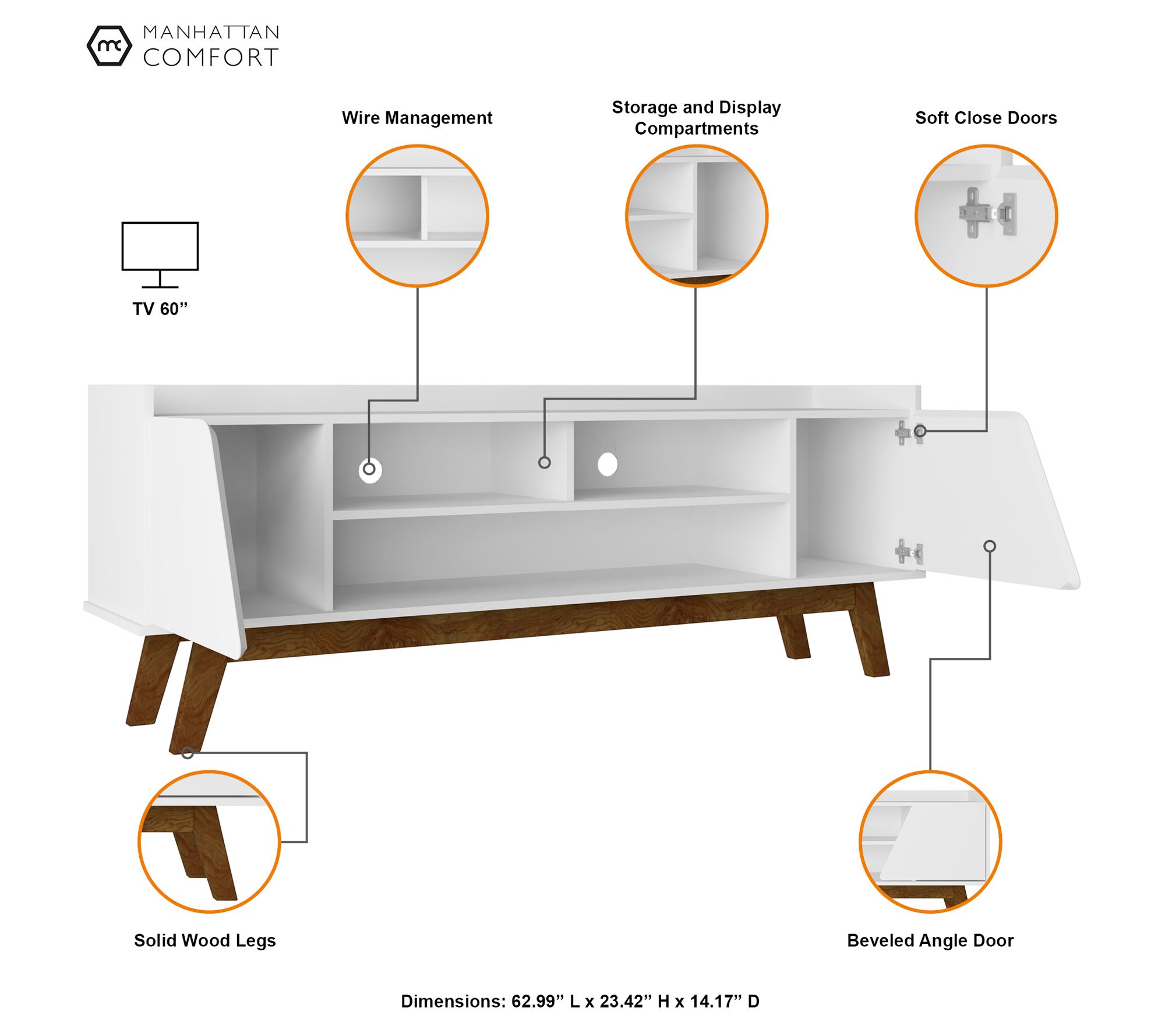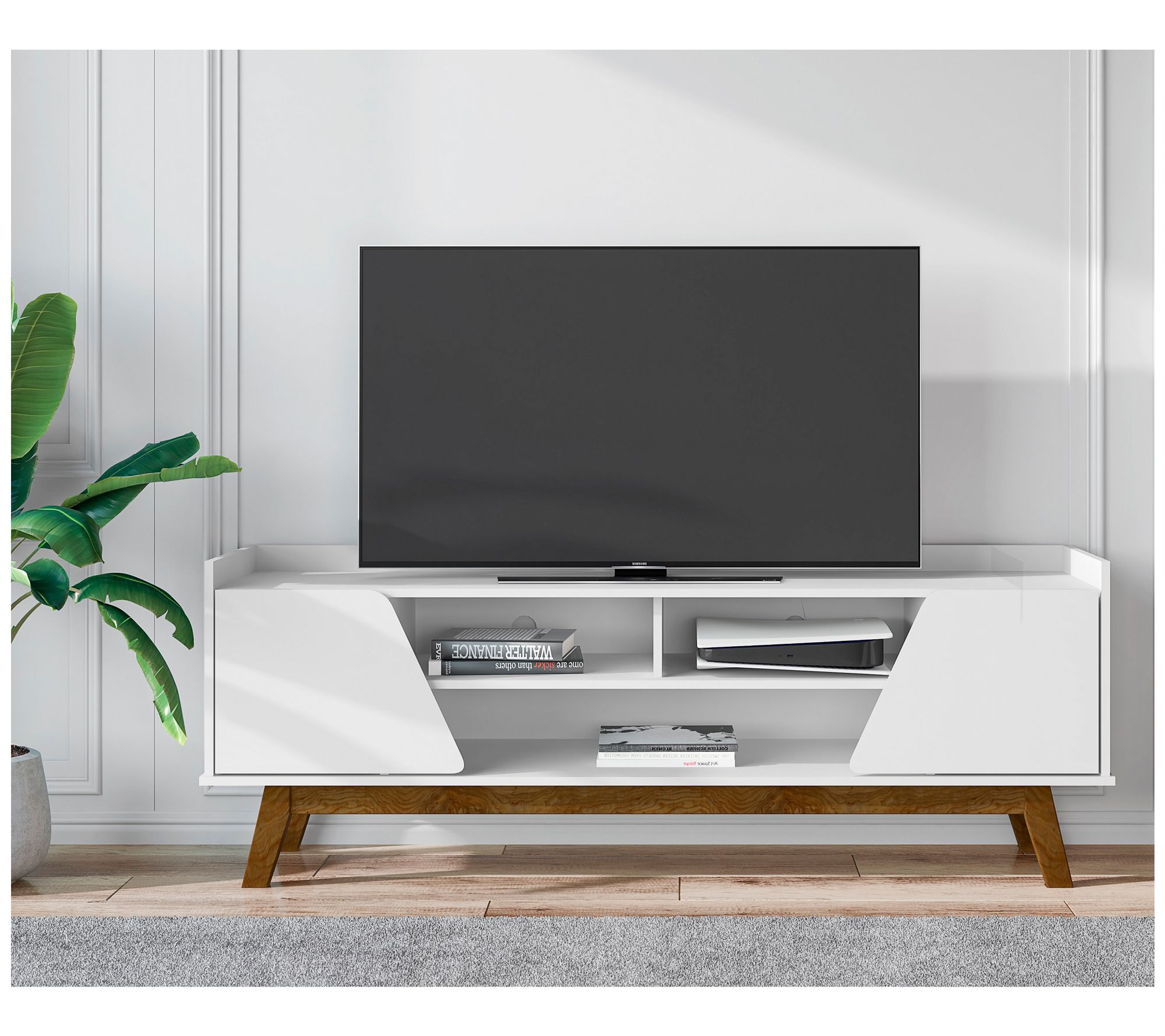 Movie nights and binge-watch sessions feel even more inviting when your entertainment setup has smart storage and style to match. Five spacious shelves make it easy to show off decor or store gaming systems, while cable management holes streamline unsightly cords. Soft-close doors lend a finishing touch that keeps this piece both functional and family-friendly. From Manhattan Comfort.
