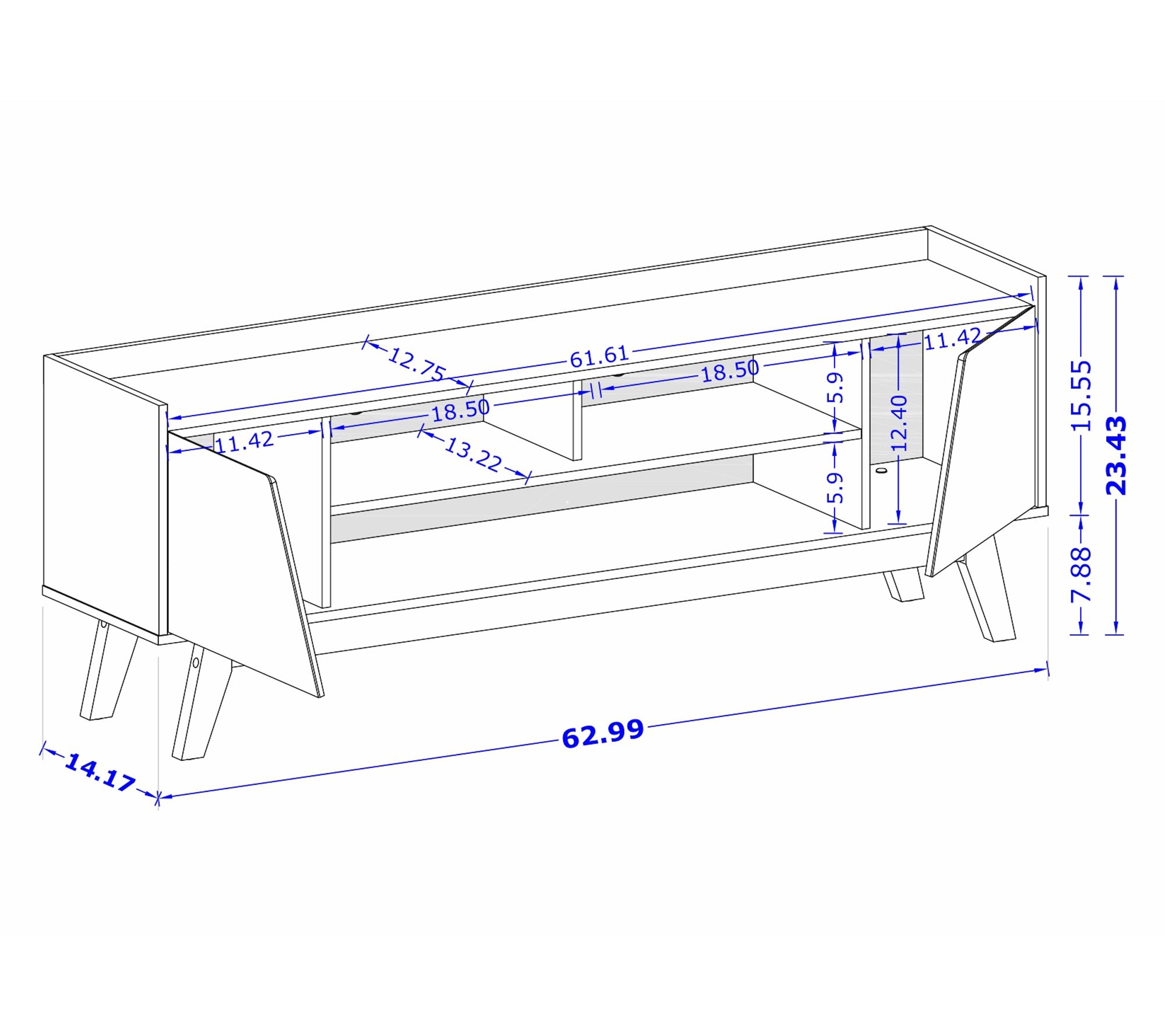 • Measures approximately 62.99" L x 14.17" D x 23.42" H; top supports up to 44 lbs, base supports up to 44 lbs, shelves support up to 33 lbs each