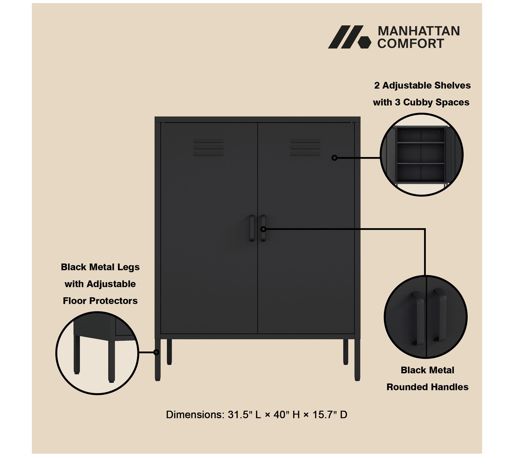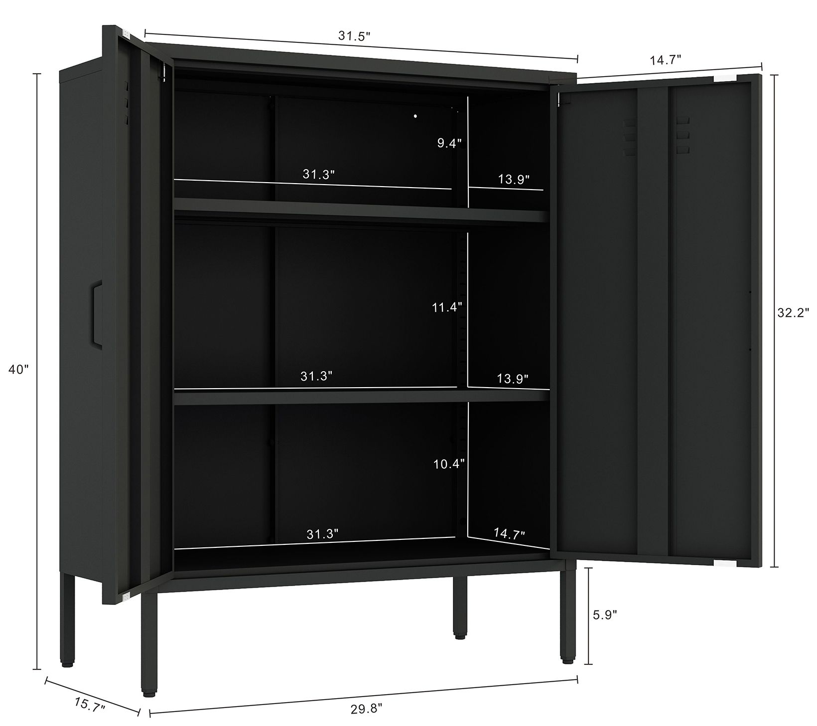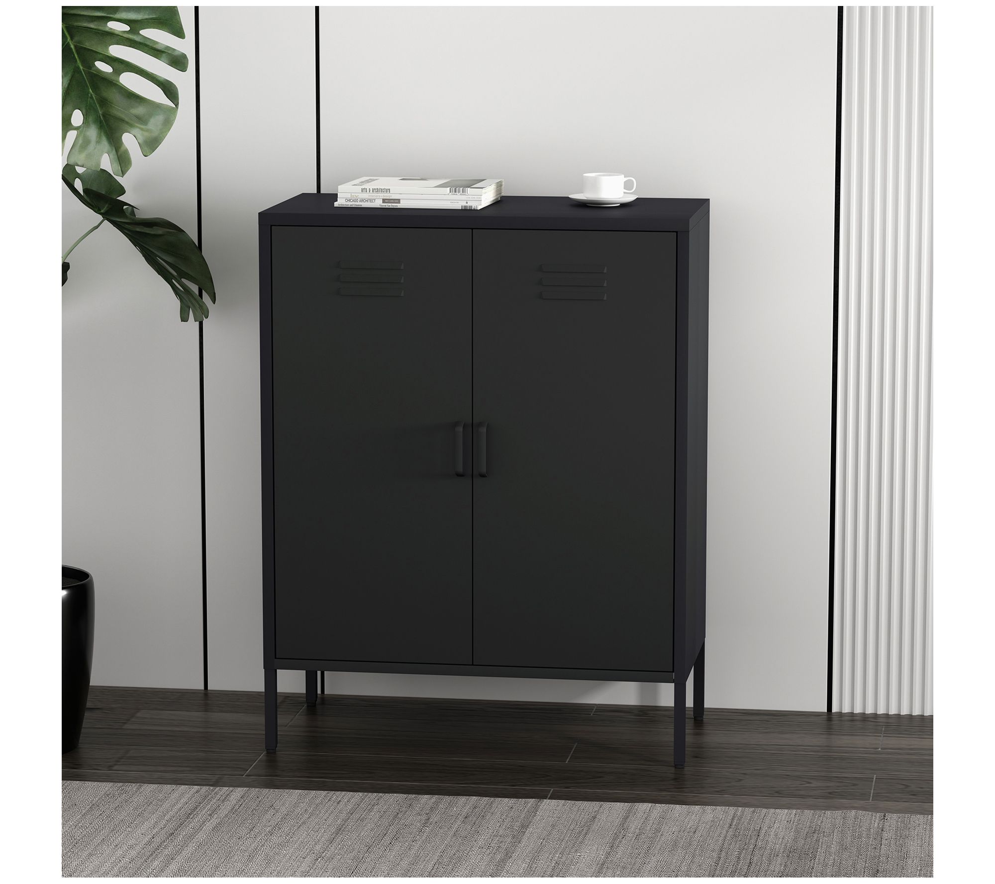 • Two vented metal doors with vertical handles