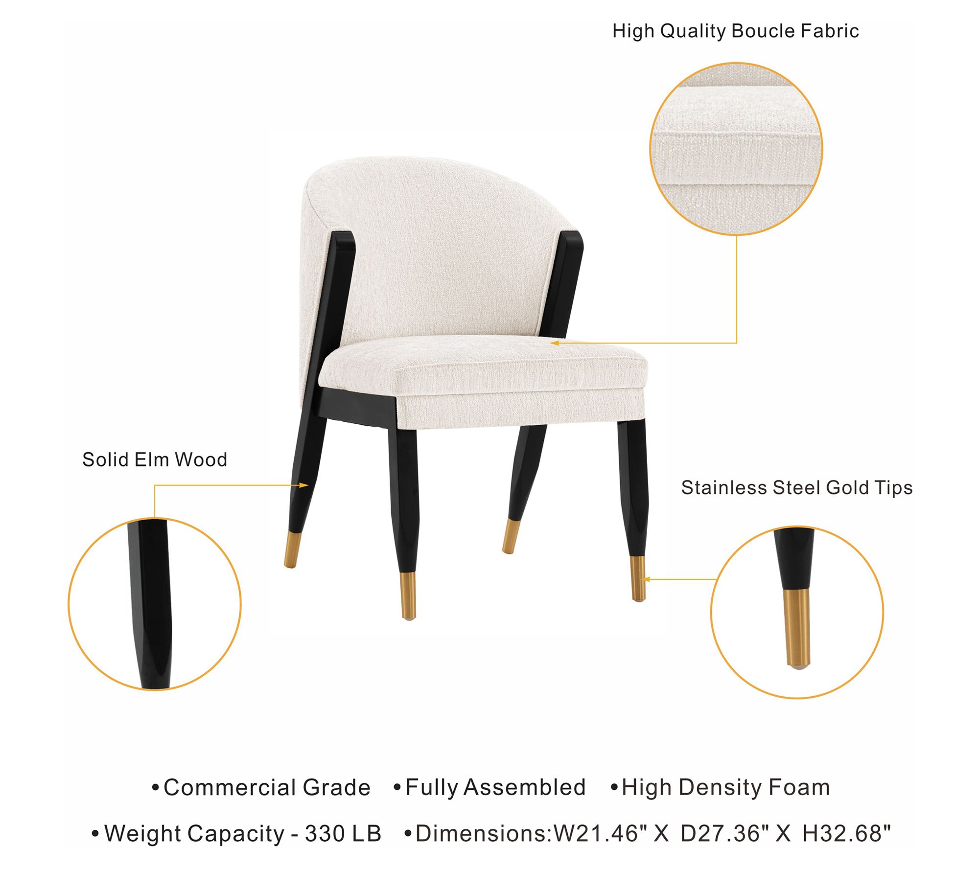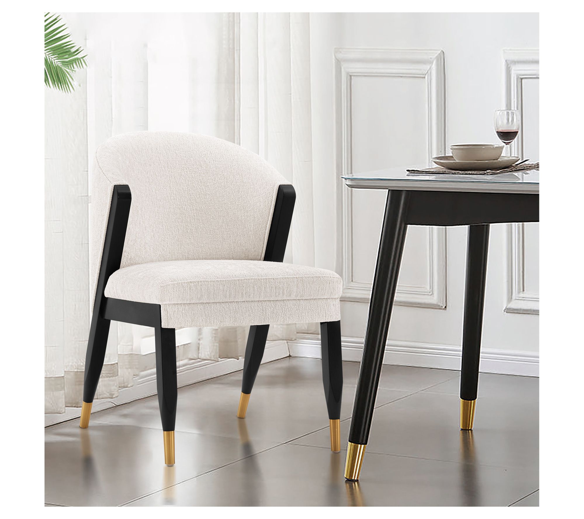 Imagine gathering around the table for memorable meals or diving into creative work with seating that brings both flair and comfort. Chic brushed gold accents and elegant chenille upholstery give this chair standout style, while its sturdy elm wood frame and generous padding keep you supported. Arriving fully assembled, it's a hassle-free way to add a modern touch to any dining space or workspace. From Manhattan Comfort.
