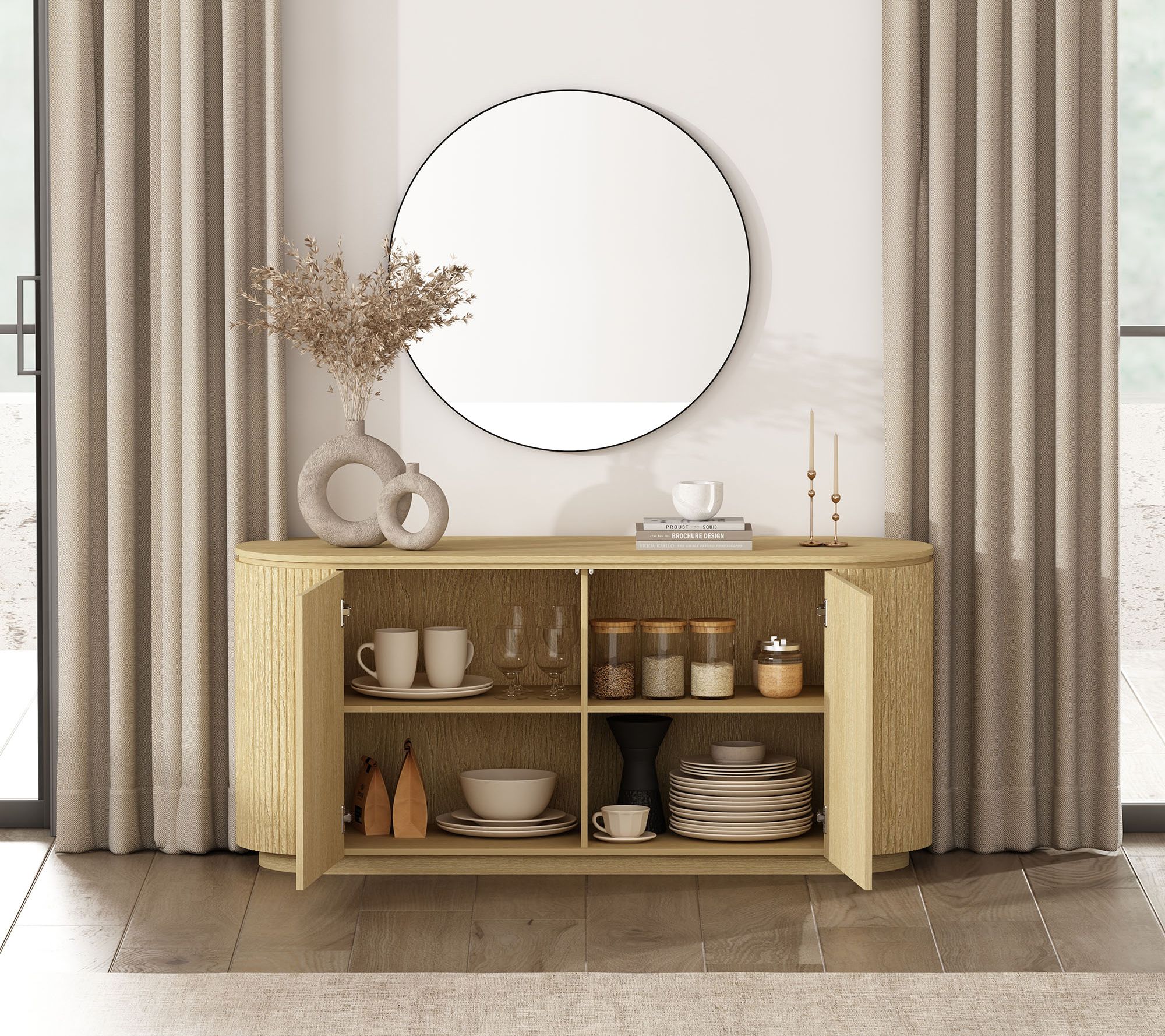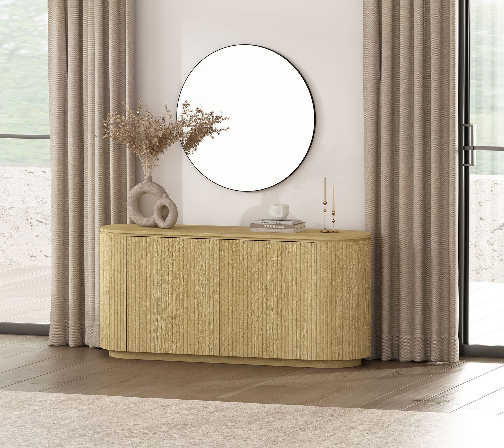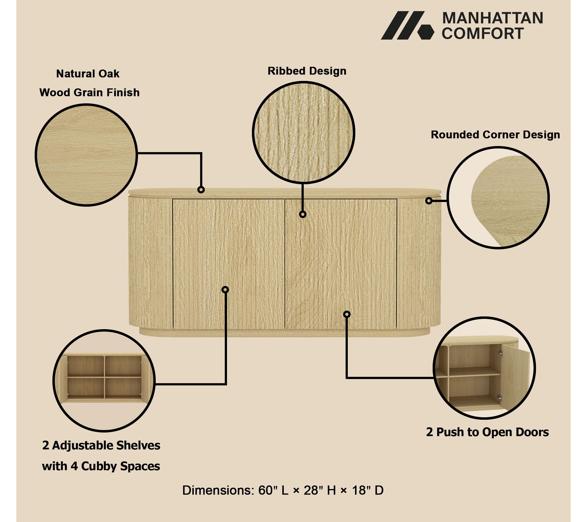 Gatherings feel warmer and more inviting when storage blends seamlessly with style. Whether hosting friends in the dining room or organizing favorite keepsakes in the living area, this sideboard sets a calming mood with its textured, ribbed finish and gentle curves. Doors open with just a touch, keeping essentials close by but tucked away, while cubby shelves offer space for cherished pieces. From Manhattan Comfort.