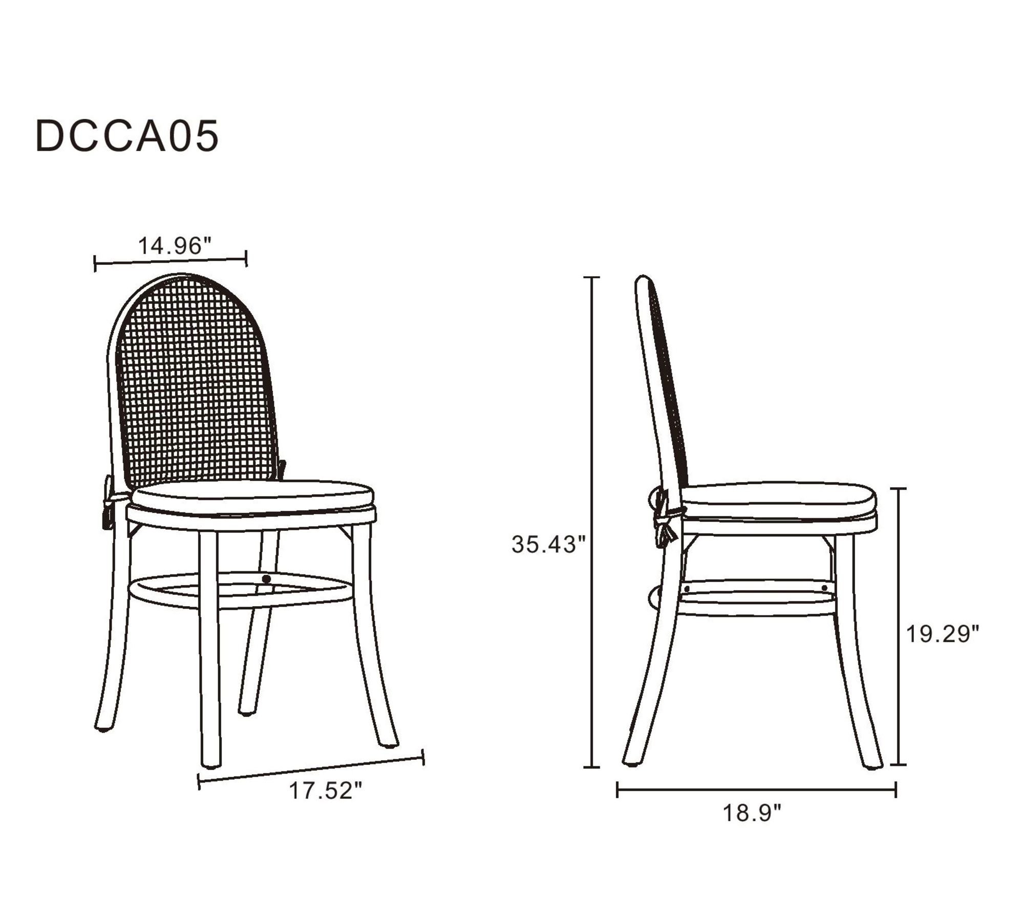 • Measures 17.52" L x 18.9" D x 35.43" H; seat height 19.29"