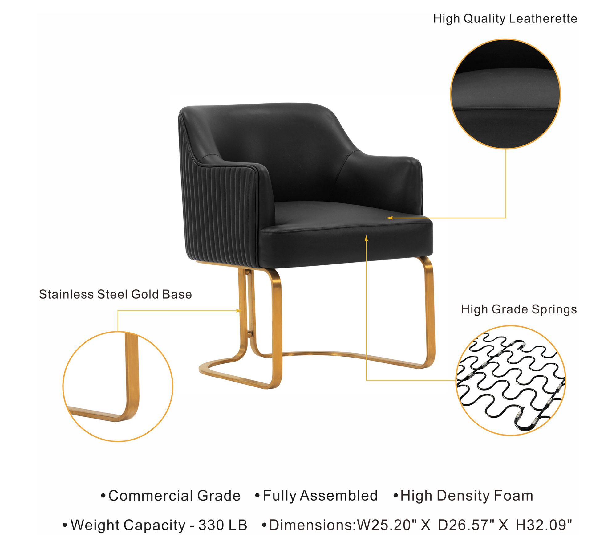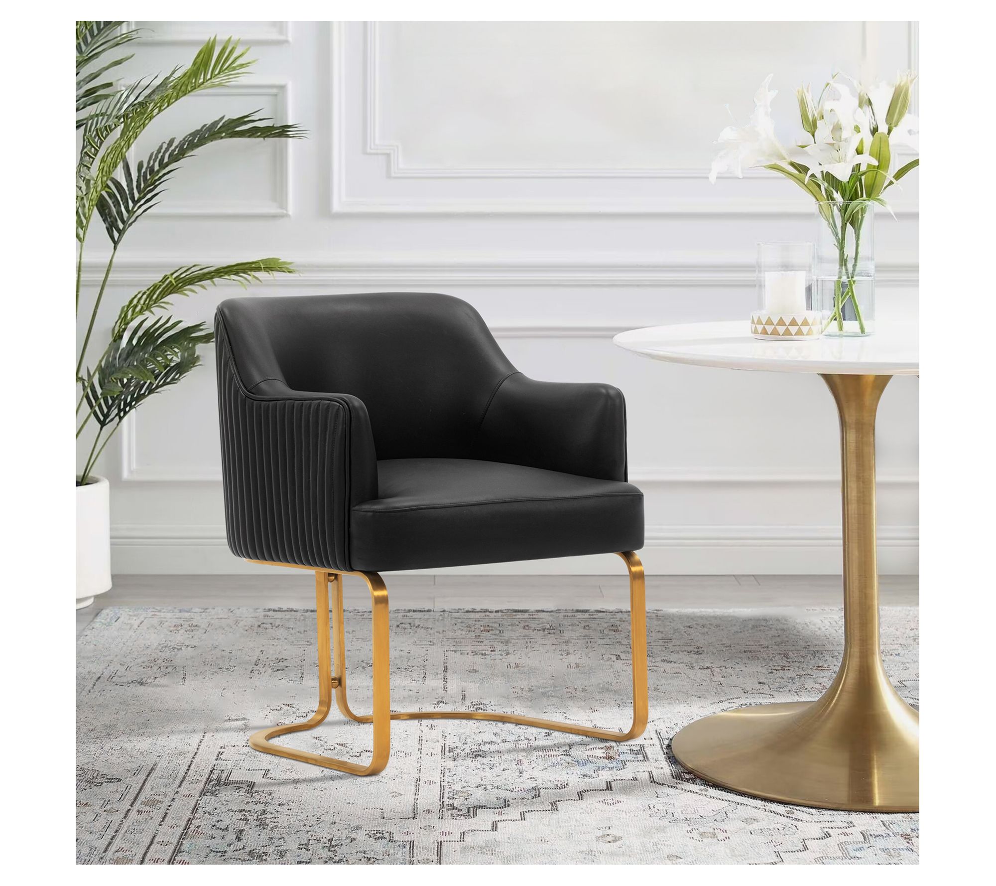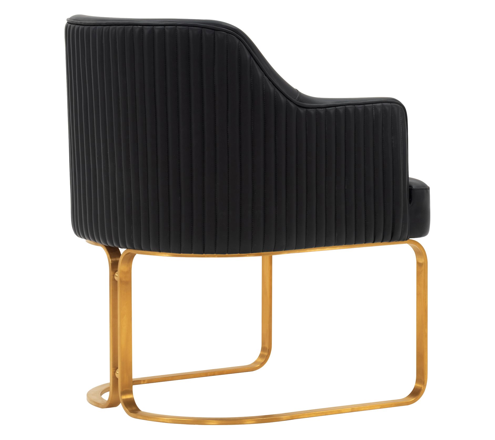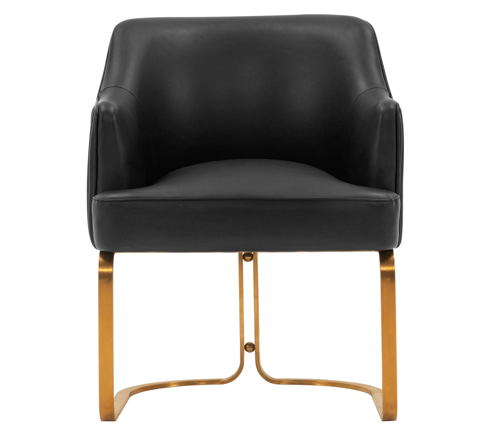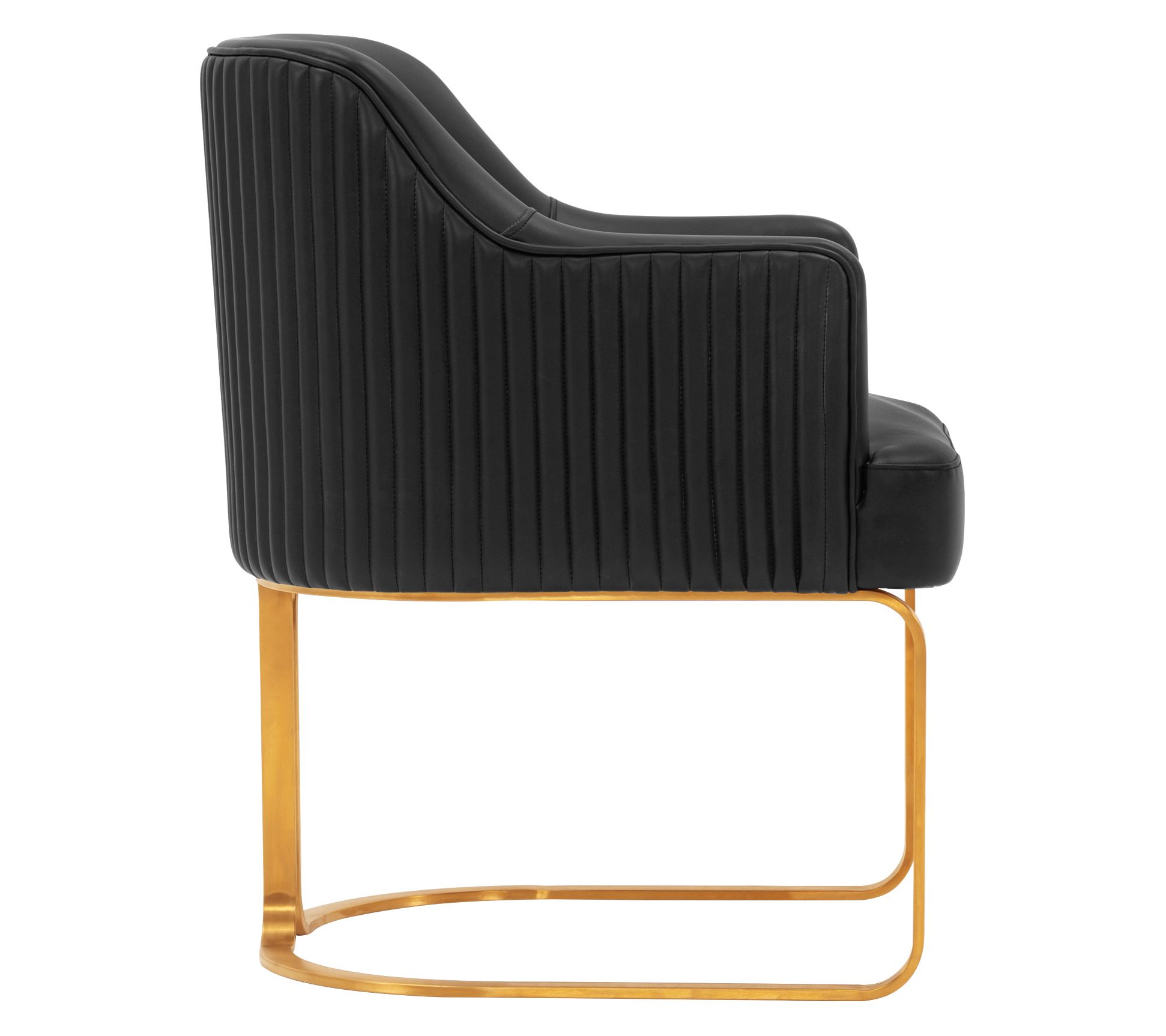 From casual dinners to late-night work sessions, this modern dining armchair invites you to settle in with comfort and style. Padded with high-density foam and dressed in soft leatherette, it supports you from every angle, while a geometric gold base and sleek ribbed stitching add flair to your dining or workspace. Arrives fully assembled for effortless setup. From Manhattan Comfort.