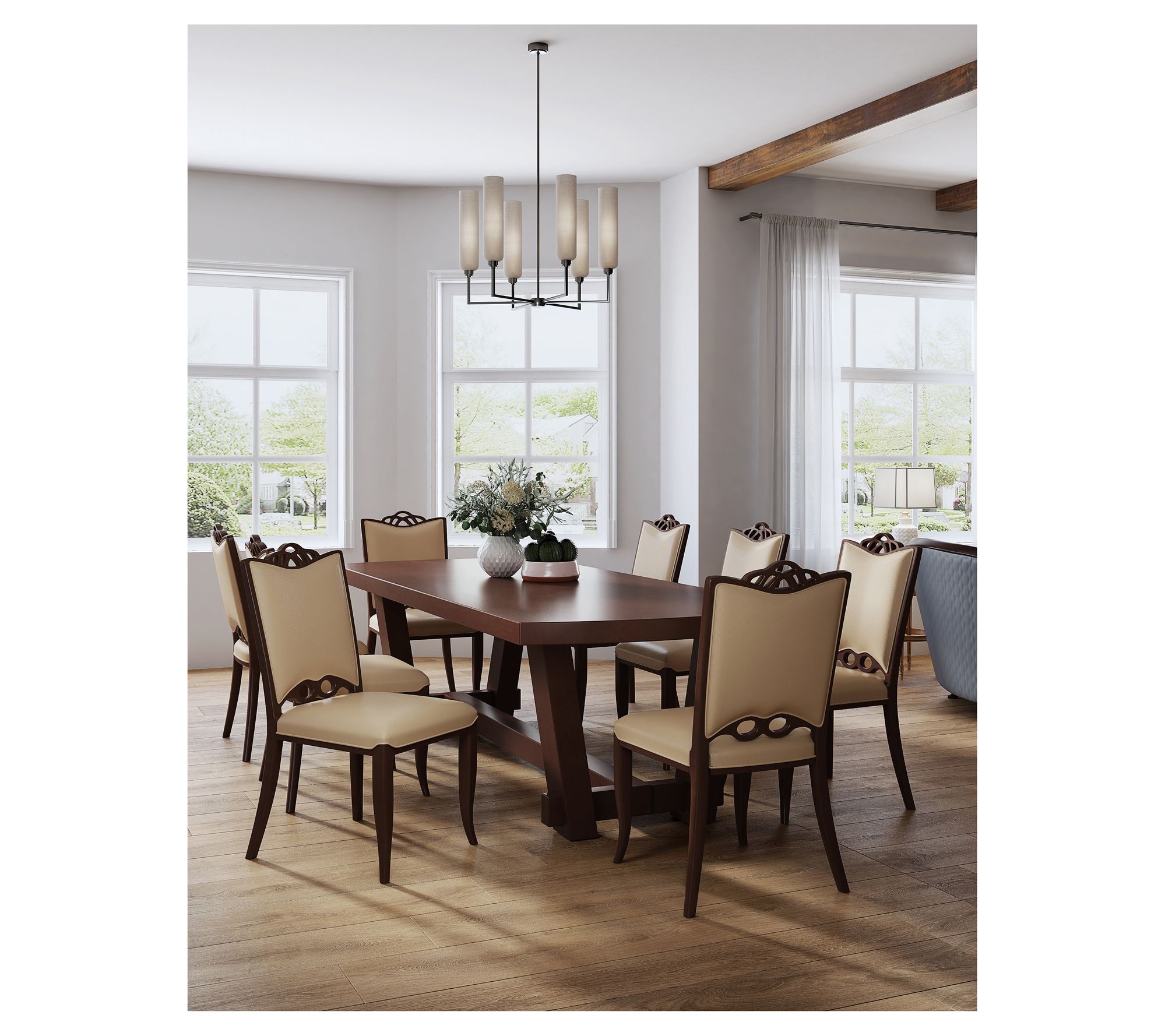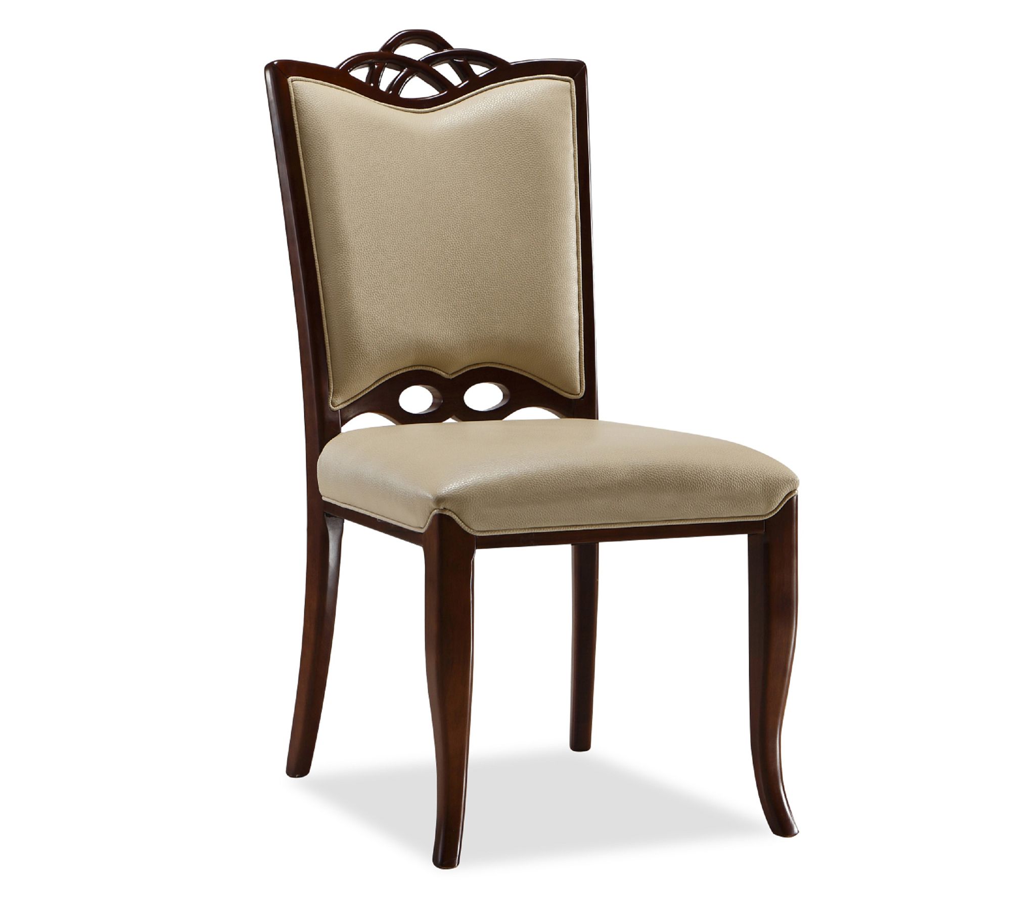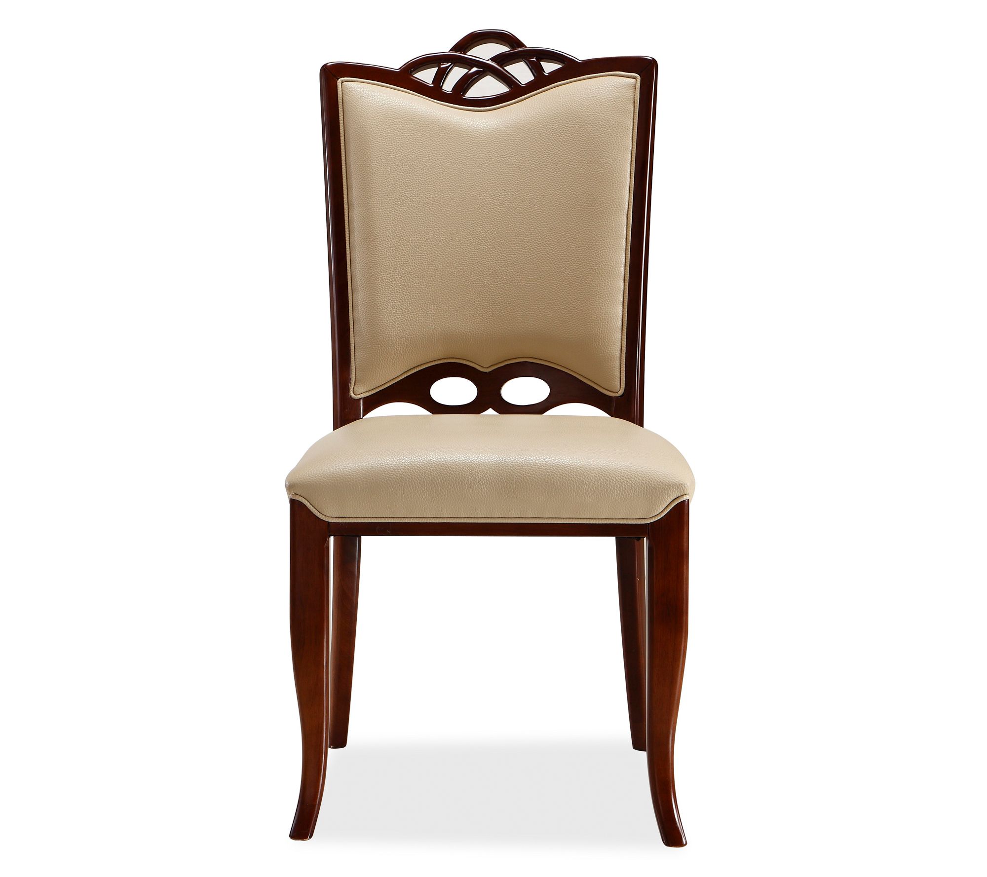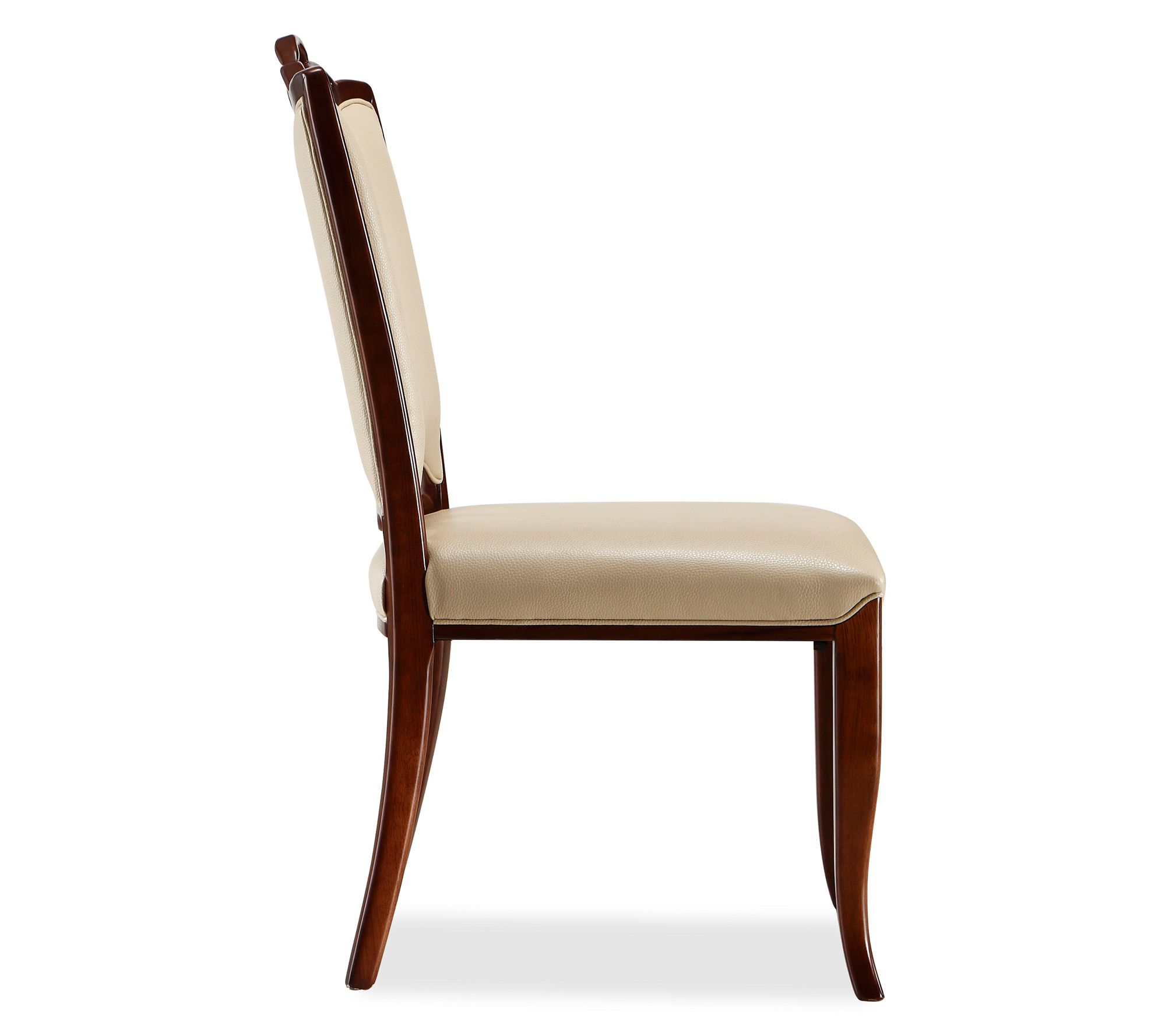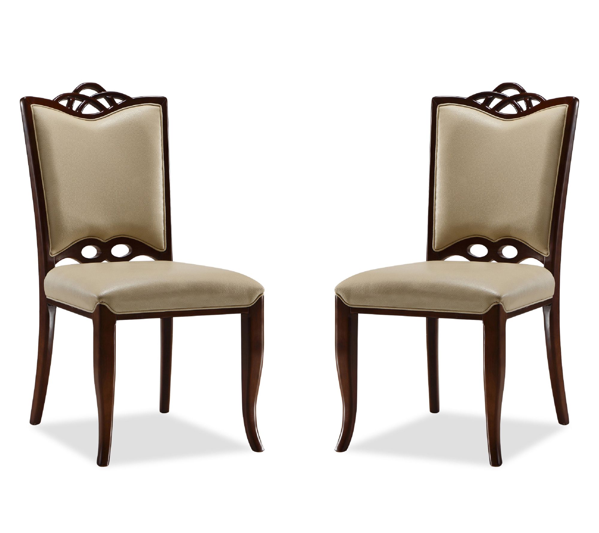 A sit-down meal with friends feels even more inviting when the seats are as striking as these -- they blend curving lines with rich details that bring a refined note to your dining room. Silky faux leather pairs with solid beech wood in a deep walnut finish, while foam padding keeps each gathering comfortable. Arriving fully assembled, they let you enjoy their sculptural elegance from the start. From Manhattan Comfort.