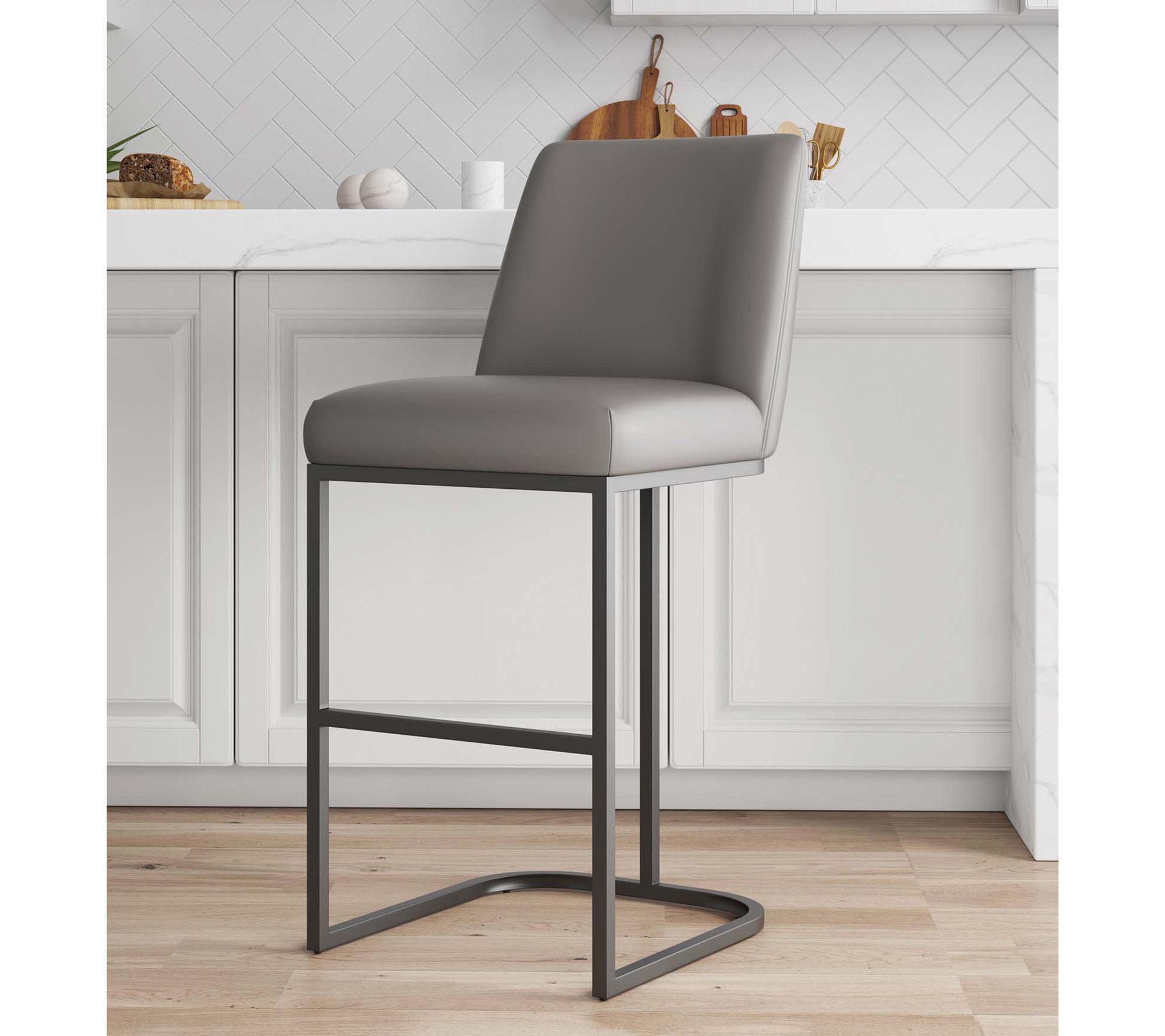 Perfect for those relaxed end-of-the-day moments or social gatherings, this modern barstool brings comfort and style right to your bar or kitchen counter. Upholstered in sleek leatherette and paired with a sturdy metal frame featuring a matte black finish, it's designed for both durability and contemporary elegance. Whether sipping cocktails or enjoying lively conversations, this barstool offers the ideal blend of plush comfort and industrial aesthetics. From Manhattan Comfort.