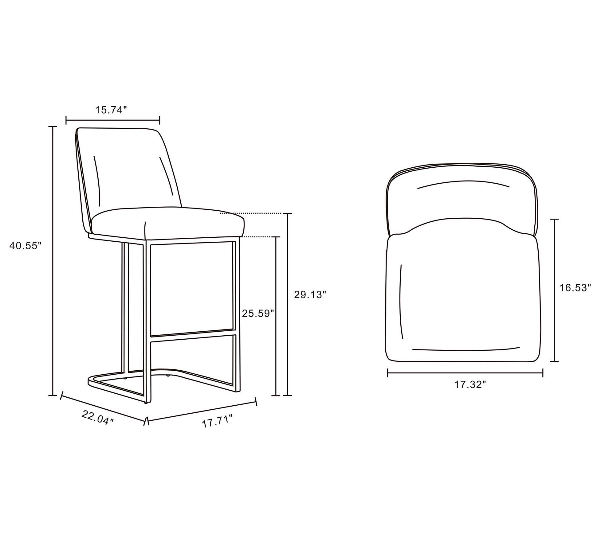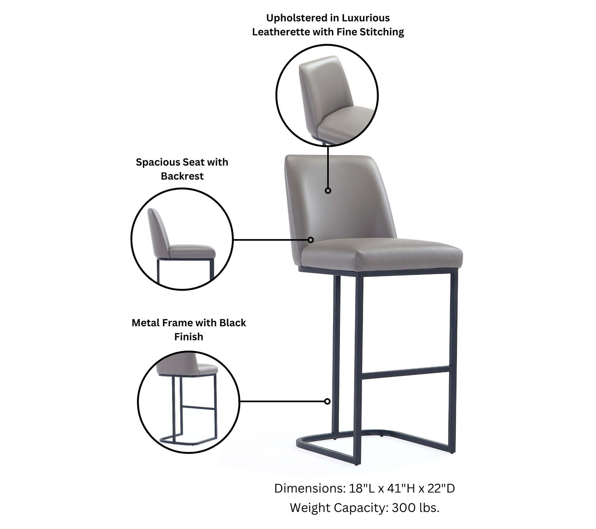 • Measurements 17.71"L x 40.55"H x 22.04"D; weight capacity 300 lbs; seat height 29.13"