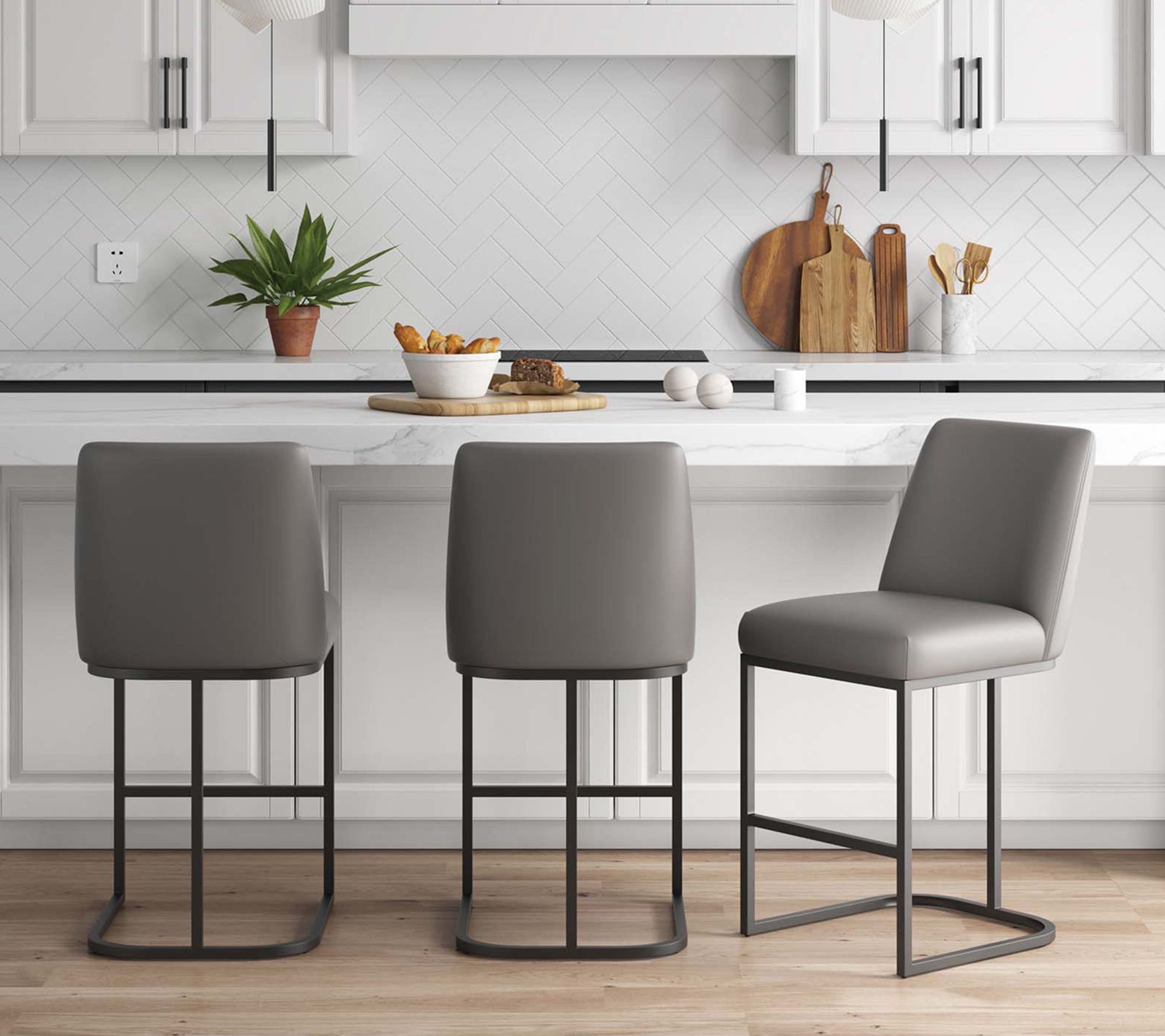 • Includes three counter stools