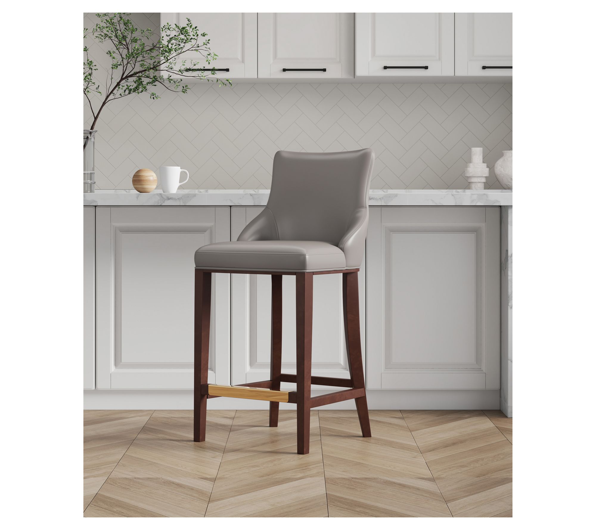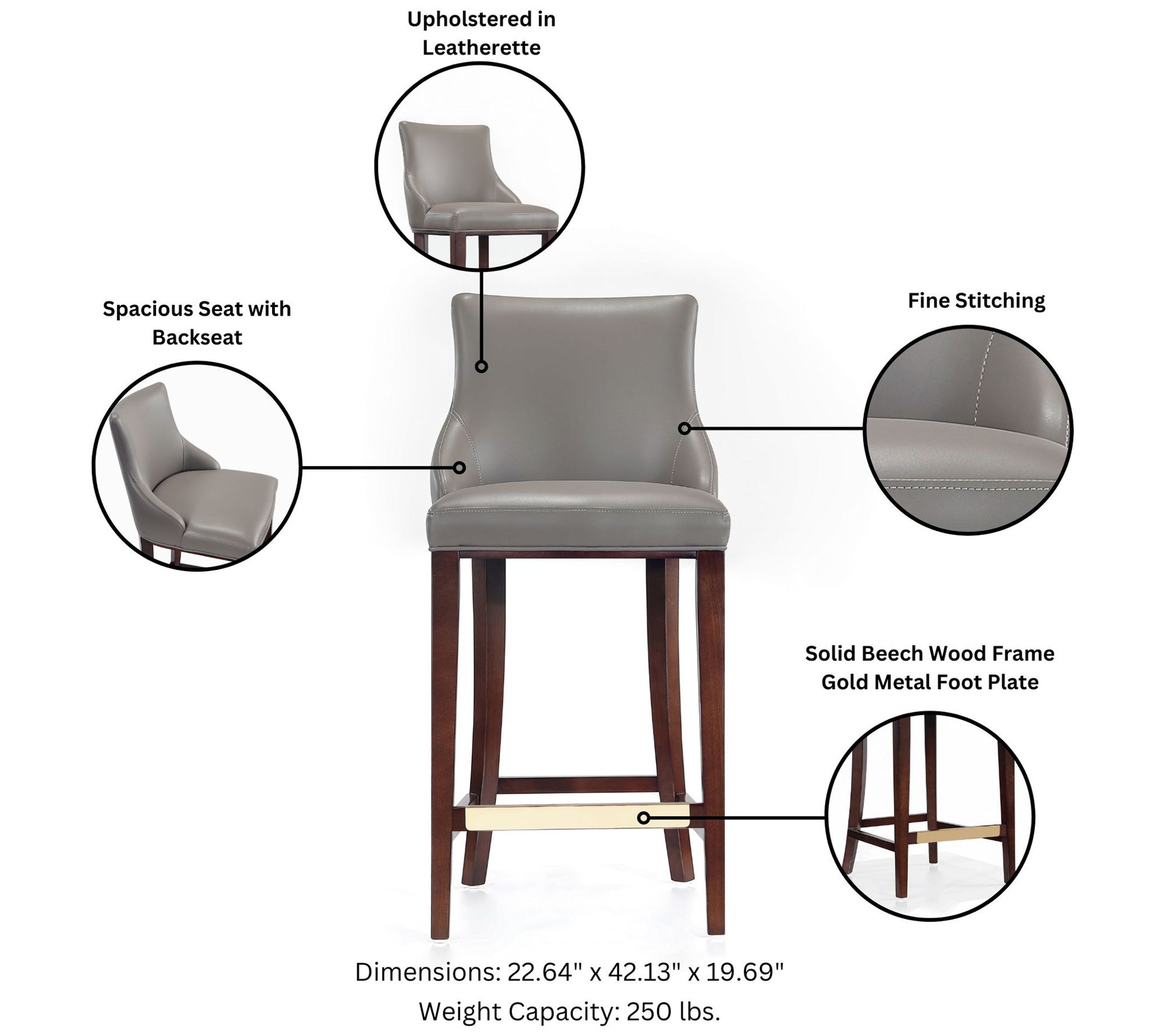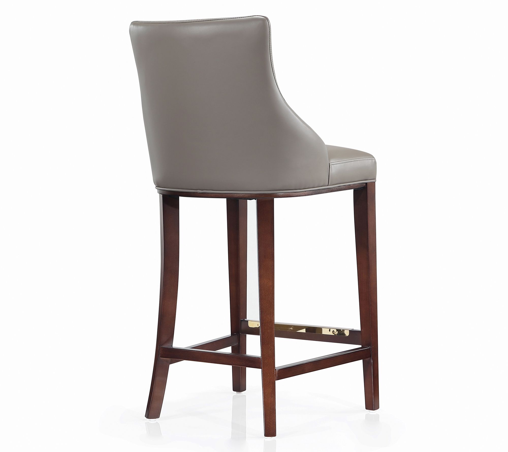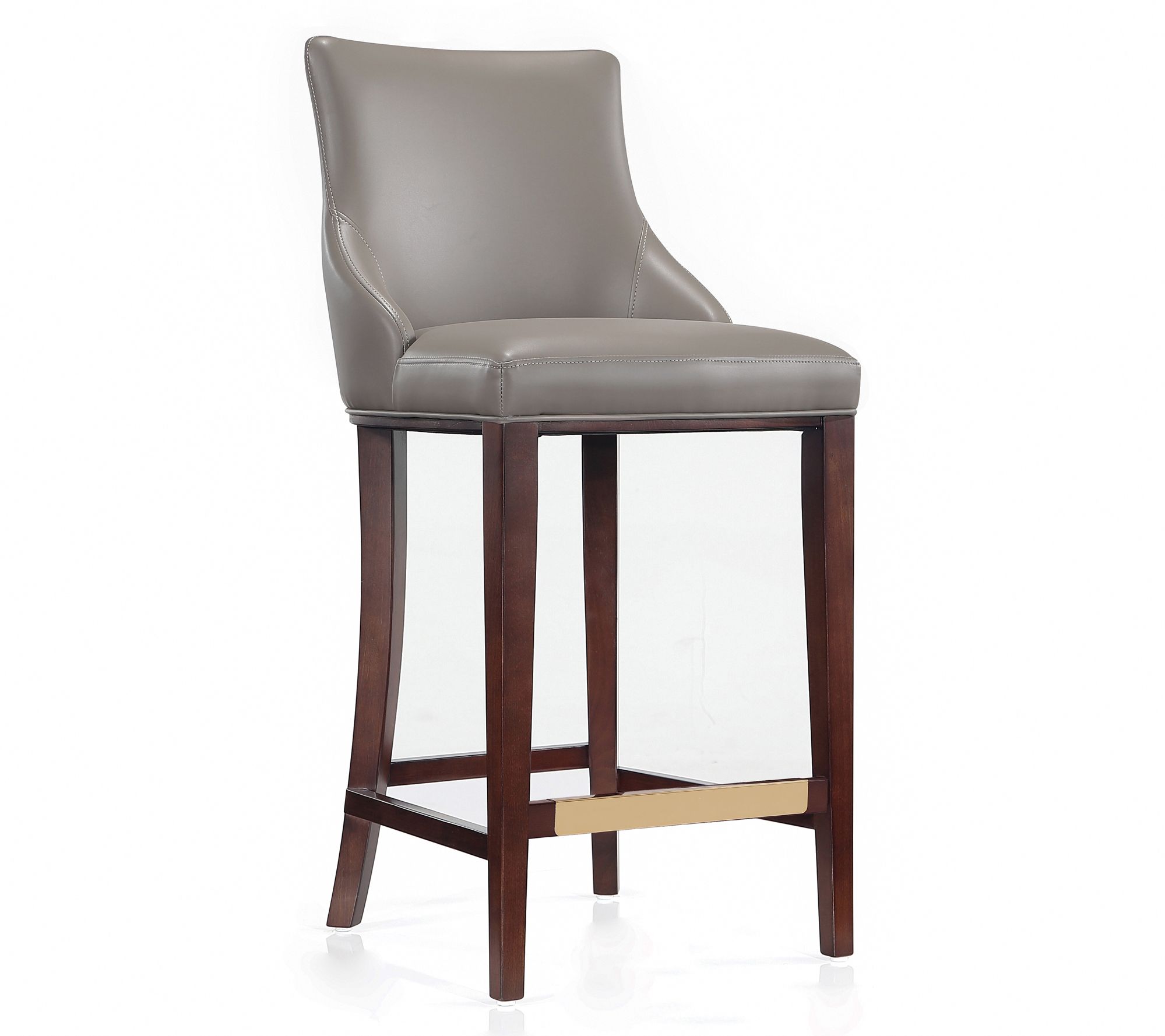 Whether you're enjoying a late-night cocktail or unwinding at the end of a long day, this barstool blends style and comfort effortlessly. Its solid beech wood frame, with a sophisticated dark finish and goldtone metal foot plate, adds a touch of elegance to any room. The high-density foam padding upholstered in plush leatherette ensures you sit comfortably for hours. Perfect in a home bar or kitchen island, it’s ready to use right out of the box -- no assembly required. From Manhattan Comfort.