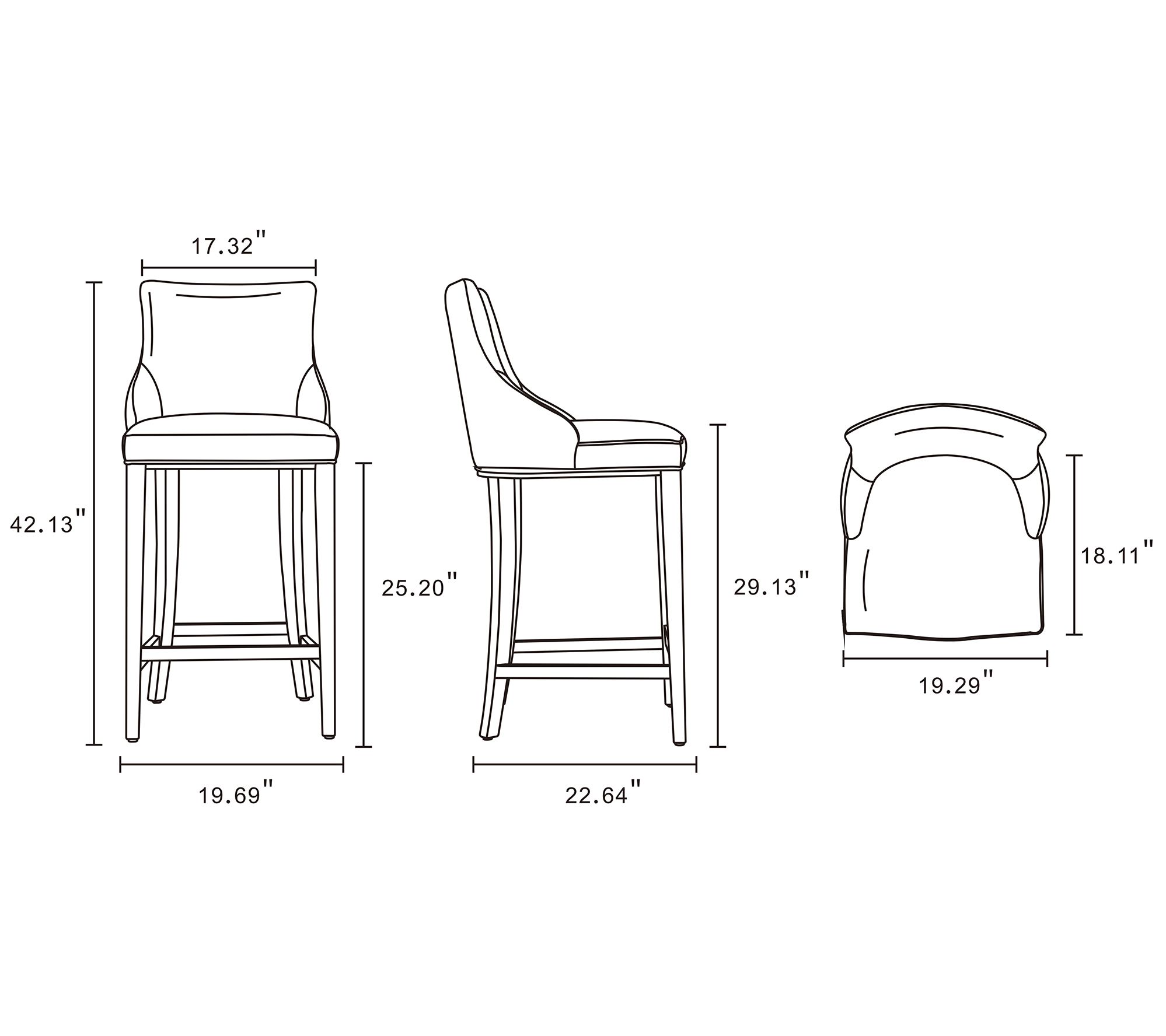 • Measures 22.64" L x 19.69" D x 42.13" H; Seat 29.13"H, supports up to 250 lbs