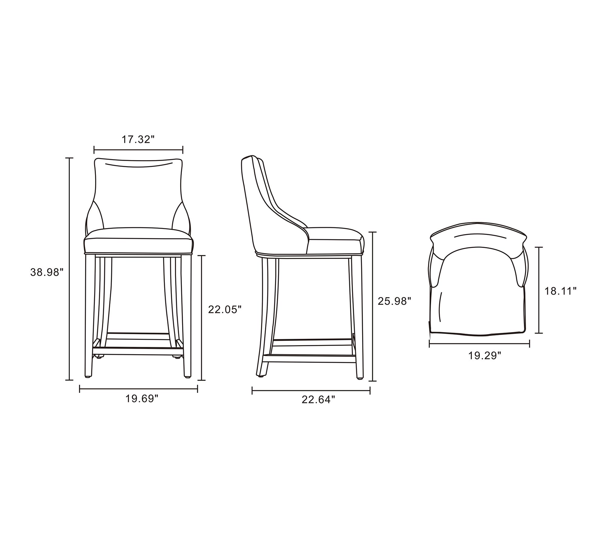 • Measures 22.64"L x 38.98"H x 19.69"D