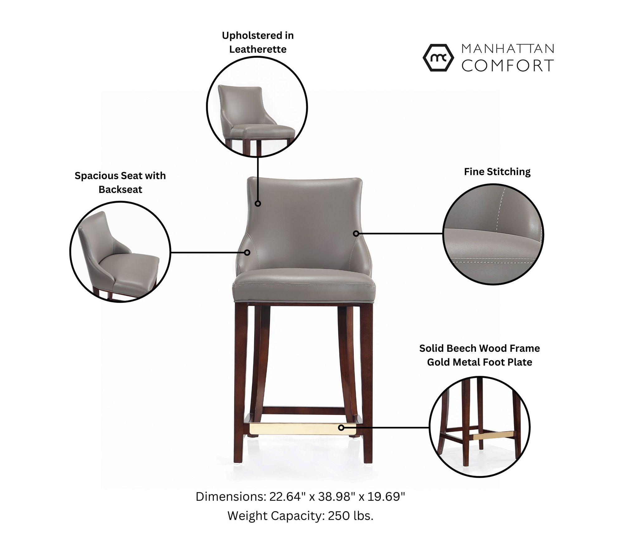 Create an inviting hangout spot at your kitchen island or counter-height table with these upholstered counter stools. Supportive cushioning and sleek design add comfort and style, making every morning coffee or evening conversation feel a bit more special. From Manhattan Comfort.