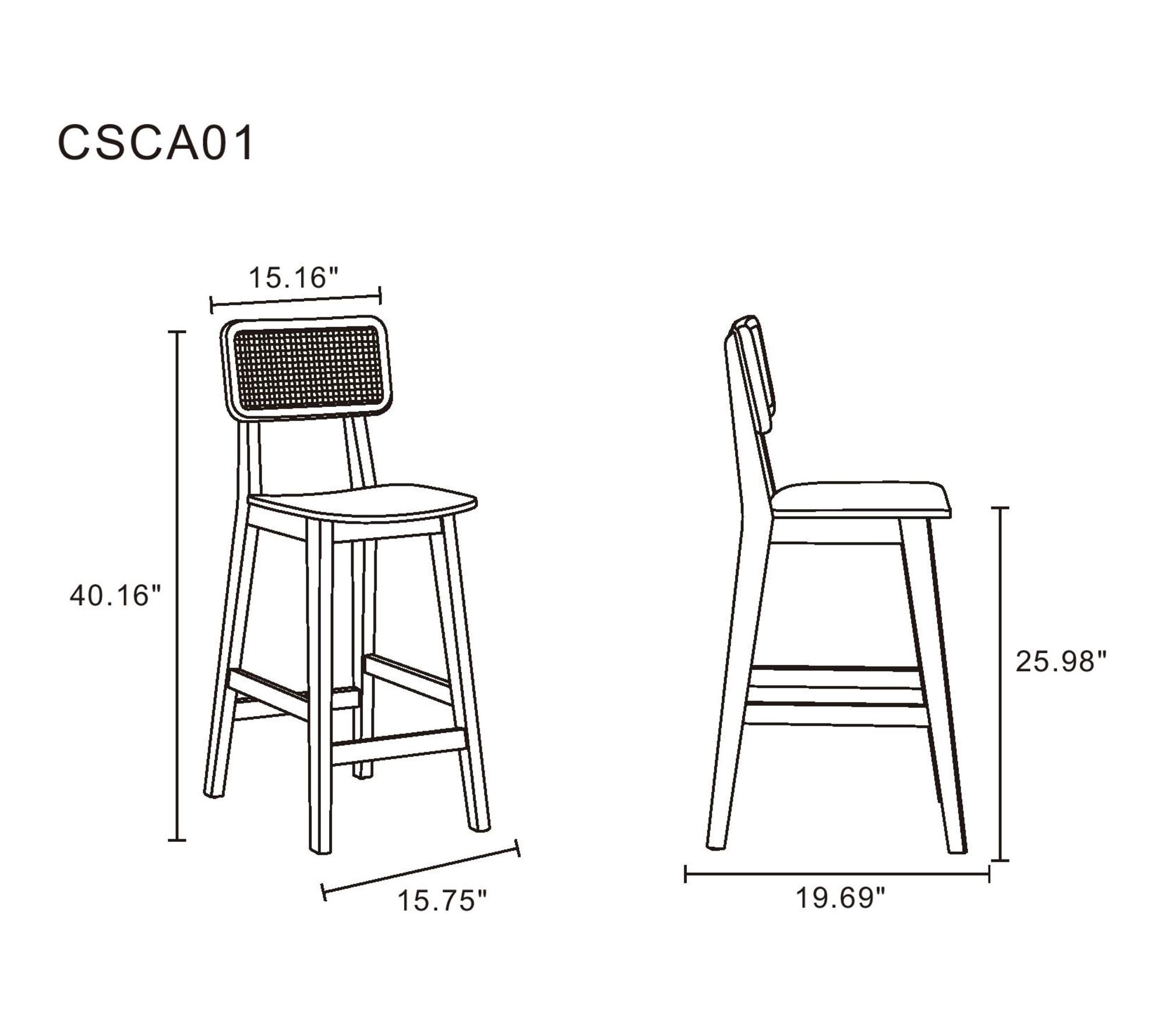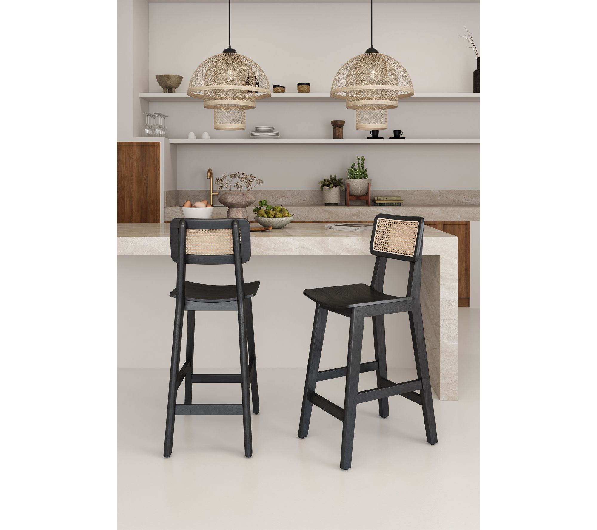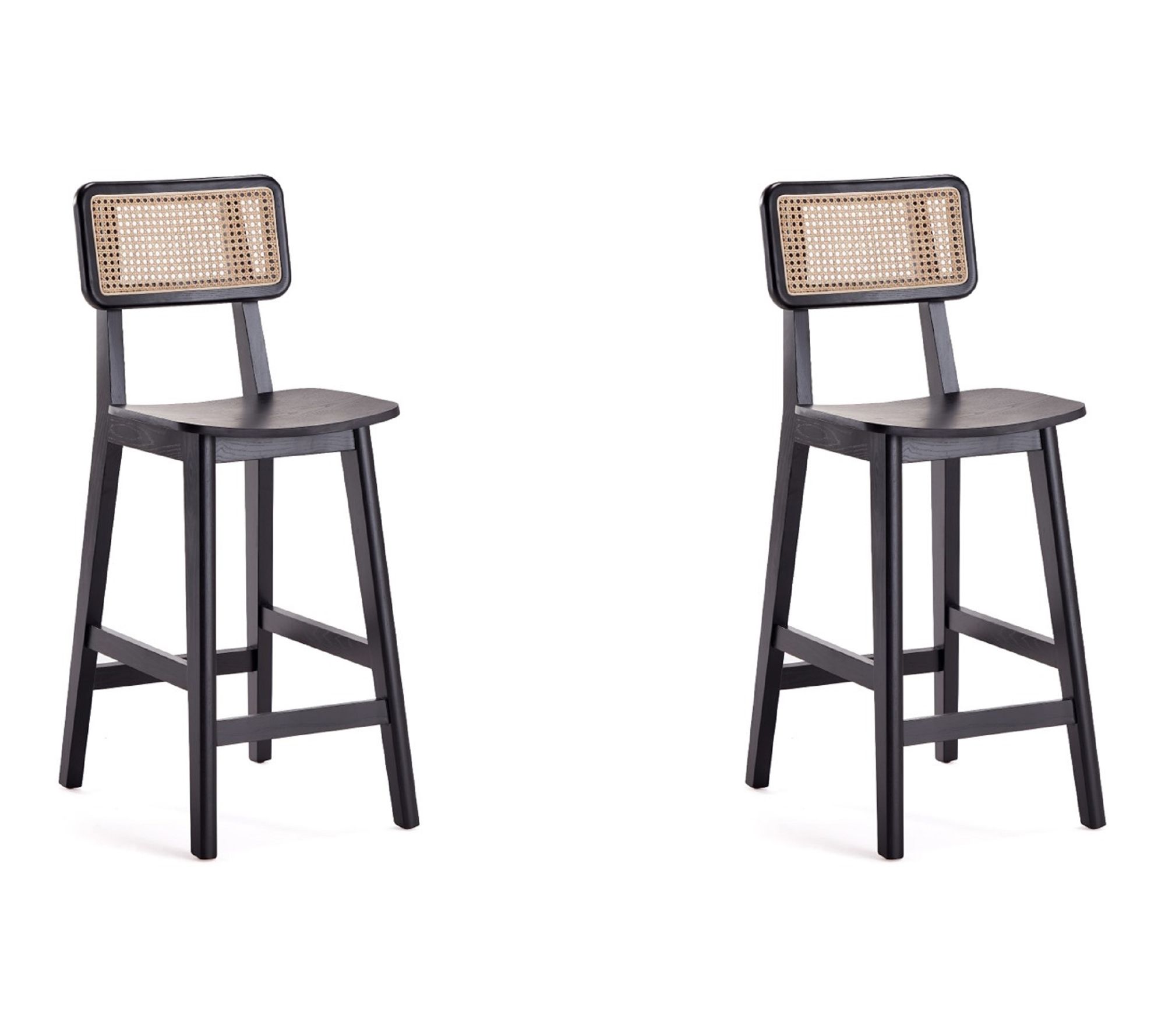 Bring effortless style and comfort to your kitchen or entertainment area with this set of two Versailles counter stools. Featuring solid ash wood frames with sleek, contoured seats and rattan cane backs, these stools easily complement everything from farmhouse to modern decor while providing a supportive spot to gather around the bar or kitchen counter. From Manhattan Comfort.