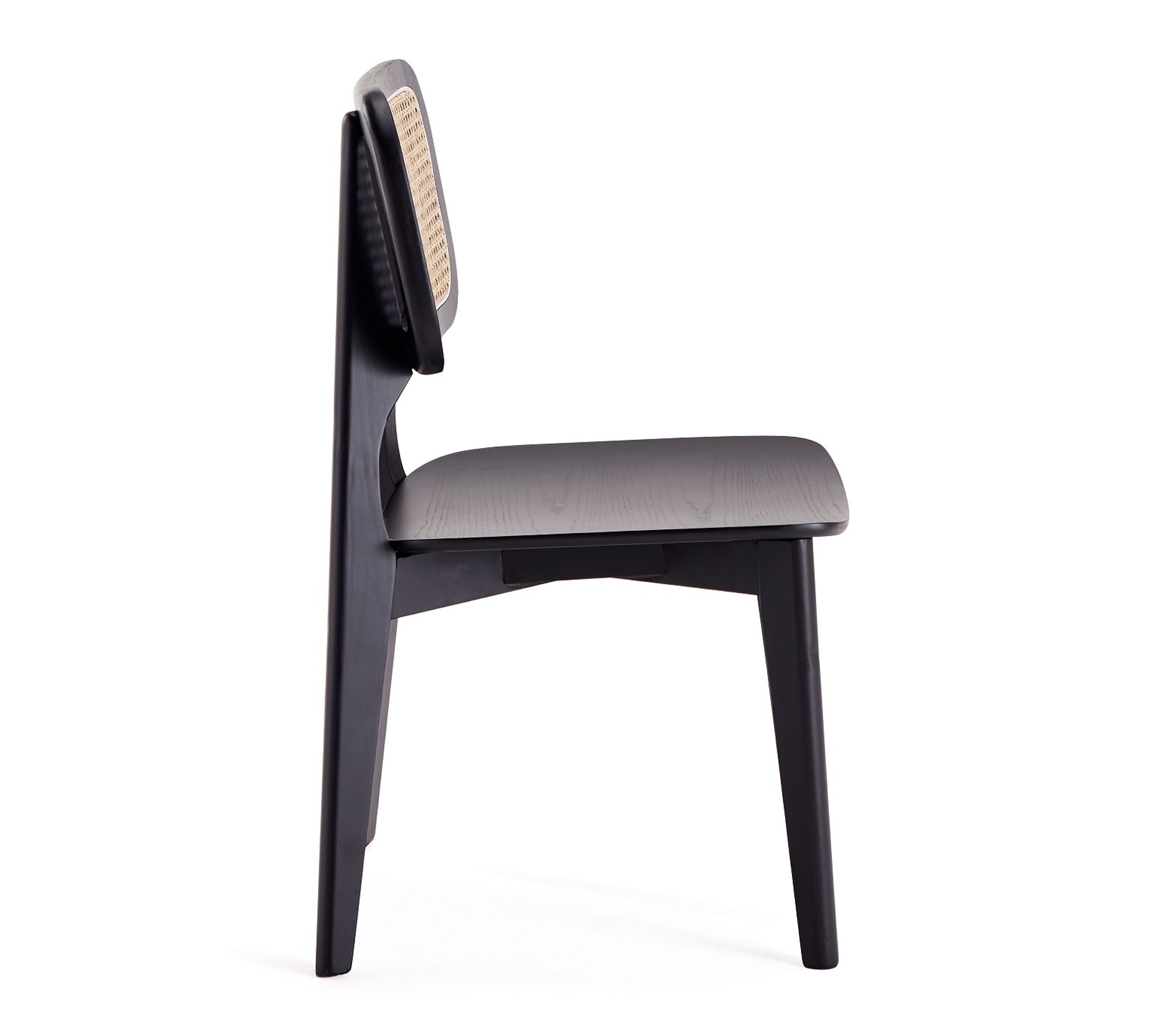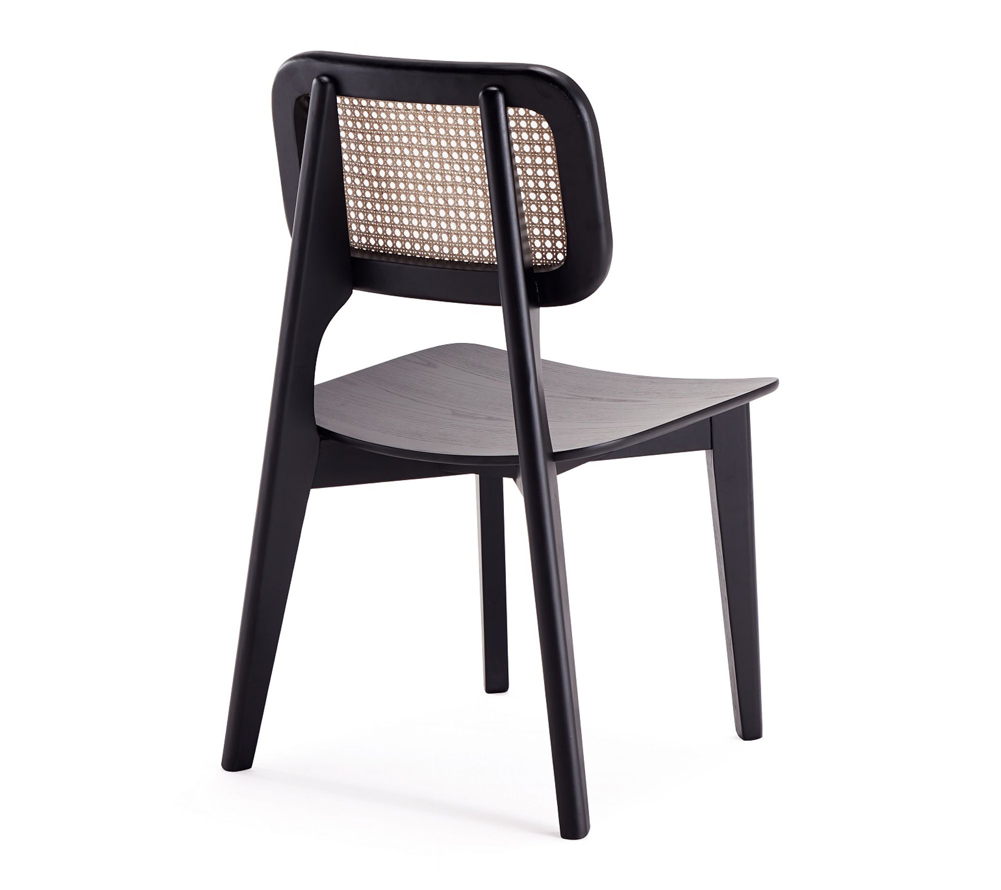 • Mid-century modern style with a rattan rectangular backrest; ash wood frame with grain textures; curved open seat