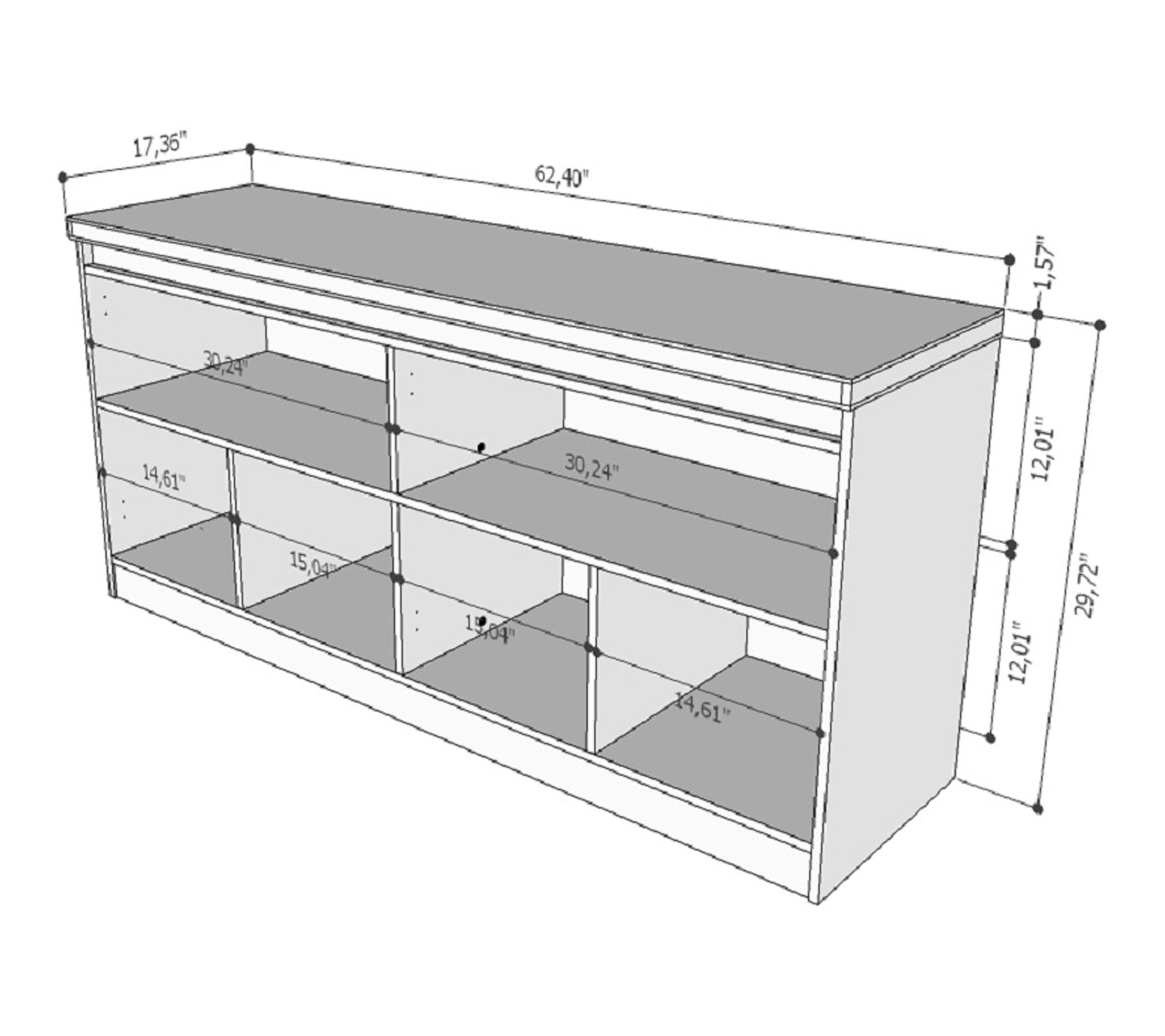 • Measures approximately 31.88"H x 62.99"W x 19.68"D