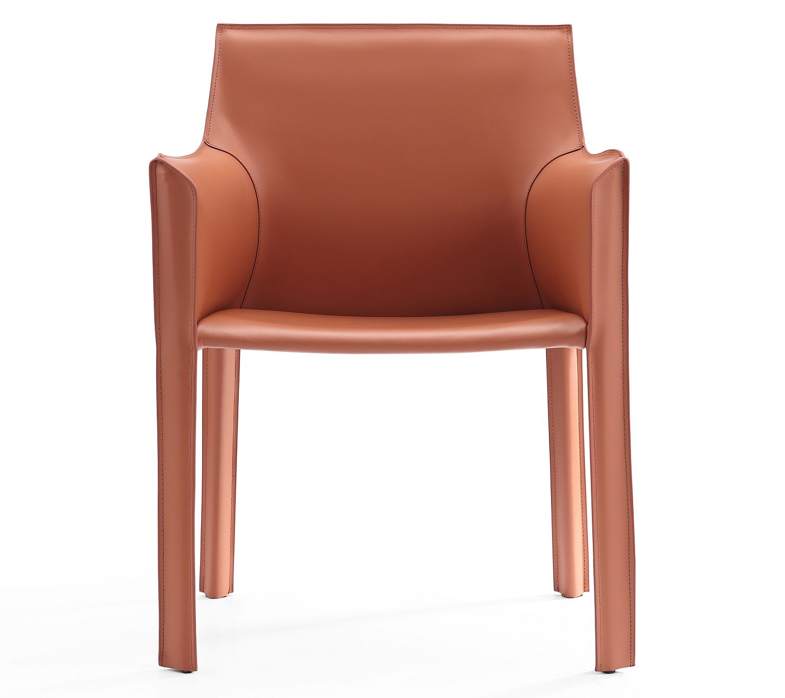 Dining at home feels extra welcoming when comfort meets modern style. This chair's curved backrest and armrests invite you to linger over family meals or long work sessions, while smooth, tailored faux leather lends sophistication to any room. The sturdy metal frame offers strength for daily use, and fully assembled convenience means it's ready when you are. From Manhattan Comfort.