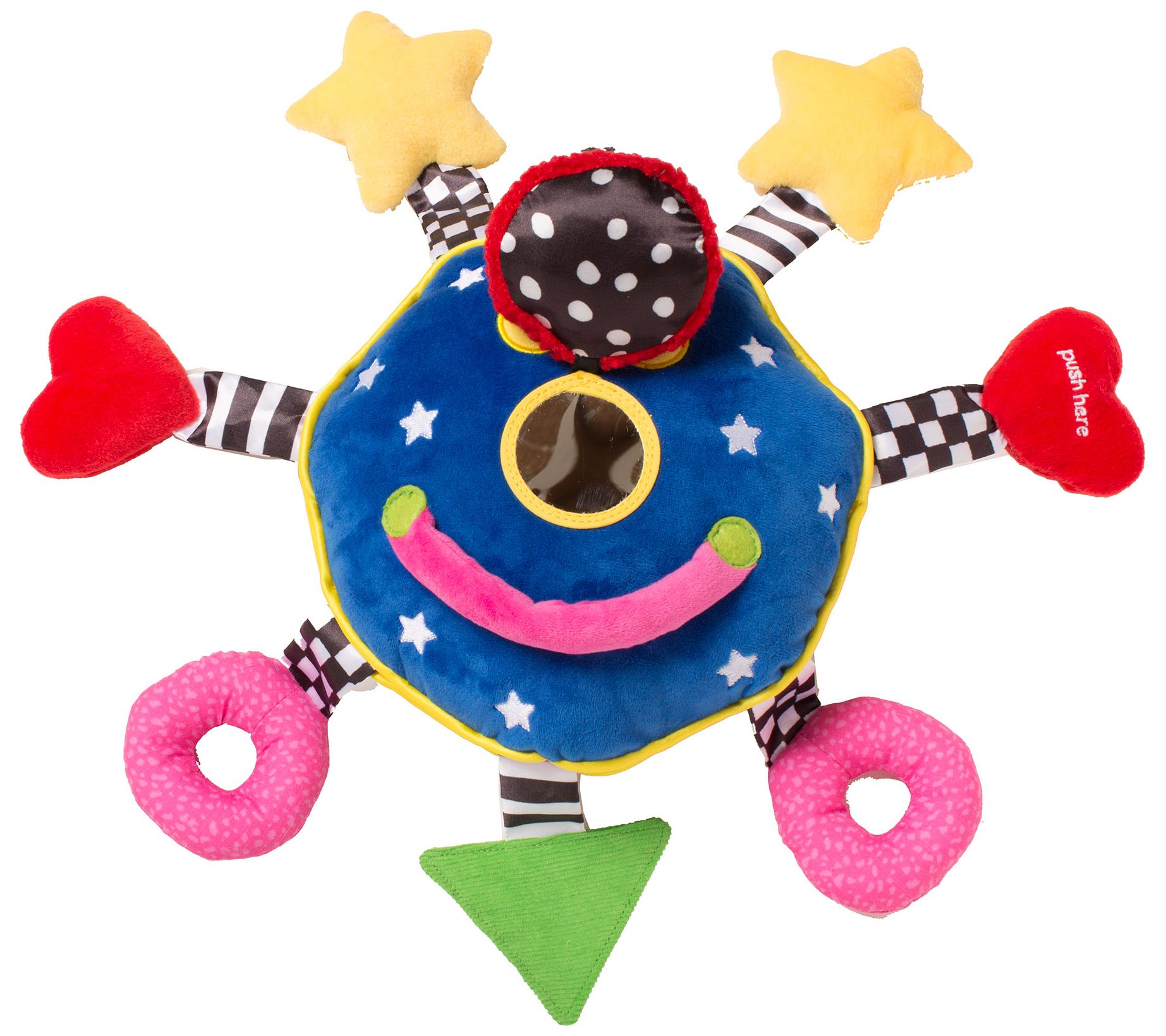 With so many ways to play, the Whoozit offers instant entertainment for your little one. It's crafted from soft, tactile fabrics and topped with hidden noisemakers and a hidden mirror for exploration and discovery. From Manhattan Toy Company.