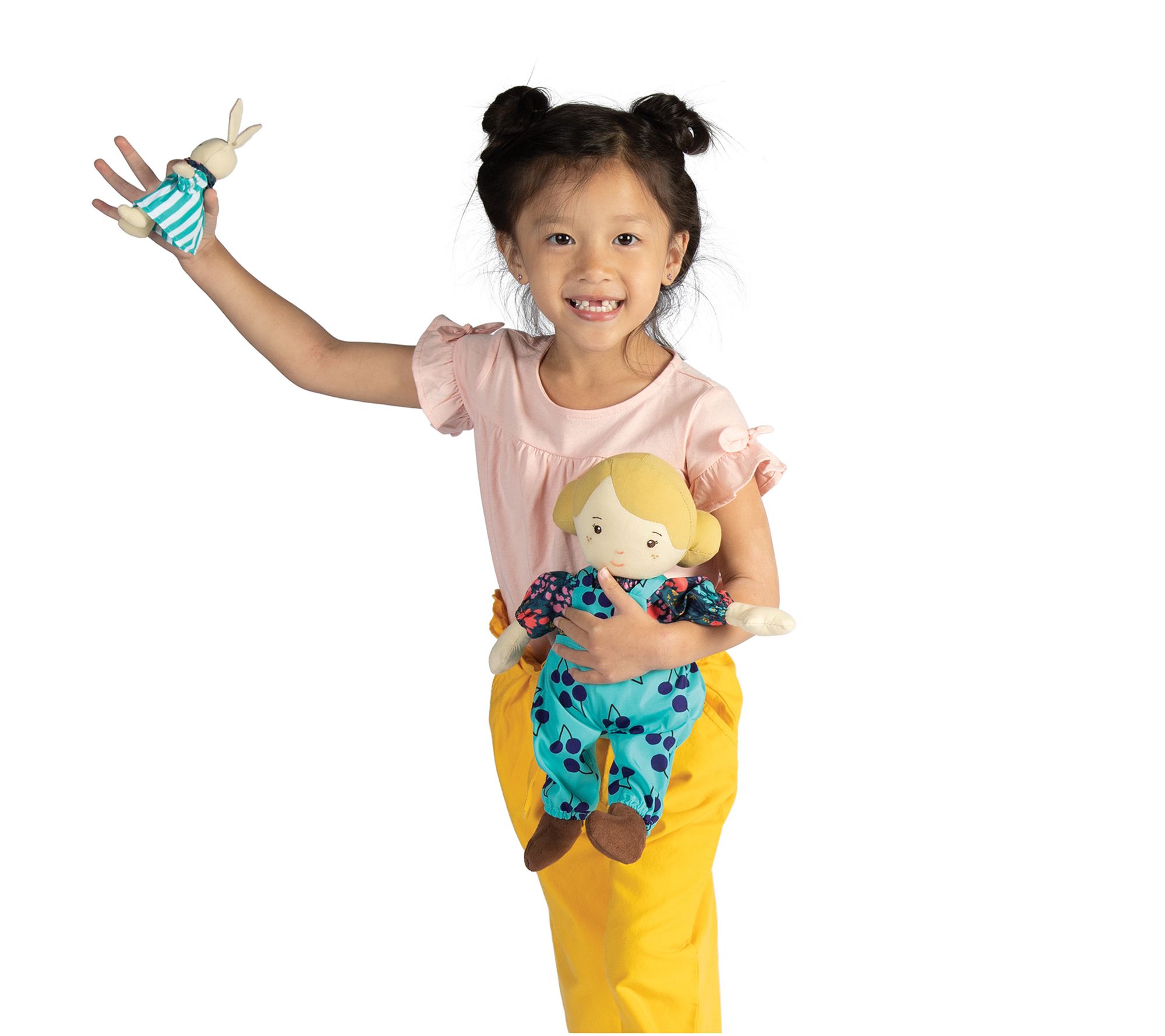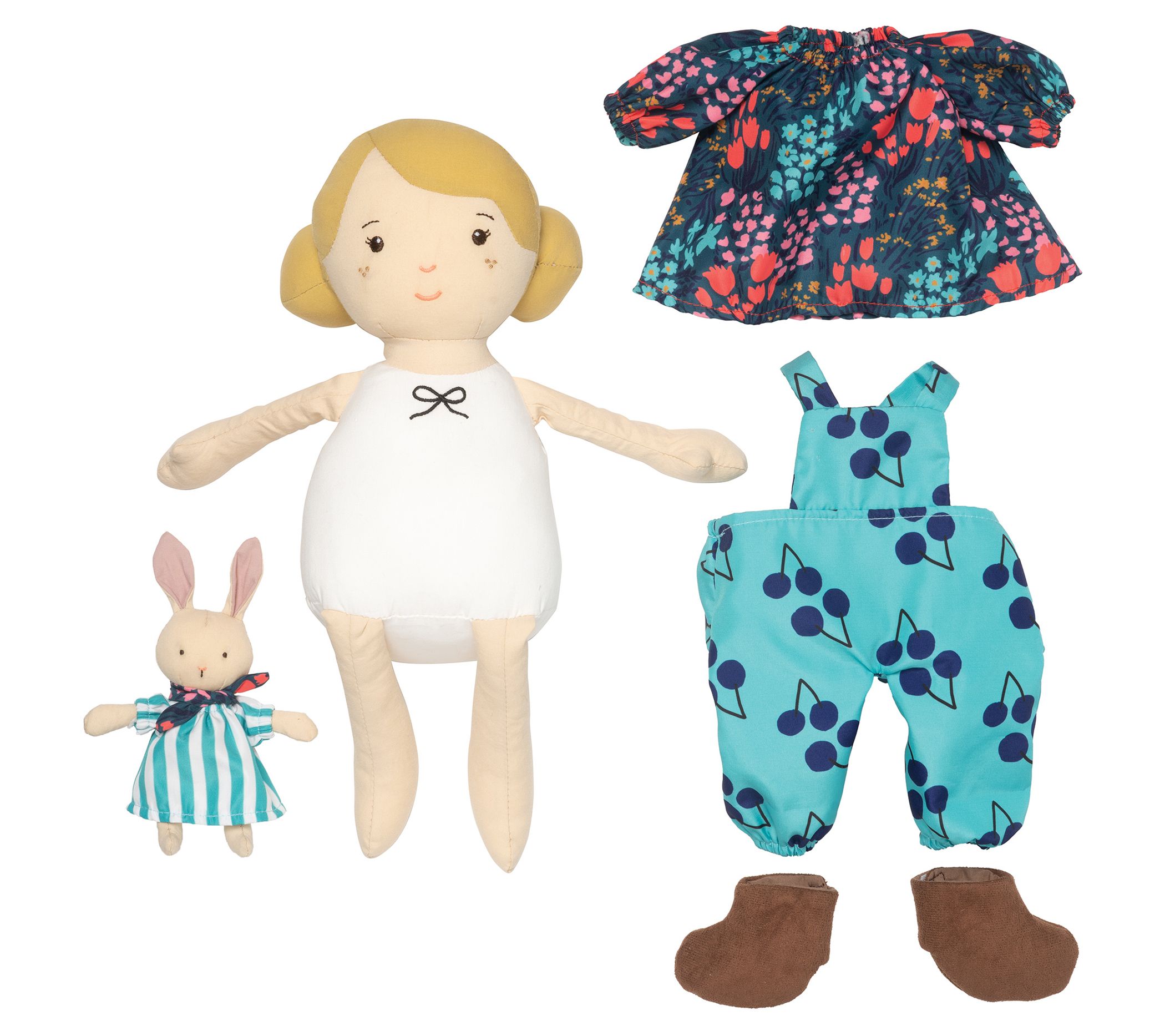 • Includes doll, removable doll outfit, and stuffed animal bunny