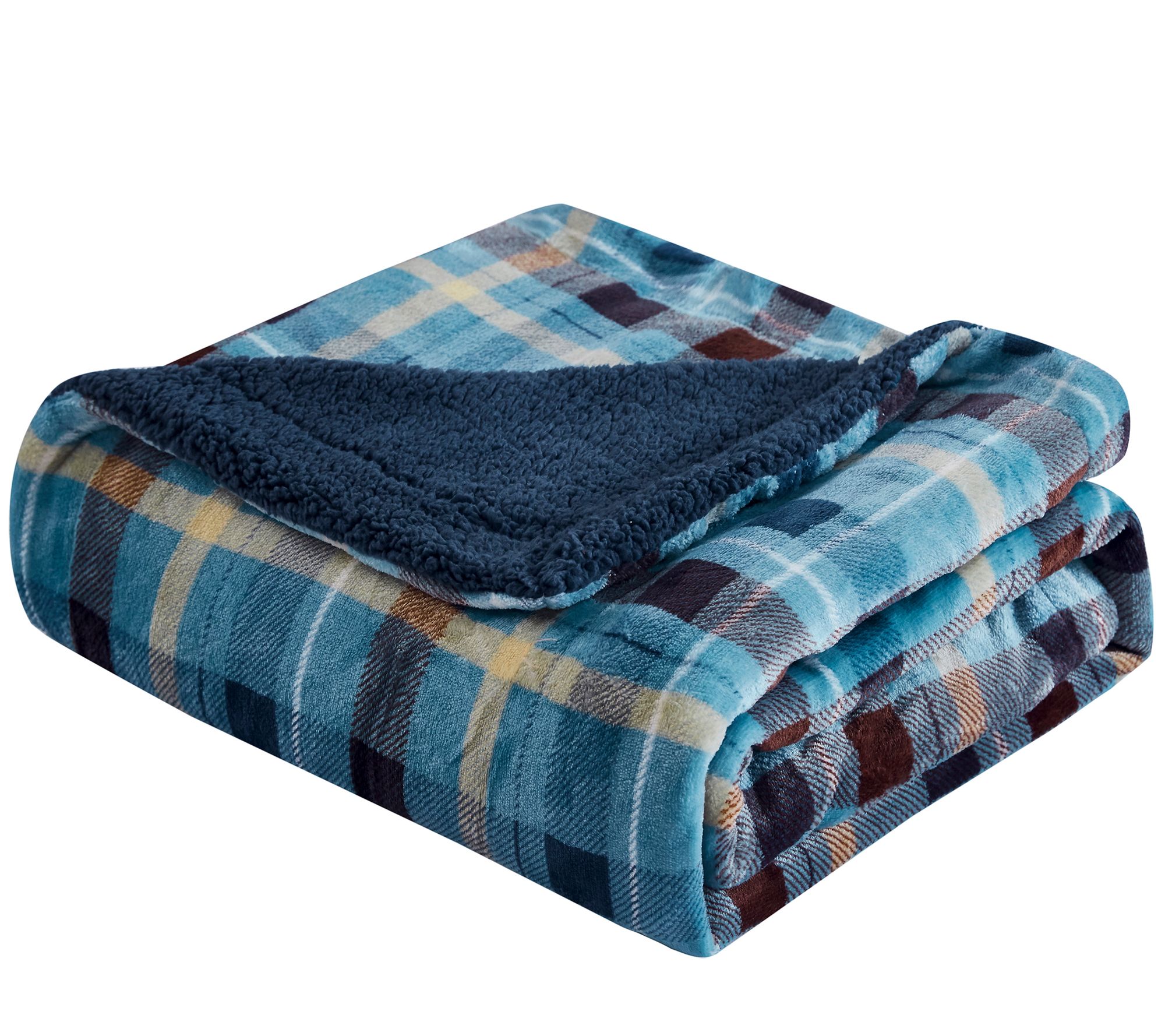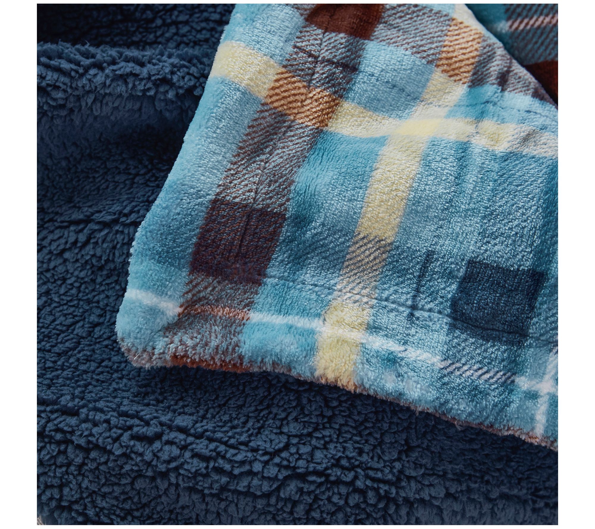 • Plaid velvet reverses to sherpa