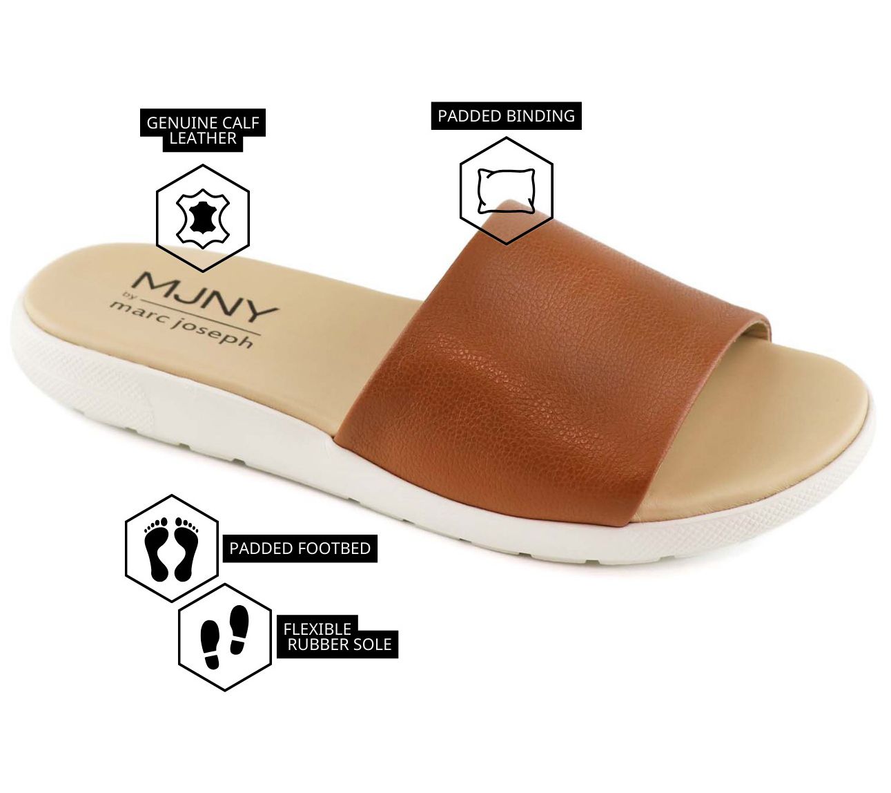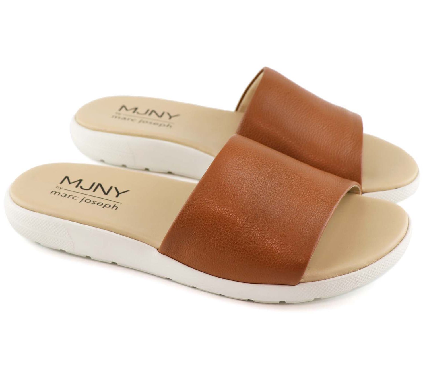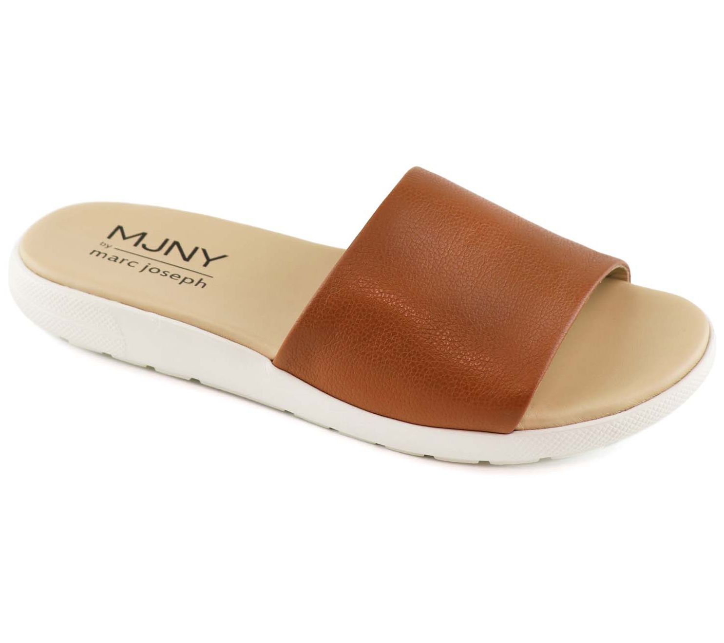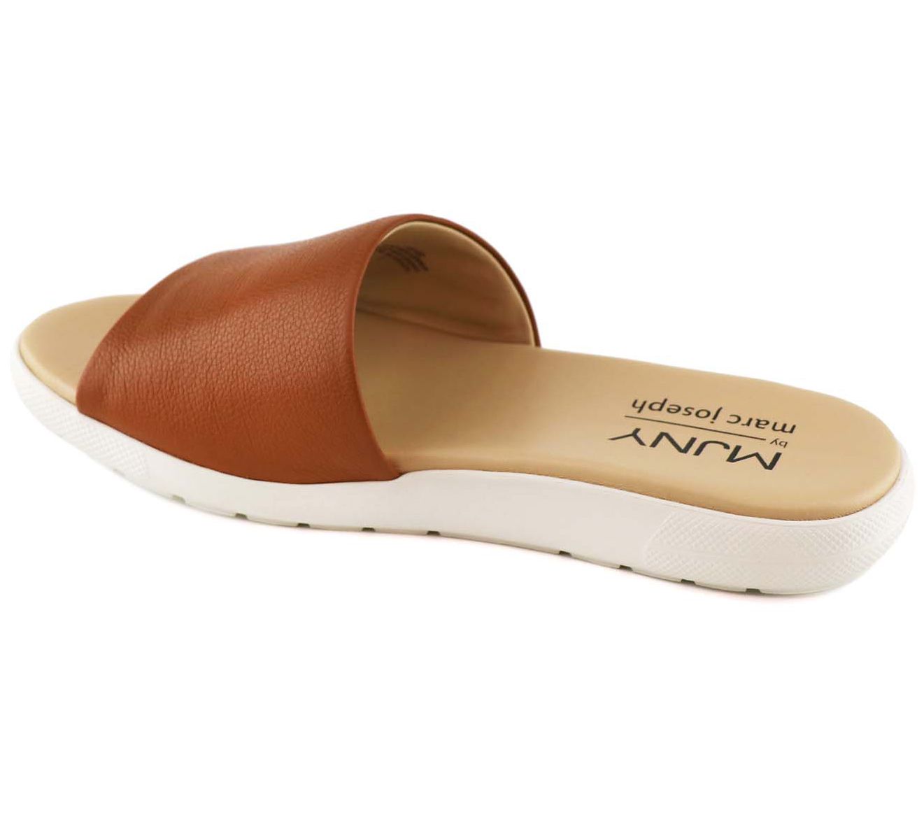 Step into the city vibe with this slip-on sandal, a blend of NYC design and Brazilian craftsmanship. This sandal features a durable rubber sole for excellent traction and a gel heel insert, plus a densely padded footbed for ultimate comfort, making every step a pleasure. From Marc Joseph New York.