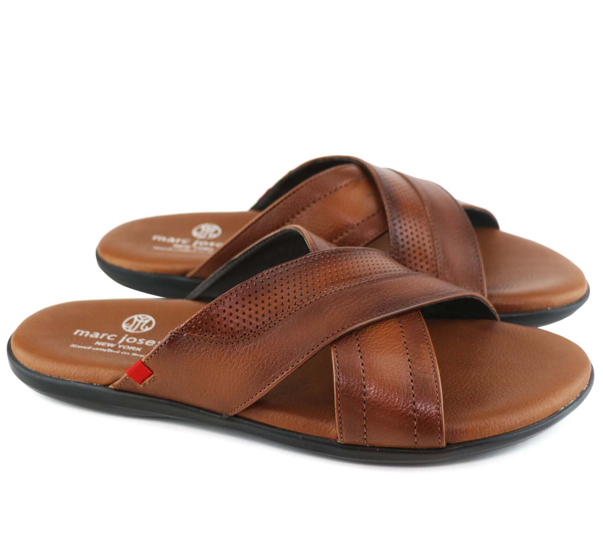 Step into effortless style and comfort with these skillfully crafted sandals featuring a durable, flexible rubber sole and a densely padded footbed for superior walking comfort. From Marc Joseph New York.
