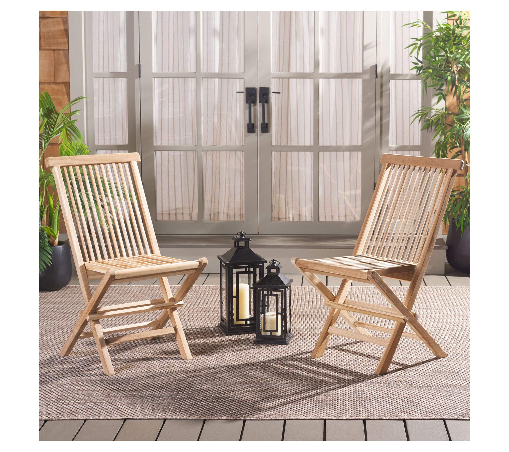 Create a cozy and inviting outdoor space with these versatile folding chairs. Crafted from durable teak wood, they offer a clean and timeless look, perfect for any garden or patio. Their foldable design ensures easy storage and practicality, while their smooth finish and sleek lines add a touch of elegance to your decor. From the Valerie Parr Hill Collection.