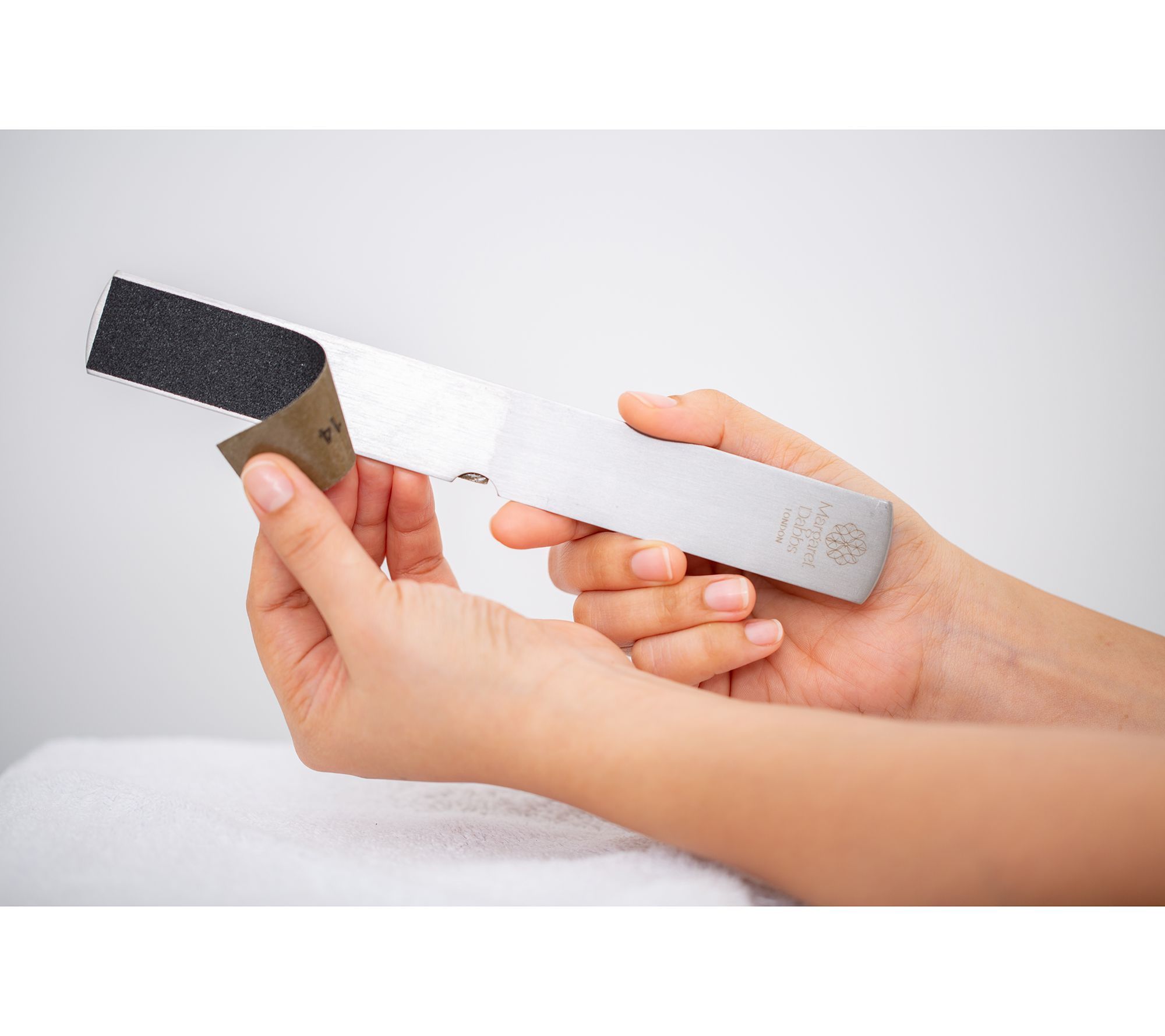 How do I use it: For optimum results, use foot file once a week on dry feet before you have bathed or showered. Wash after use with a damp nail brush and dab dry. Once worn, peel back and dispose of old pads and replace with new self-adhesive pads by pressing firmly into position on the file.