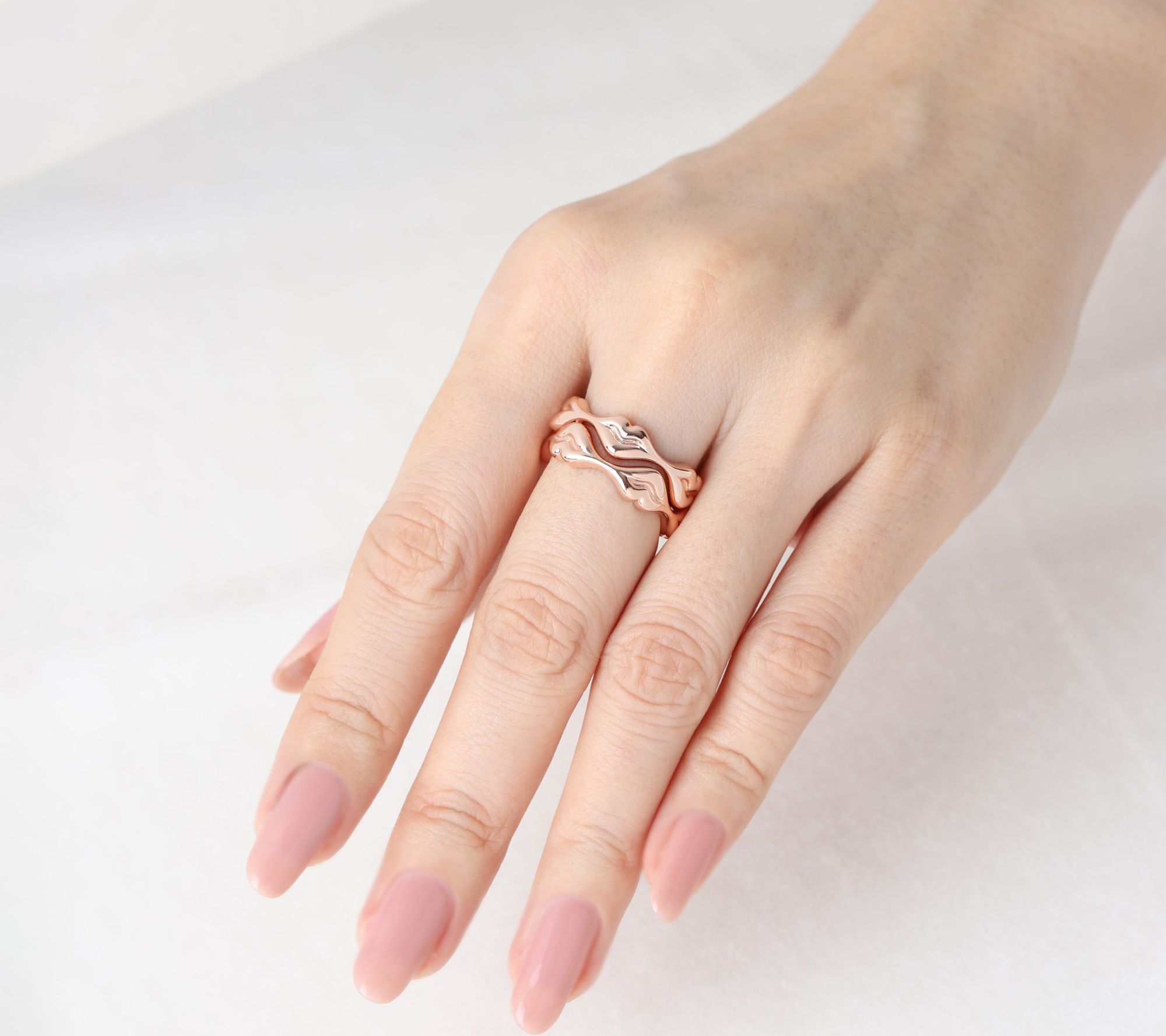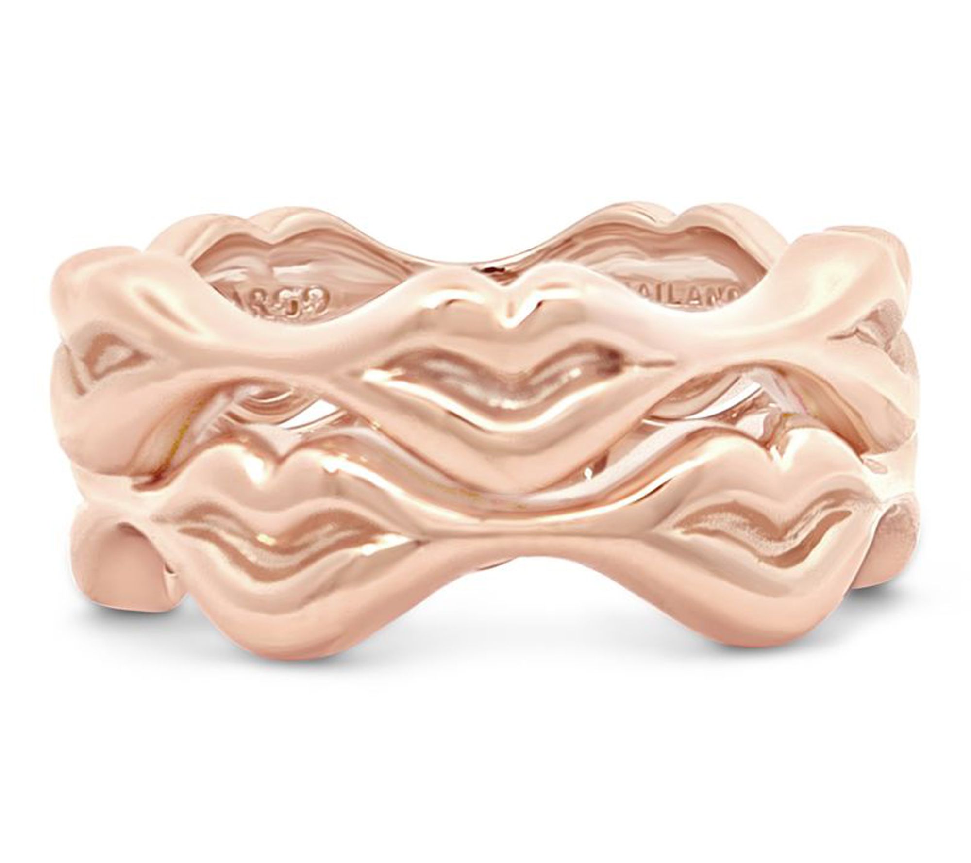 Add a playful pop to your look with this interlocking lips ring set -- just the thing for date night or adding a bit of flirtatious charm to your favorite outfit. Made for mixing and matching, these rings invite creative stacking or stand out beautifully worn solo. From Margo Manhattan.