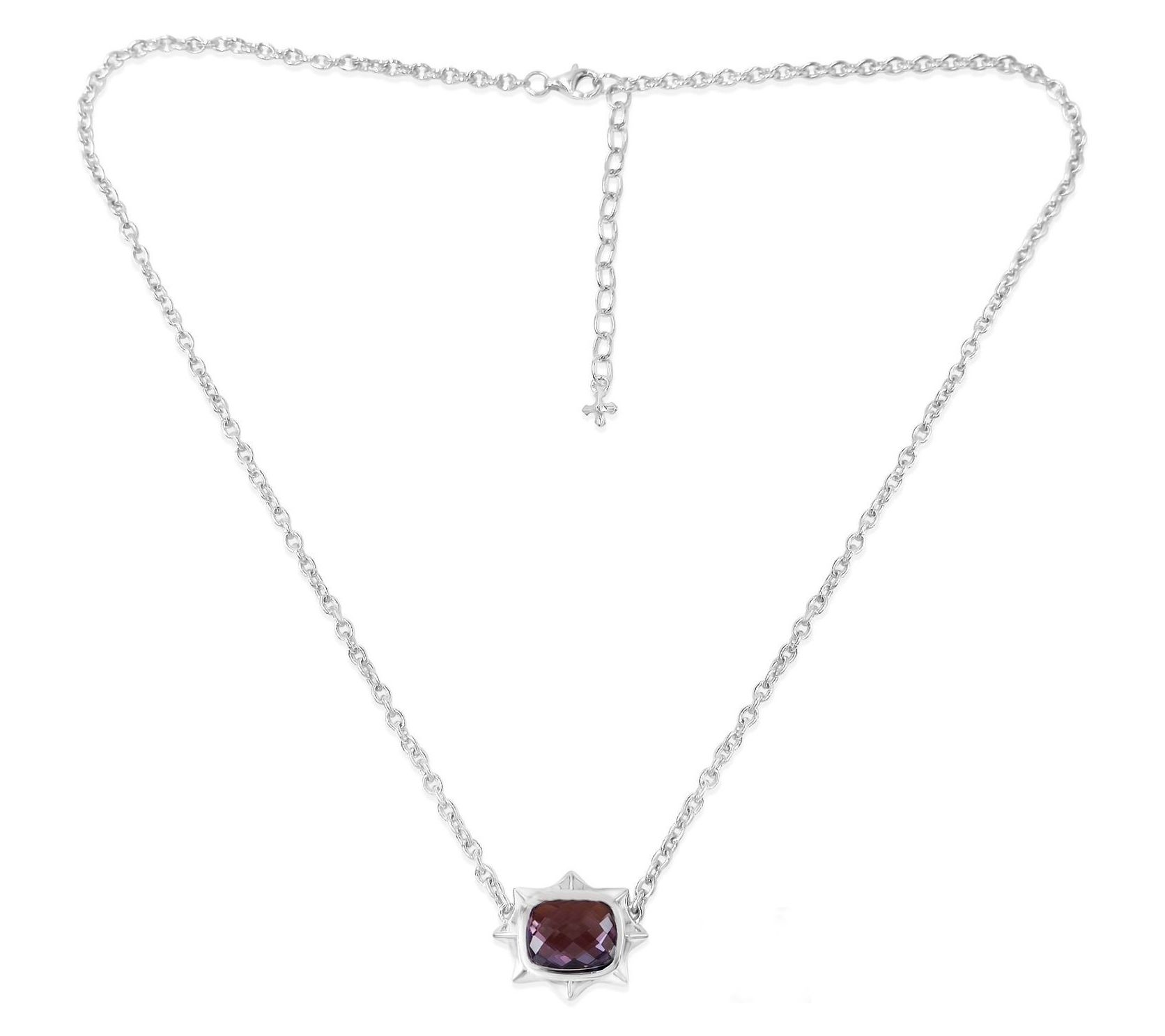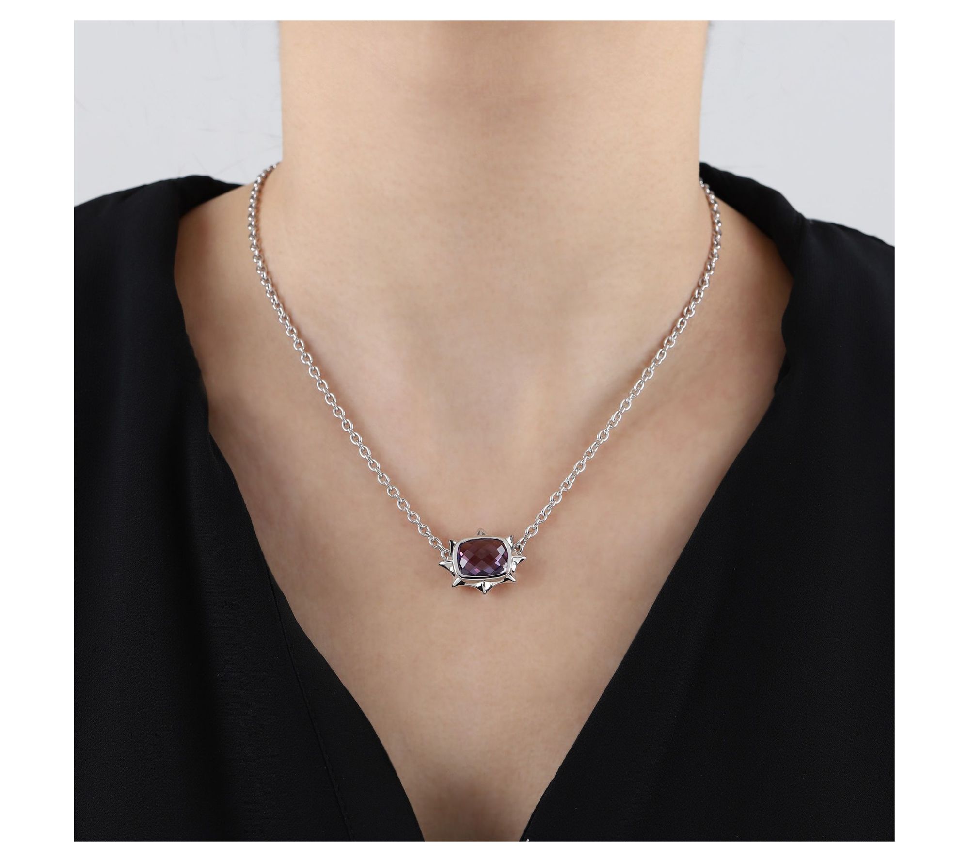 Whether you're adding a hint of drama to an evening look or elevating your favorite tee, this sterling silver necklace draws every gaze with its eye-catching pineapple-cut amethyst framed by polished, spiked details. Each movement reflects light off the expertly set gemstone, creating a bold statement piece you can wear from day to night. From Margo Manhattan.