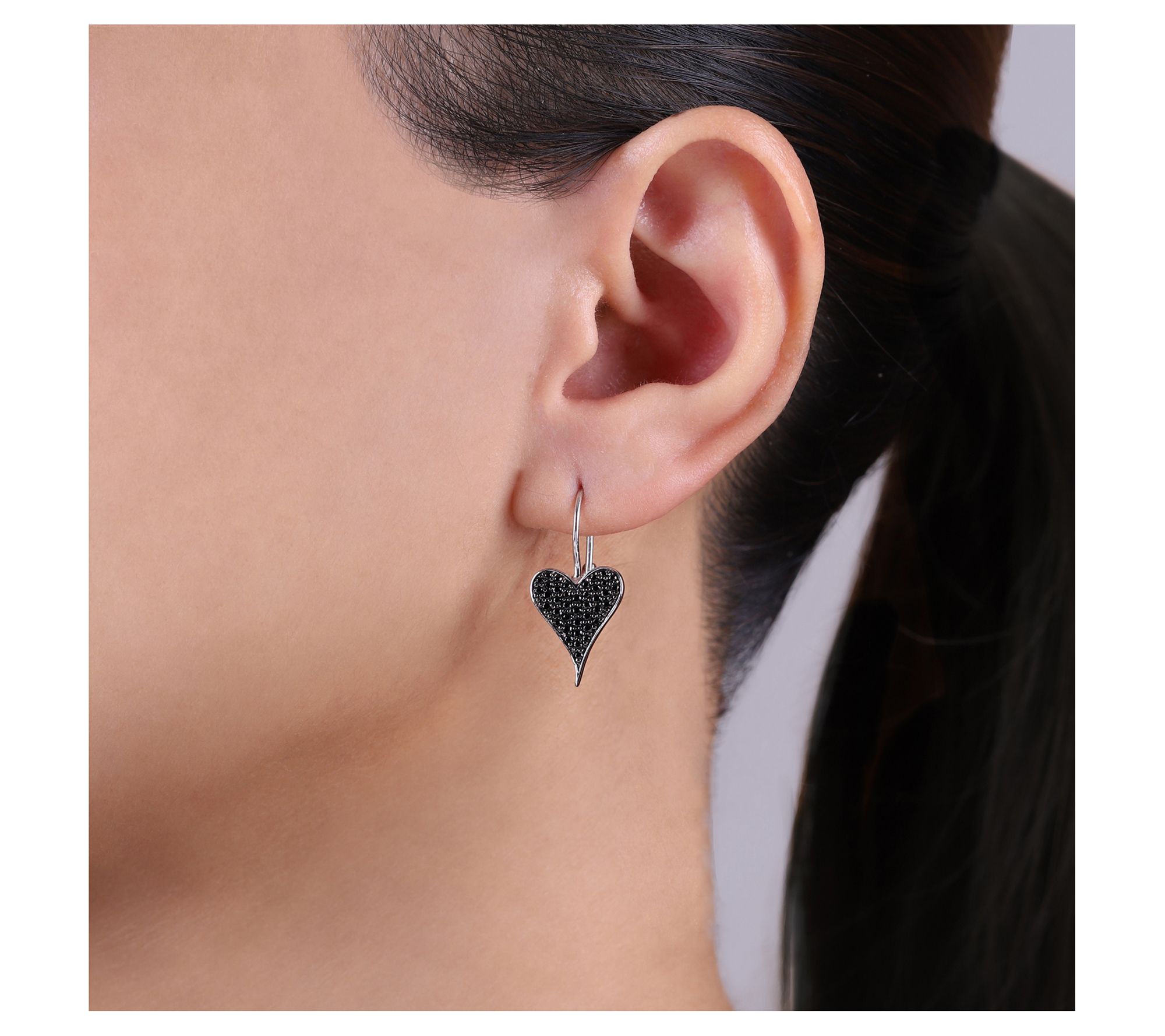 Show off your style with these sterling silver heart dangle earrings from Margo Manhattan. Adorned with black spinel, these earrings add a touch of sophistication to any outfit. The high-polish lever back and frame make them as comfortable as they are stunning. Perfect for both casual and formal occasions, these earrings will quickly become a favorite in your jewelry collection. From Margo Manhattan.