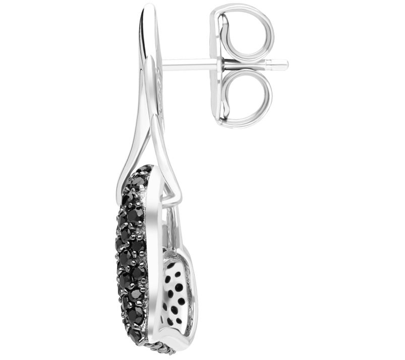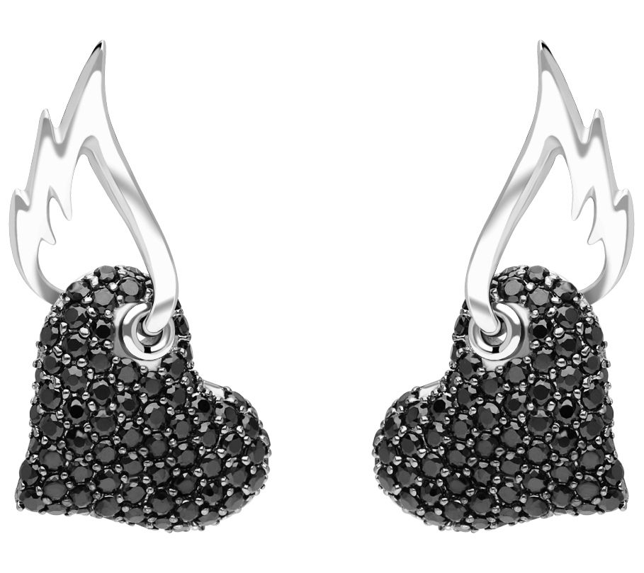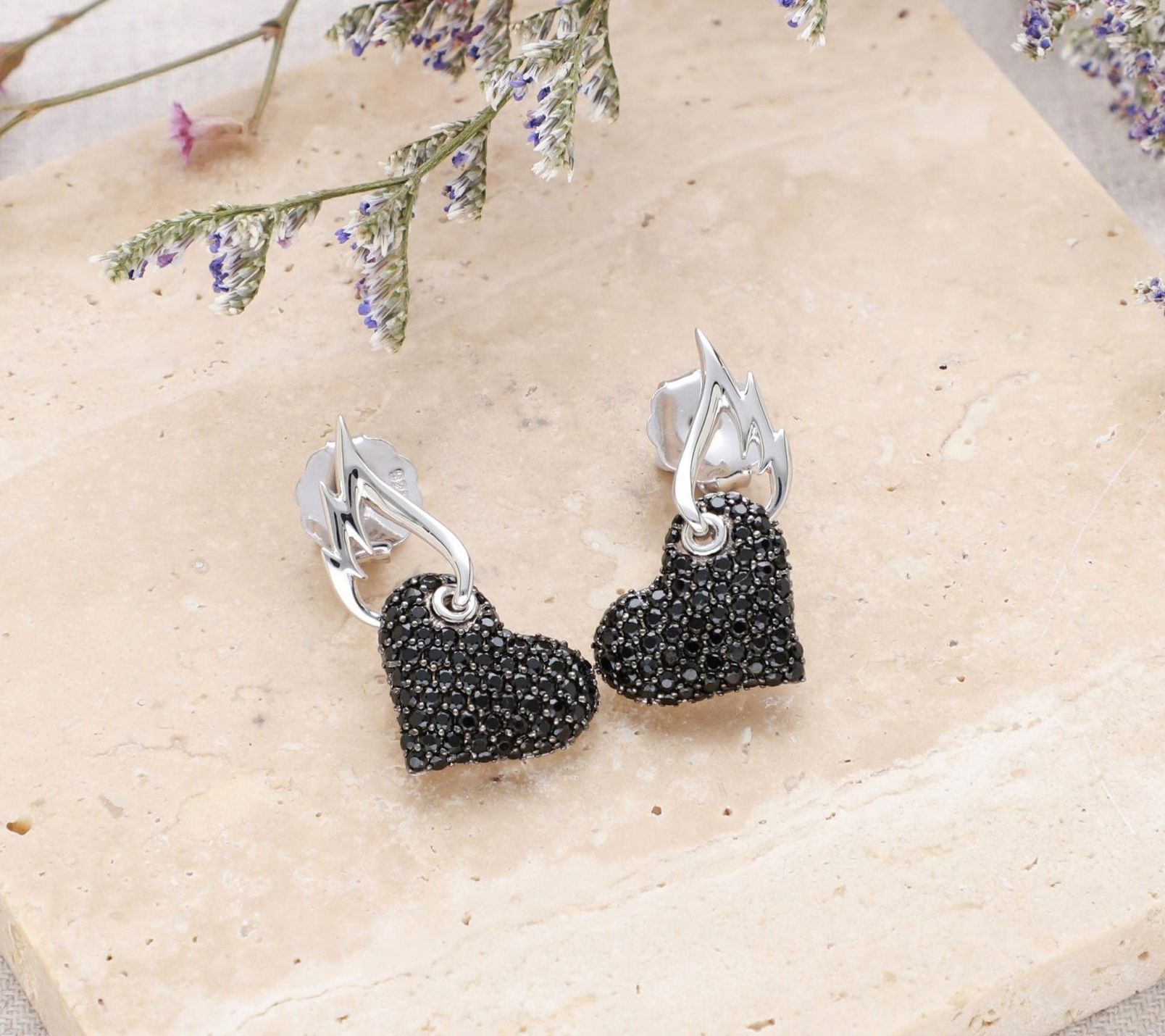 • Hearts faced with round pave-set black spinel stones and dangling from open wings