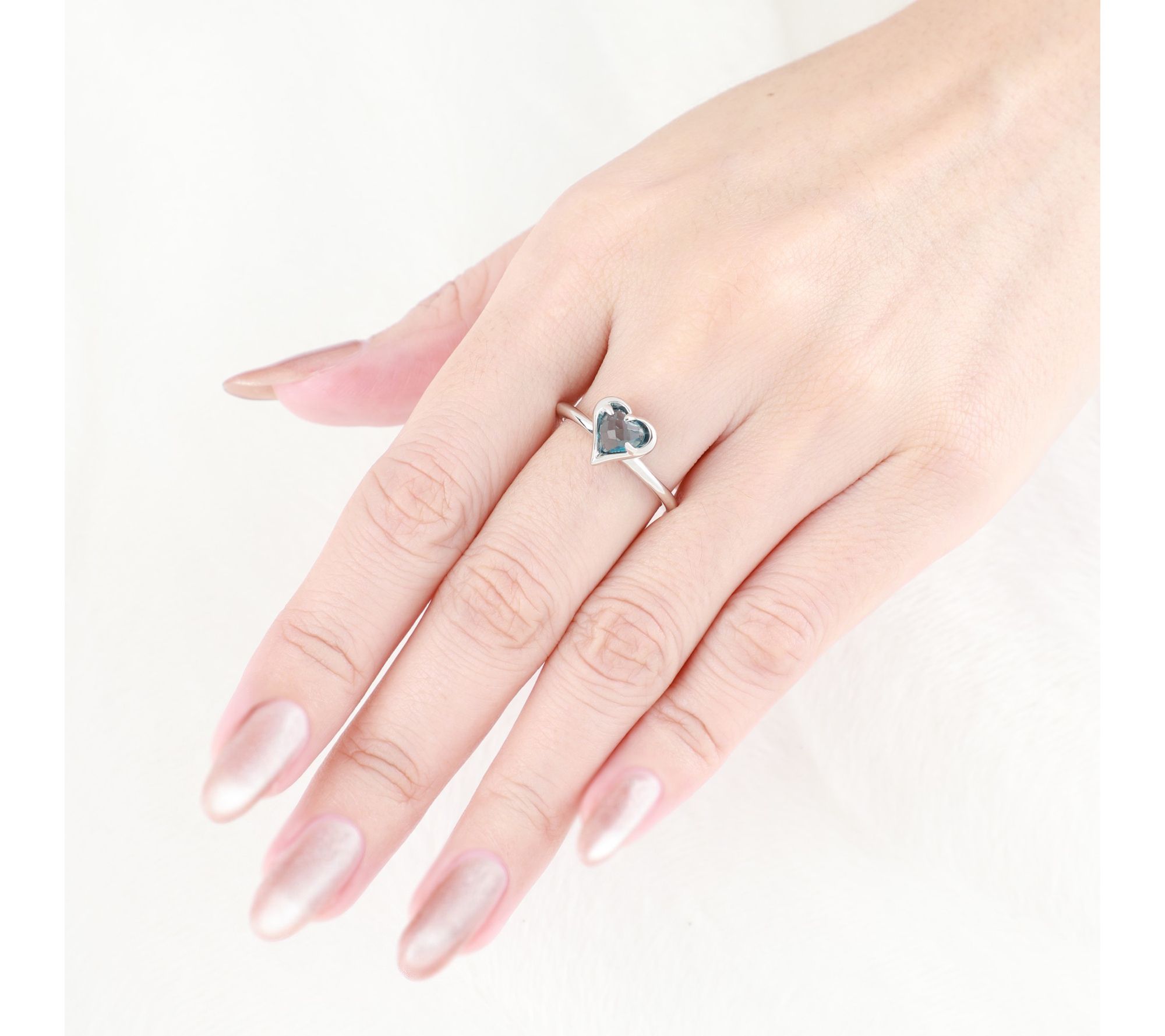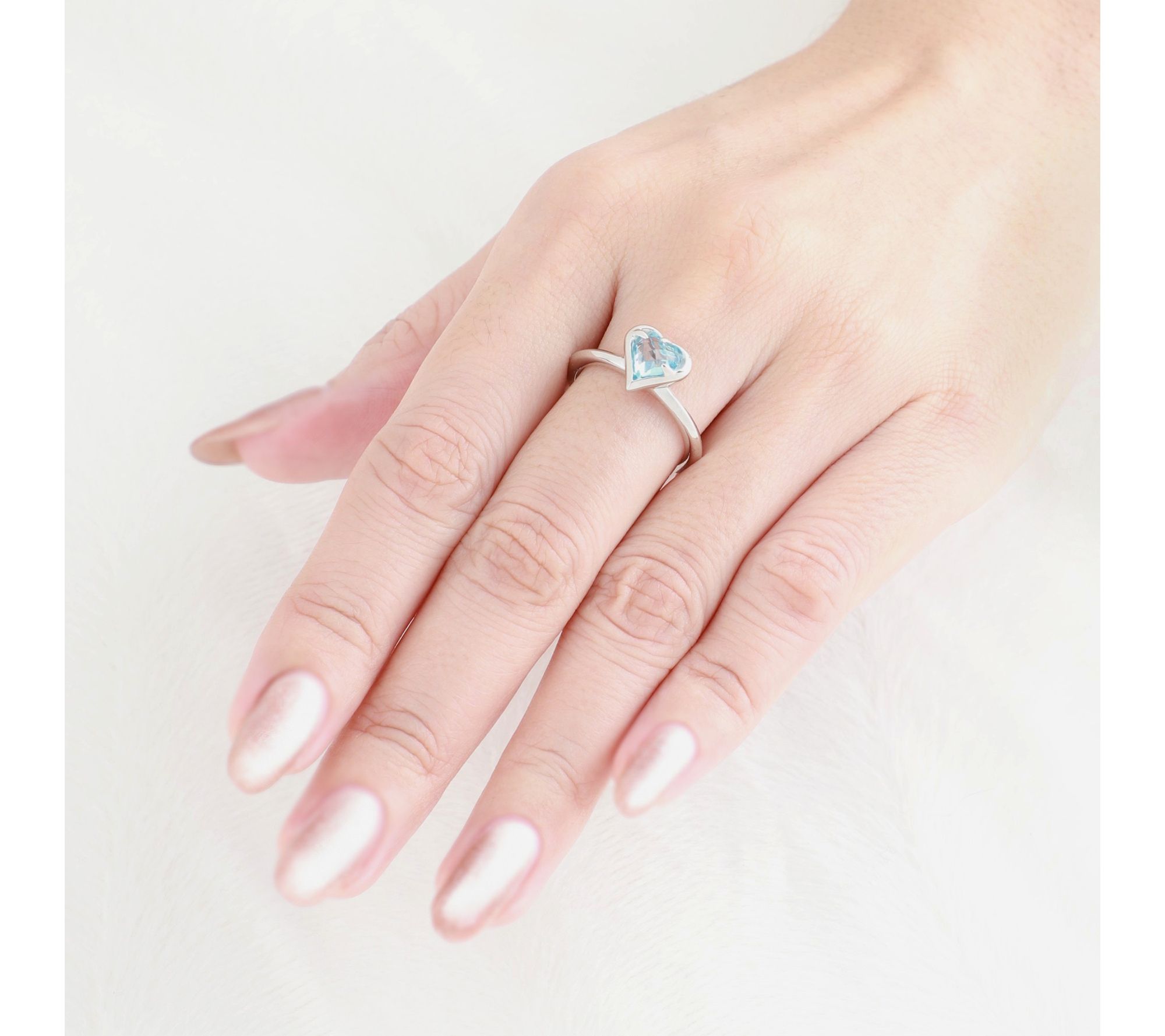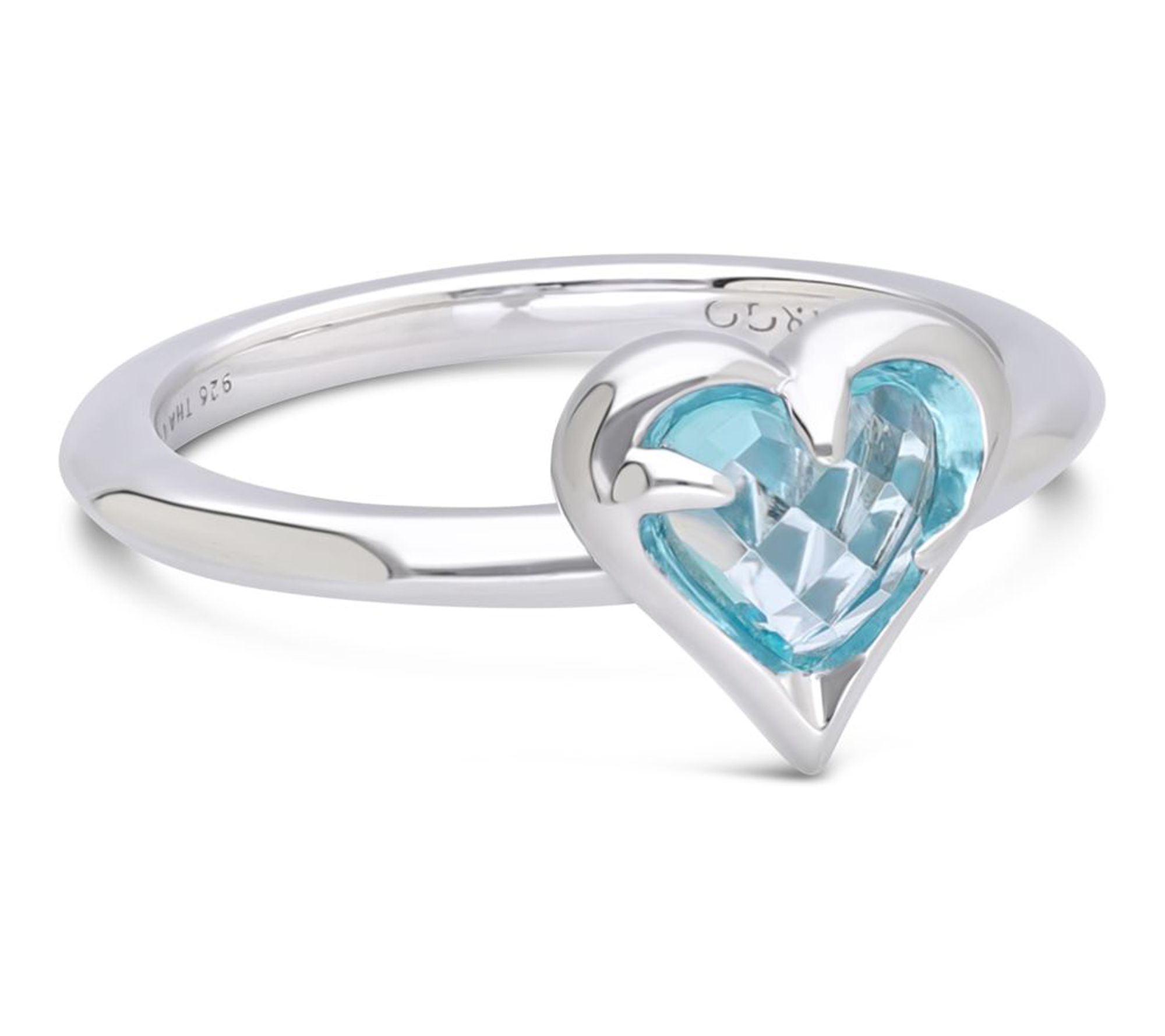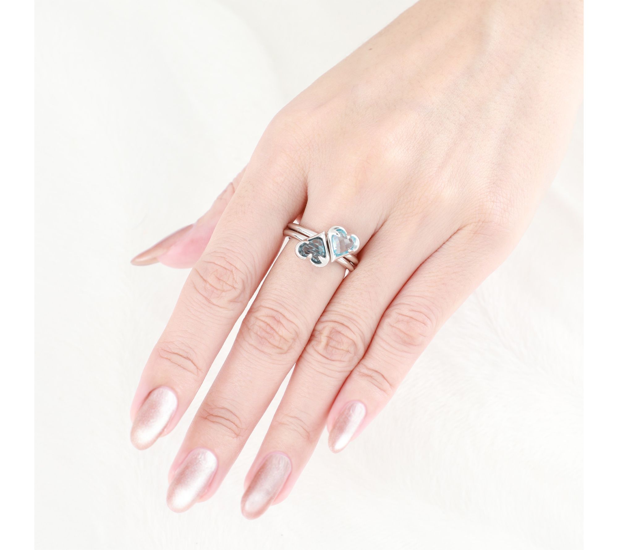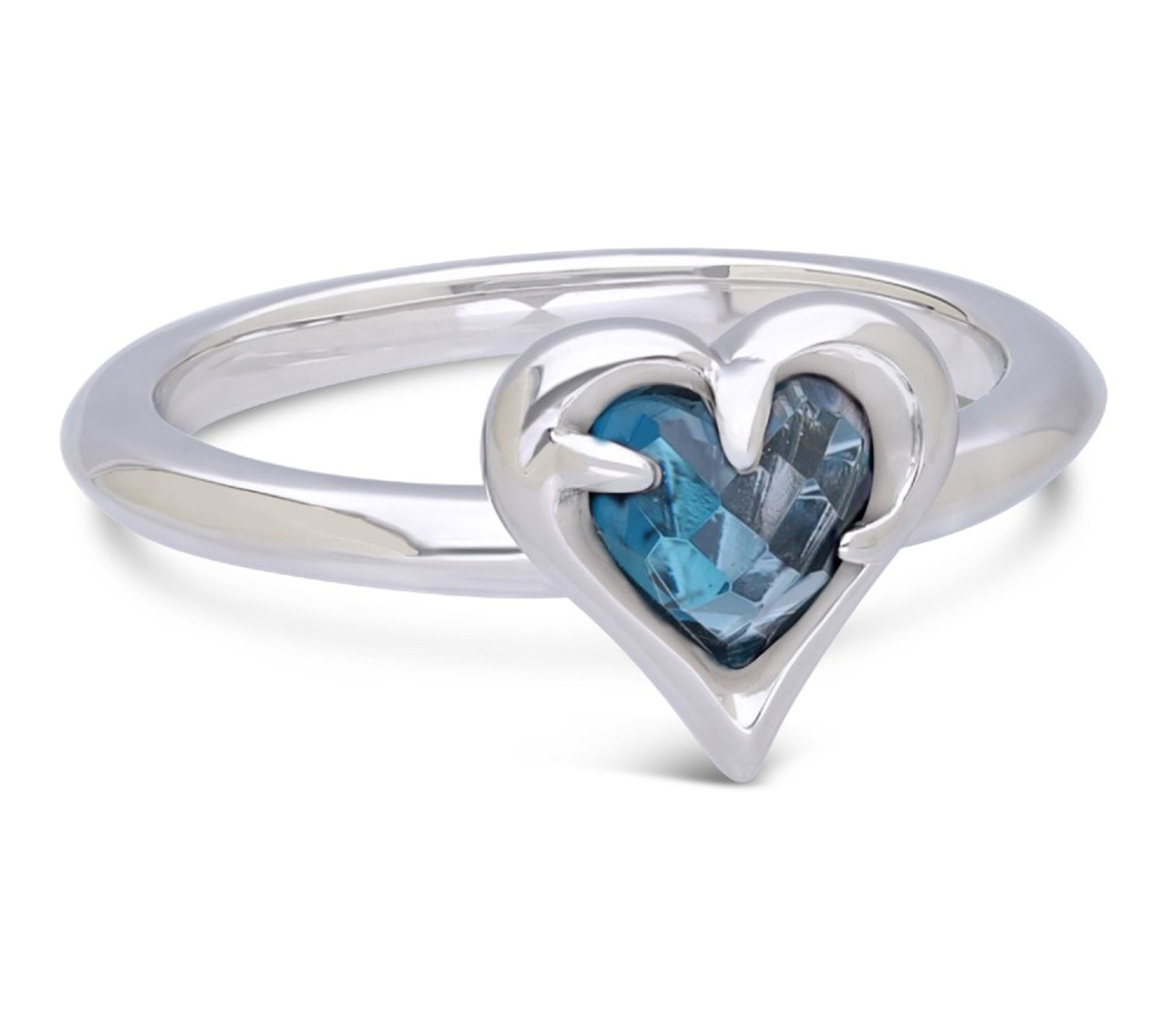 • One ring with London blue topaz and one with Swiss blue topaz; heart-shaped design; polished finish