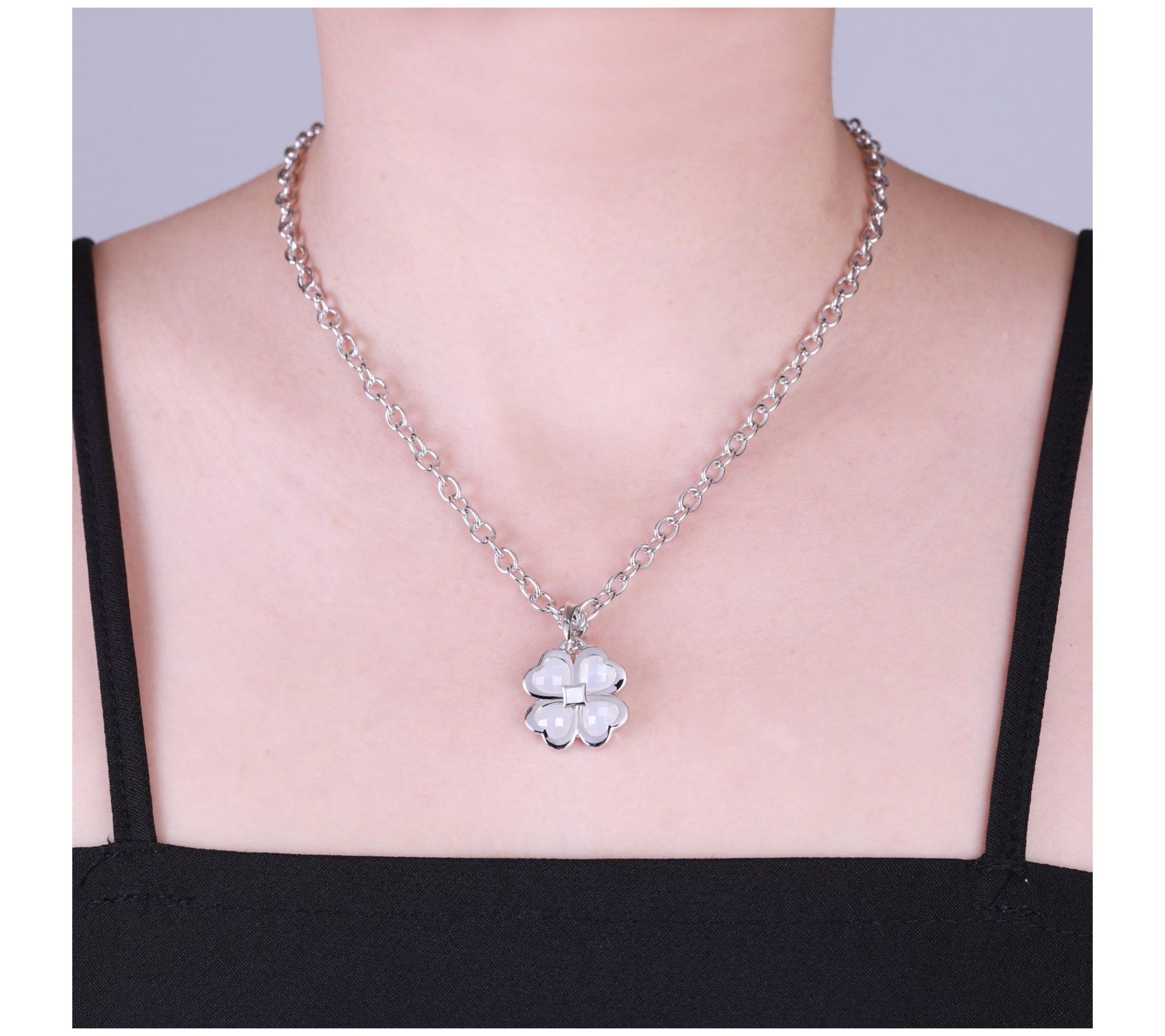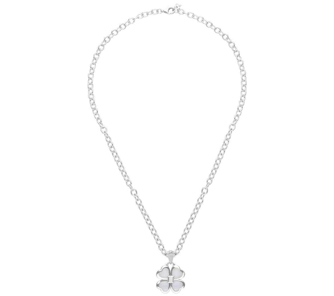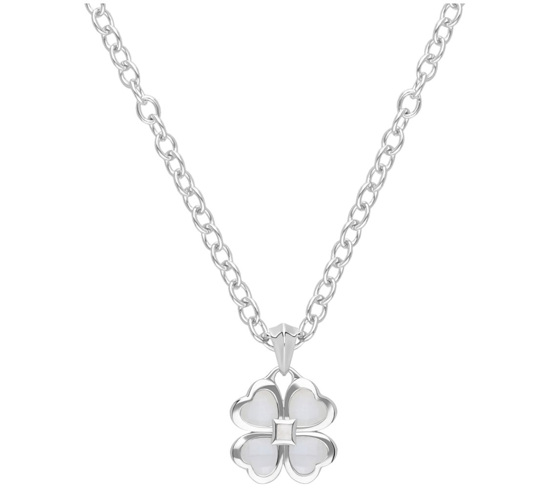 Bring a little luck and a whole lot of beauty to your daily routine with the Chloe pendant that features a four-leaf clover design accented by moonstones. From Margo Manhattan.