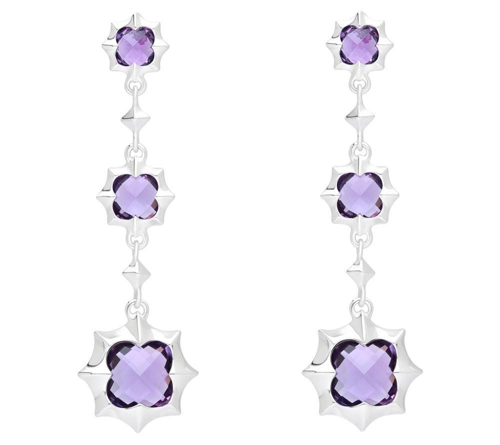 Add show-stopping style and beautiful movement to any look with these bold dangle earrings featuring colorful amethyst stones. From Margo Manhattan.