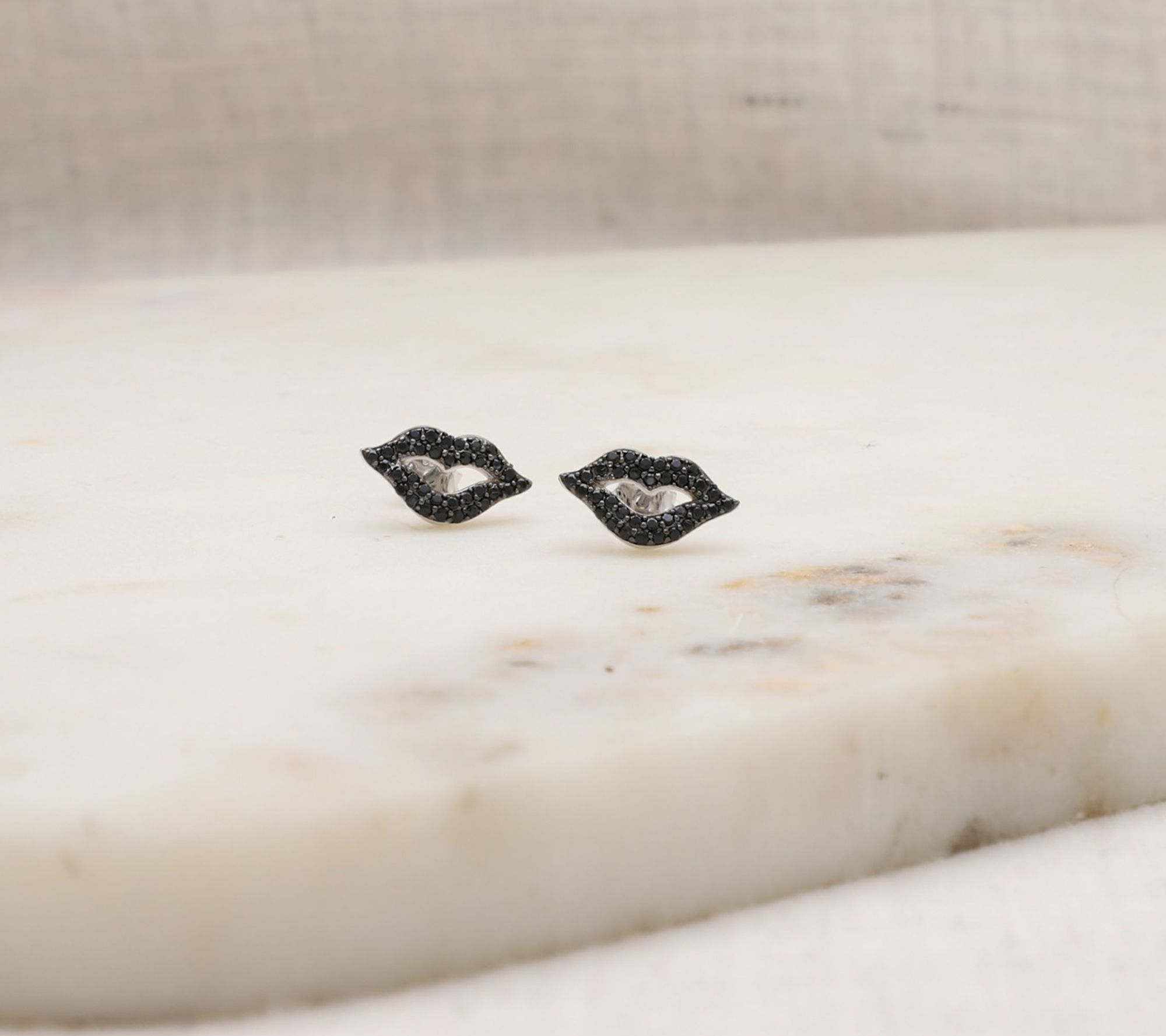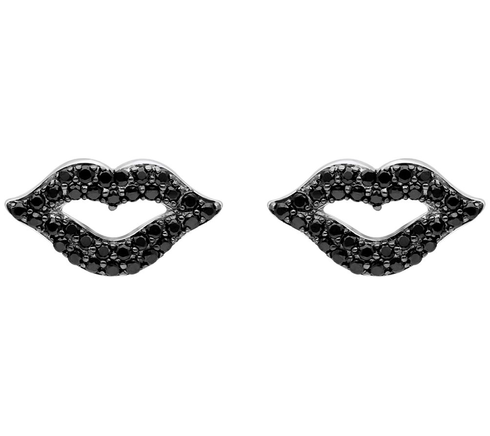 Kiss, kiss. Flush with black spinel and blackened settings, these sparkly lip earrings are a true statement piece. From Margo Manhattan.