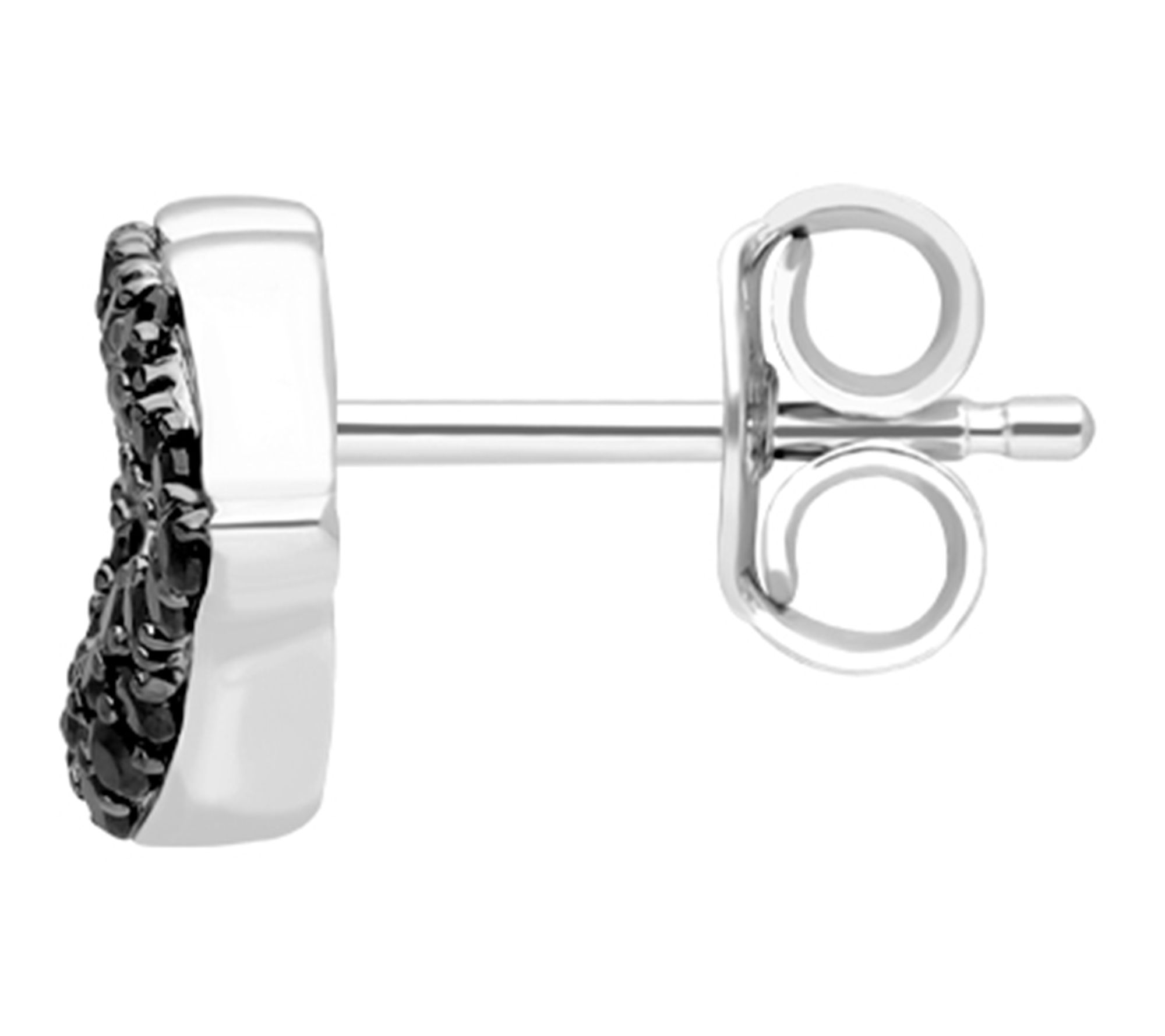• Open lip design; pave-set, round-cut black spinel gemstones; blackened settings