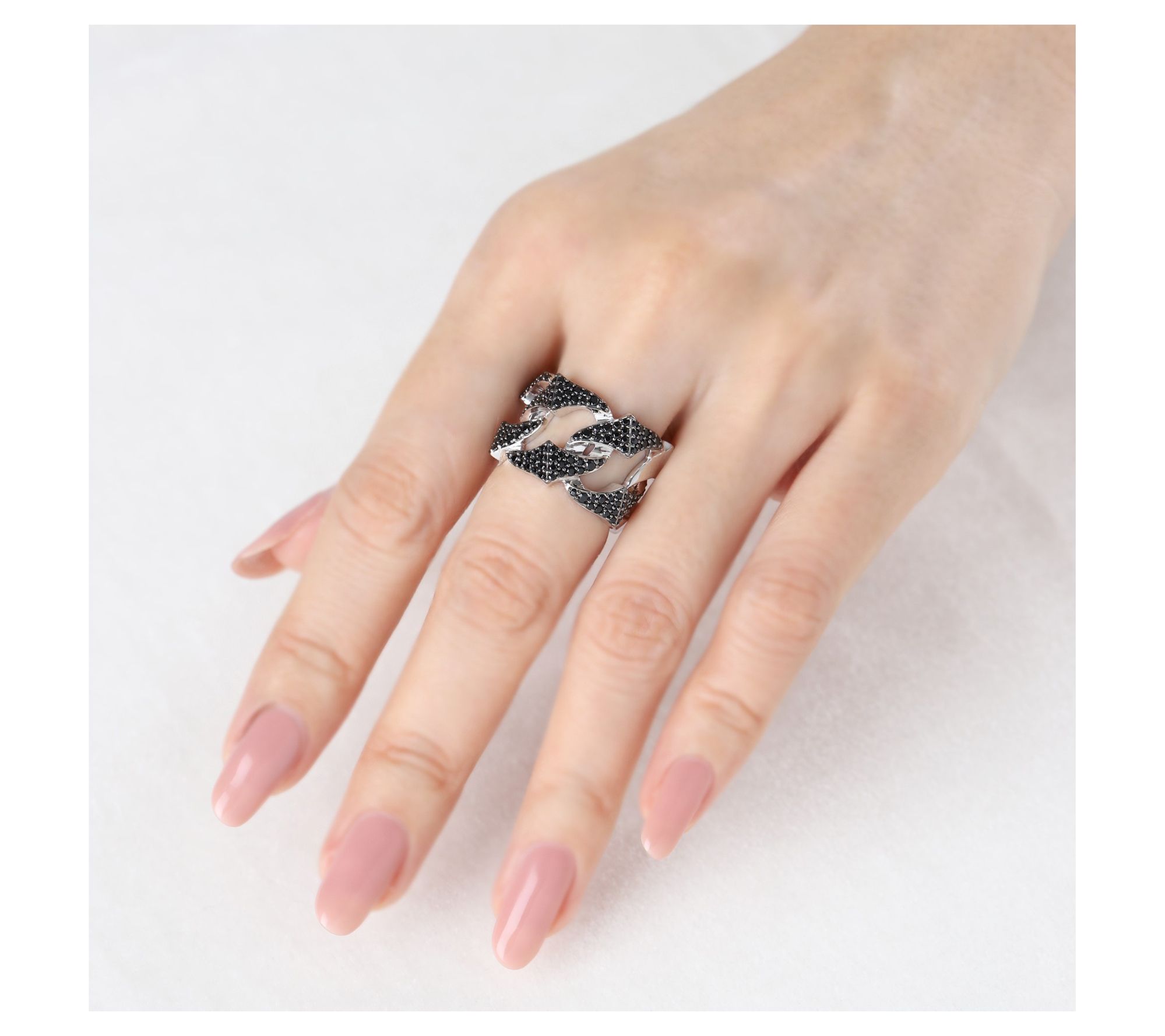 A striking addition to any ensemble, this sterling silver ring captures the bold beauty of black spinel with sophisticated edge. Whether you're dressing up for a night out or adding intrigue to your daytime style, this eye-catching design brings just the right amount of drama. From Margo Manhattan.