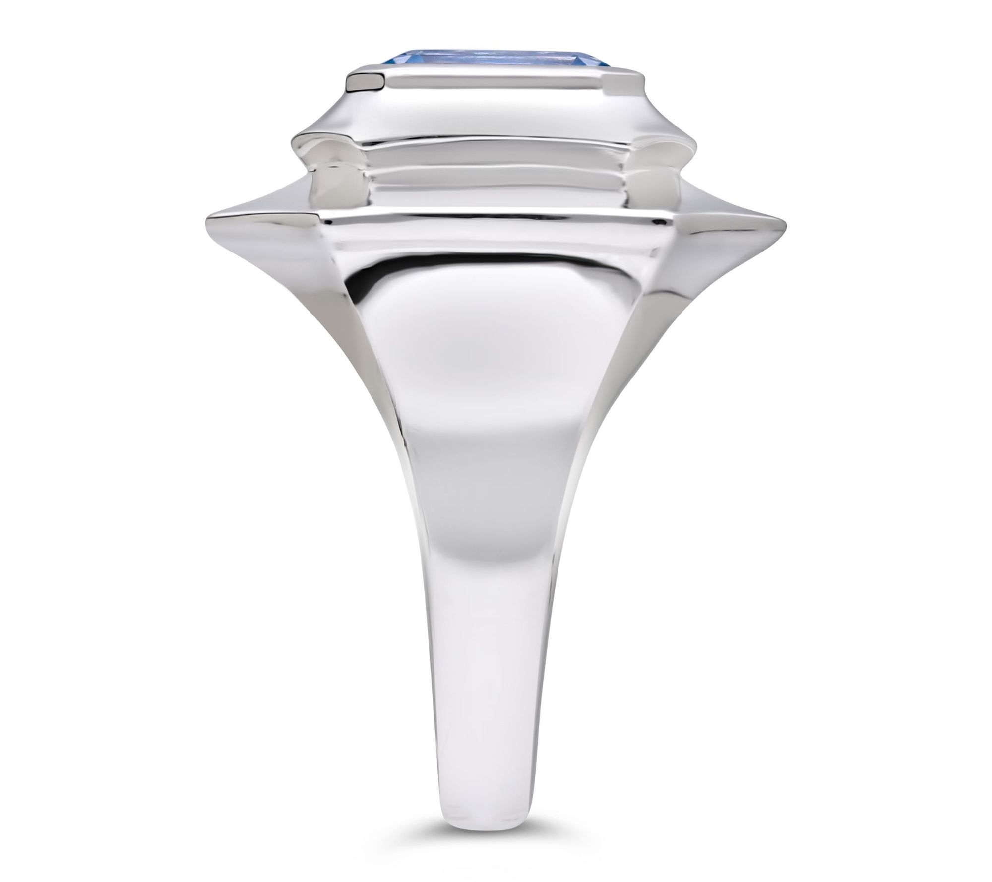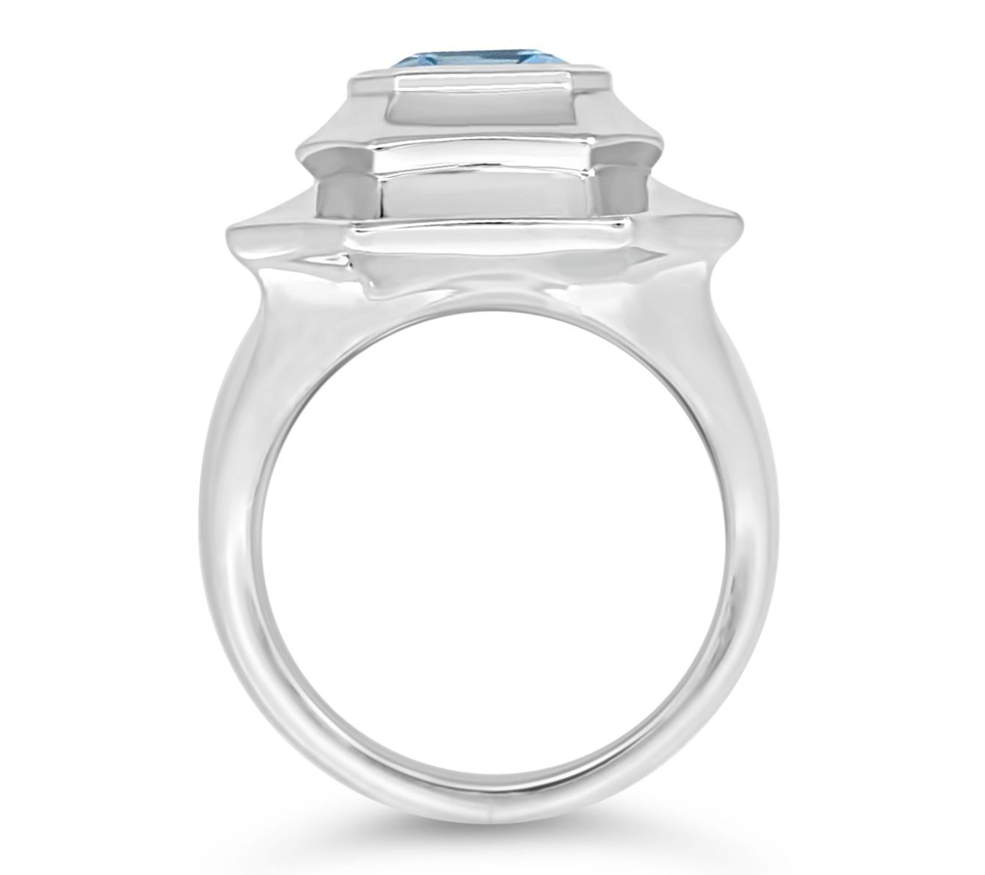 • Octagon-shaped blue topaz center; polished sterling silver band