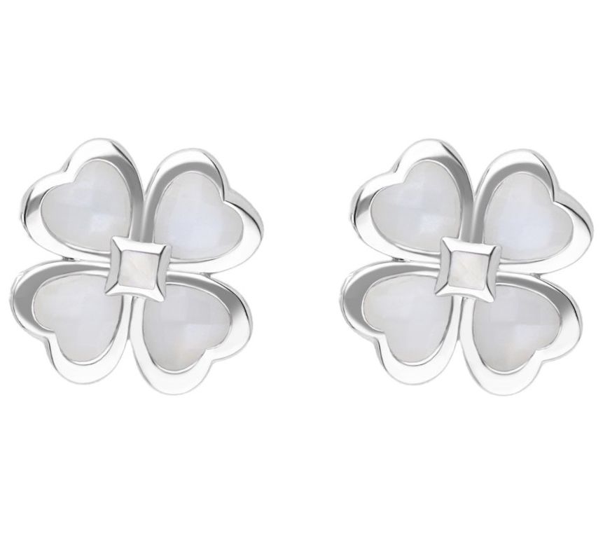 Bring a touch of luck and beauty to your everyday adventures with this pair of earrings, each featuring a four-leaf clover design enhanced by creamy moonstones. From Margo Manhattan.