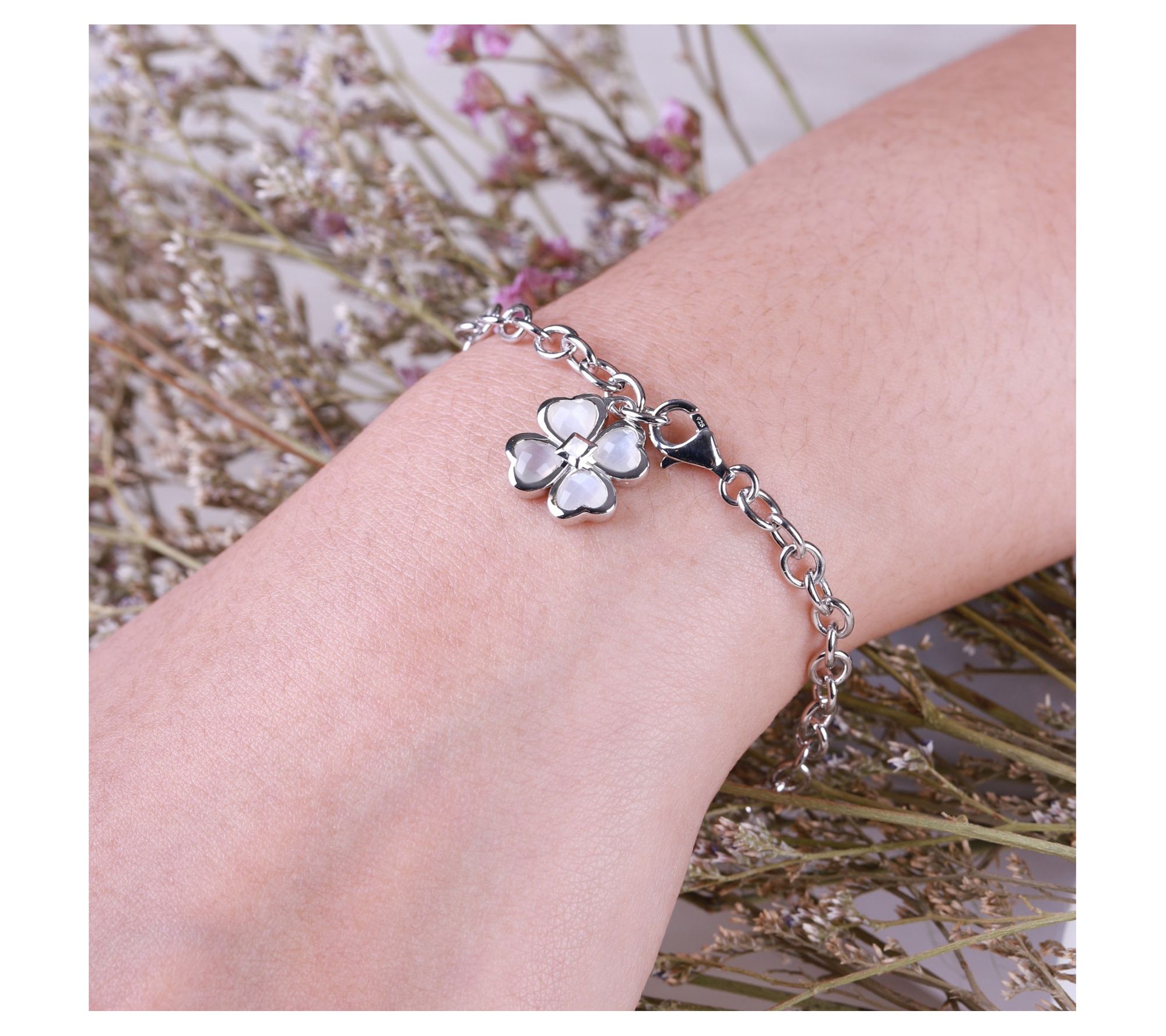 Get lucky! Bring a bit of good luck and luxurious sparkle to your wrist with this four-leaf clover charm bracelet. From Margo Manhattan.