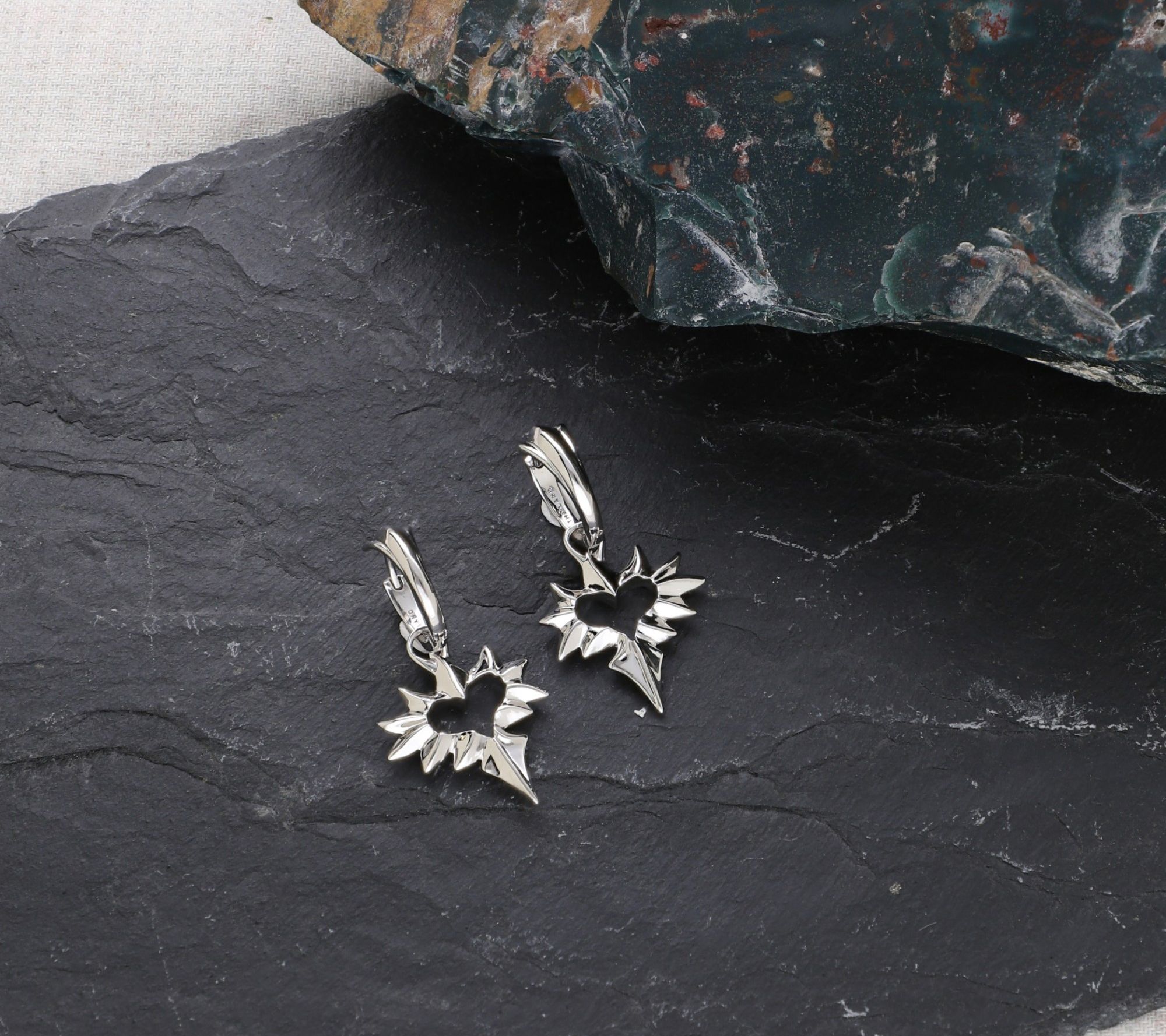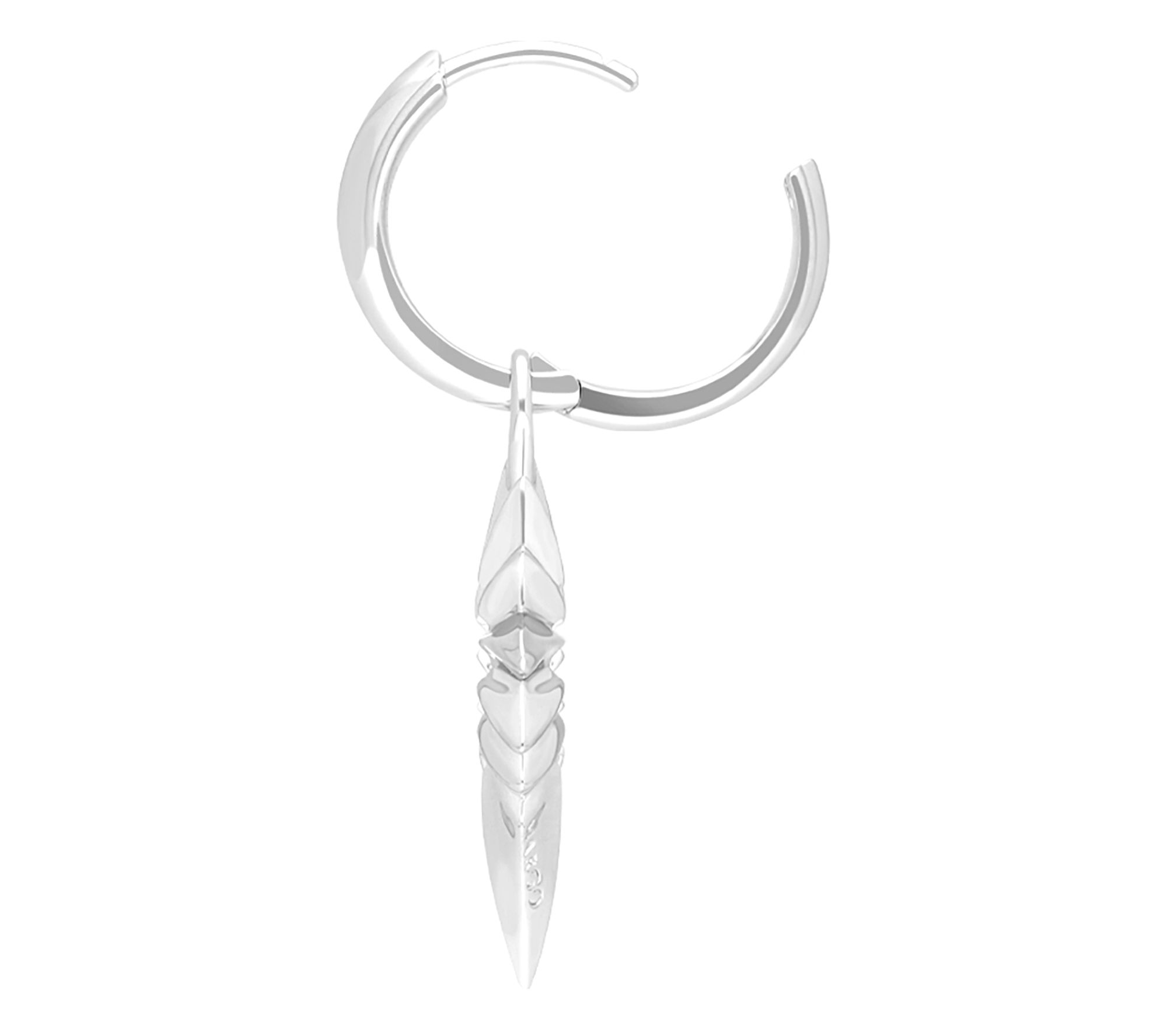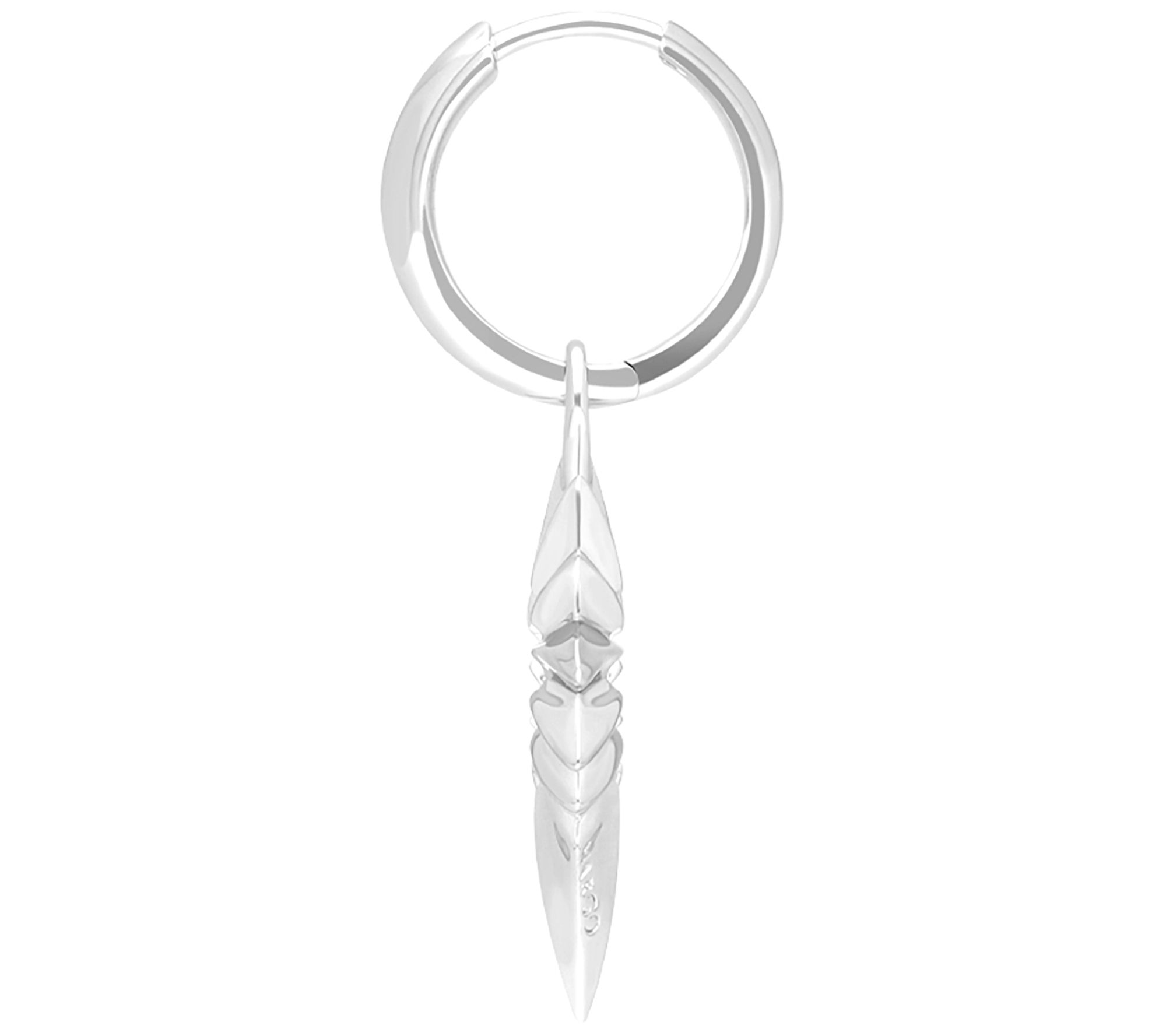 • Hoop with dangling open heart charm; polished finish