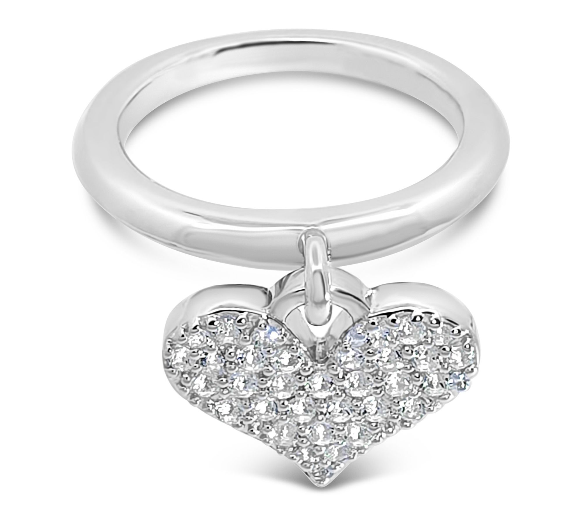 Approximate measurements: Ring 1/2"L x 3/4"W; Heart charm 1/2"L x 5/8"W