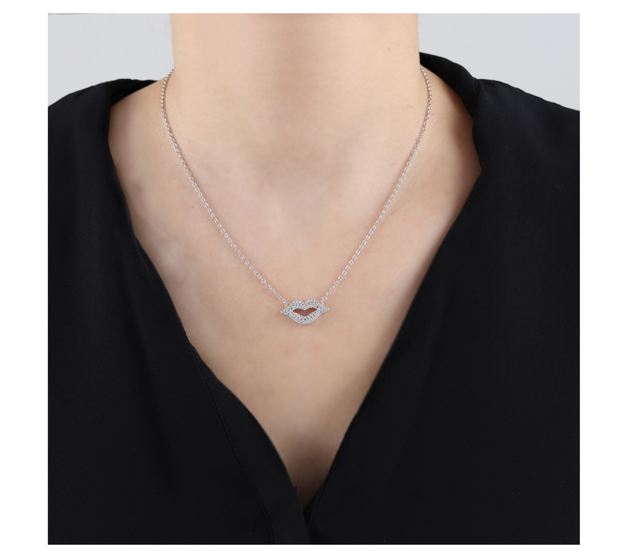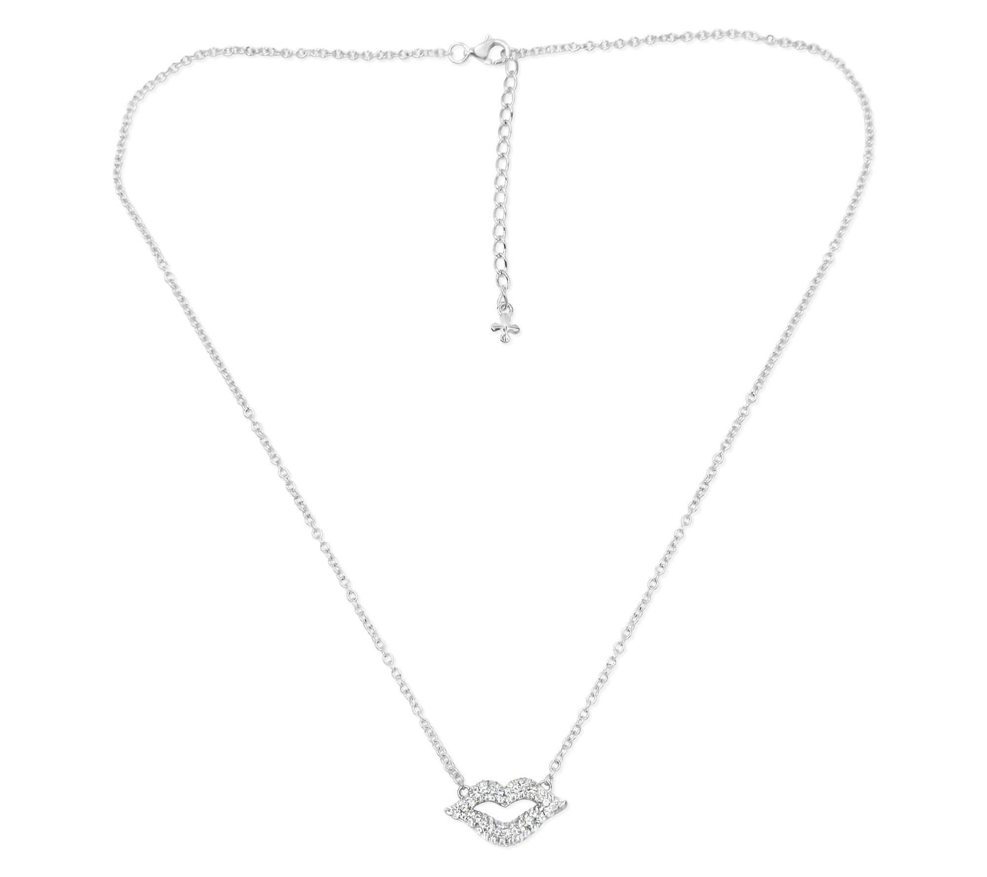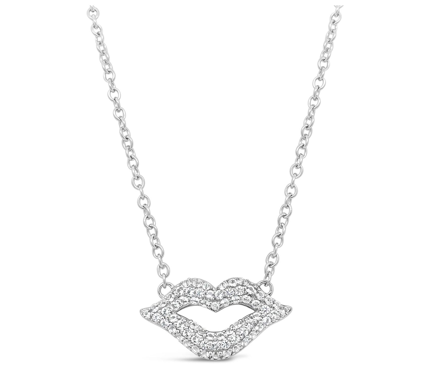 That little pop of playful sparkle can do wonders -- especially when your look needs a bit of love. An artful cable chain holds a gleaming sterling silver pendant shaped like open lips, plus round pave-set white topaz for just the right amount of shine. Pair it with a sharp little shift dress or a denim jacket for a fun twist on any day. From Margo Manhattan.